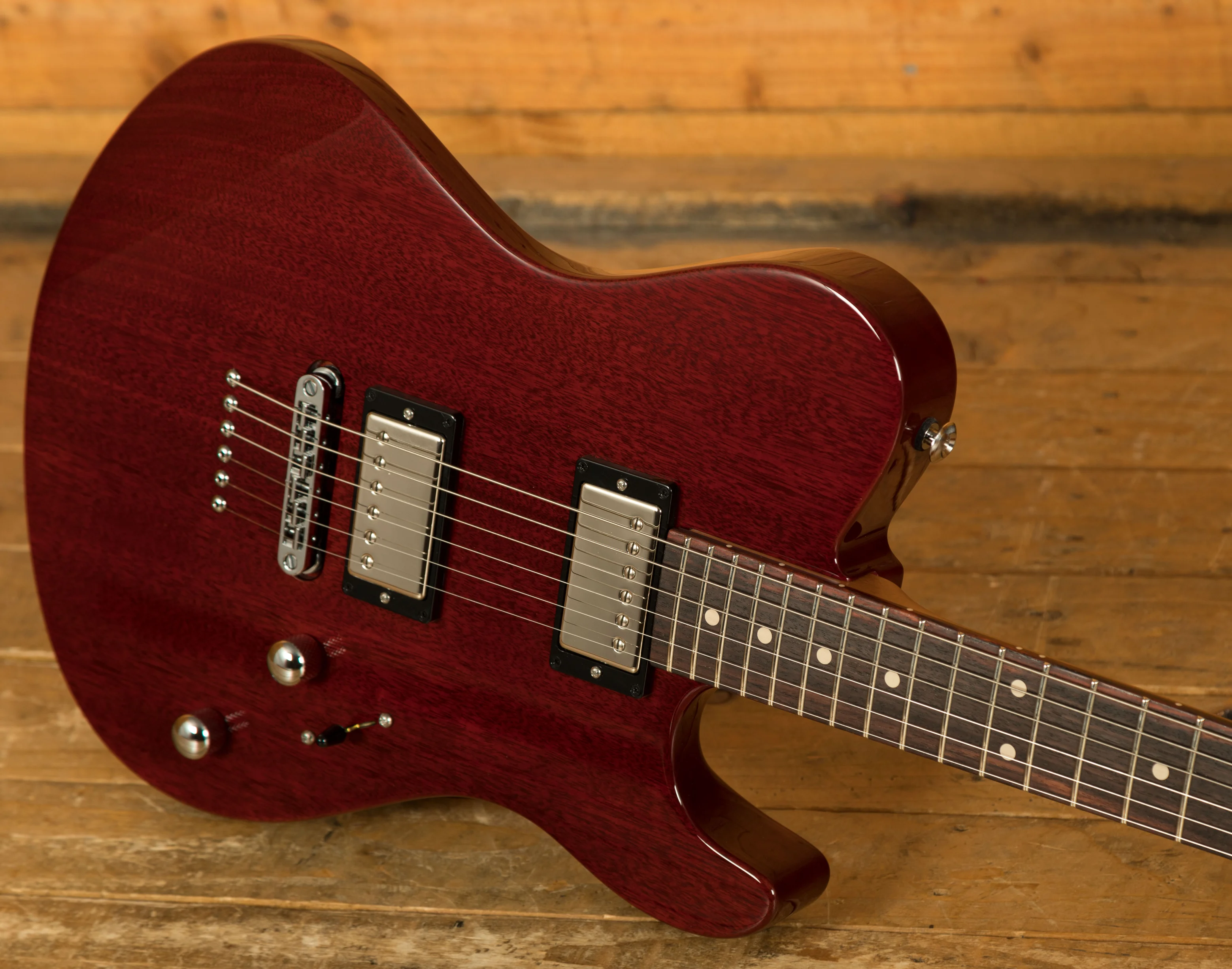 The Oso's pickup configuration offers strong versatility. The SSV humbucker in the neck position provides warm, rounded tones with enhanced clarity, making it suitable for clean passages and articulate rhythm work. The SSH bridge pickup delivers increased output and focused mids that help push a tube amp naturally, while still retaining the openness and character expected from a vintage-inspired humbucker. This combination gives players a wide tonal range suitable for rock, blues, pop, and beyond.