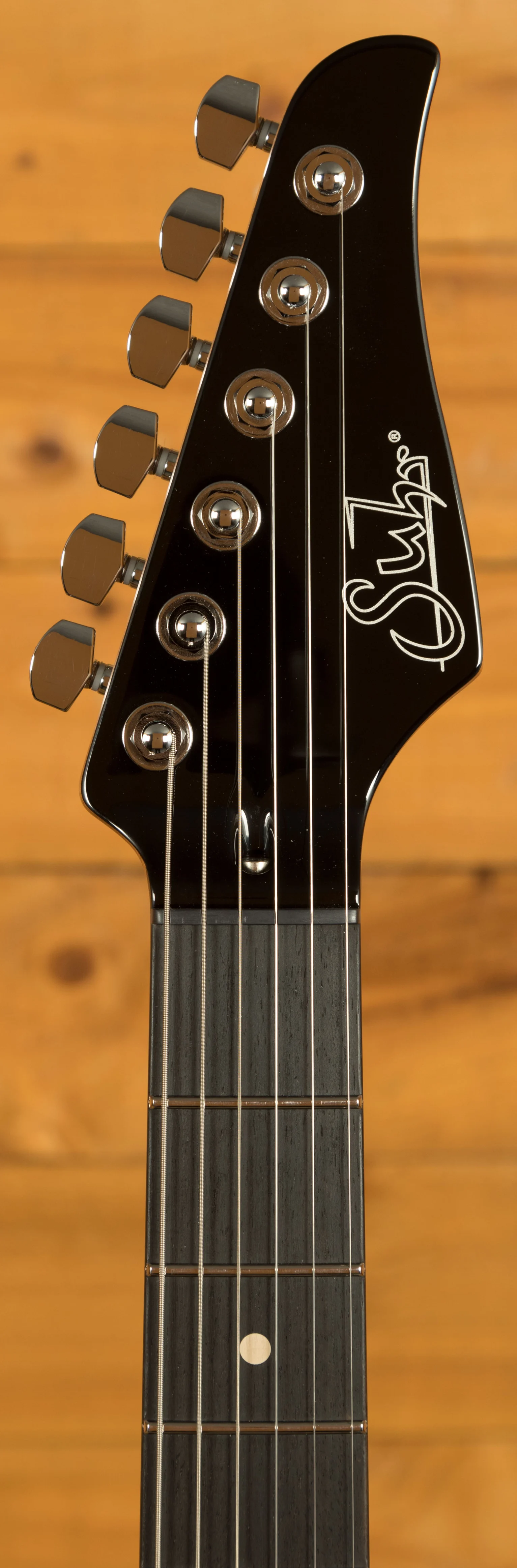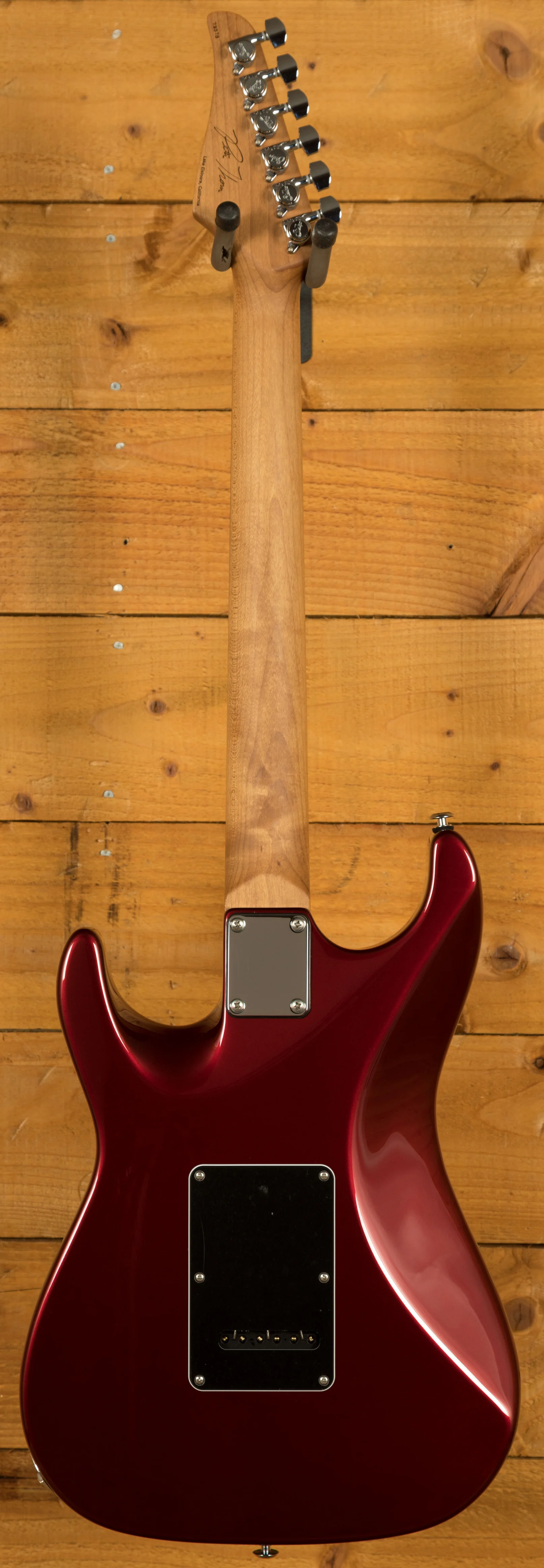 The Roasted Maple neck is a tactile delight, a testament to Suhr's commitment to elevating your playing experience. Complementing this is the Ebony fingerboard, where your fingers dance upon a landscape of musical possibilities. The Pete Thorn 60's Soft V neck back shape (measuring .830"-.910") is a tribute to classic designs, offering a comfortable grip that caters to both intricate chords and blistering solos. The fingerboard radius, a compound 10"-14", ensures effortless bends and fluid playability across all registers. With 22 Jumbo Stainless Steel frets (.057"x.110") enhancing durability and facilitating pristine intonation, every note resonates with clarity and precision.