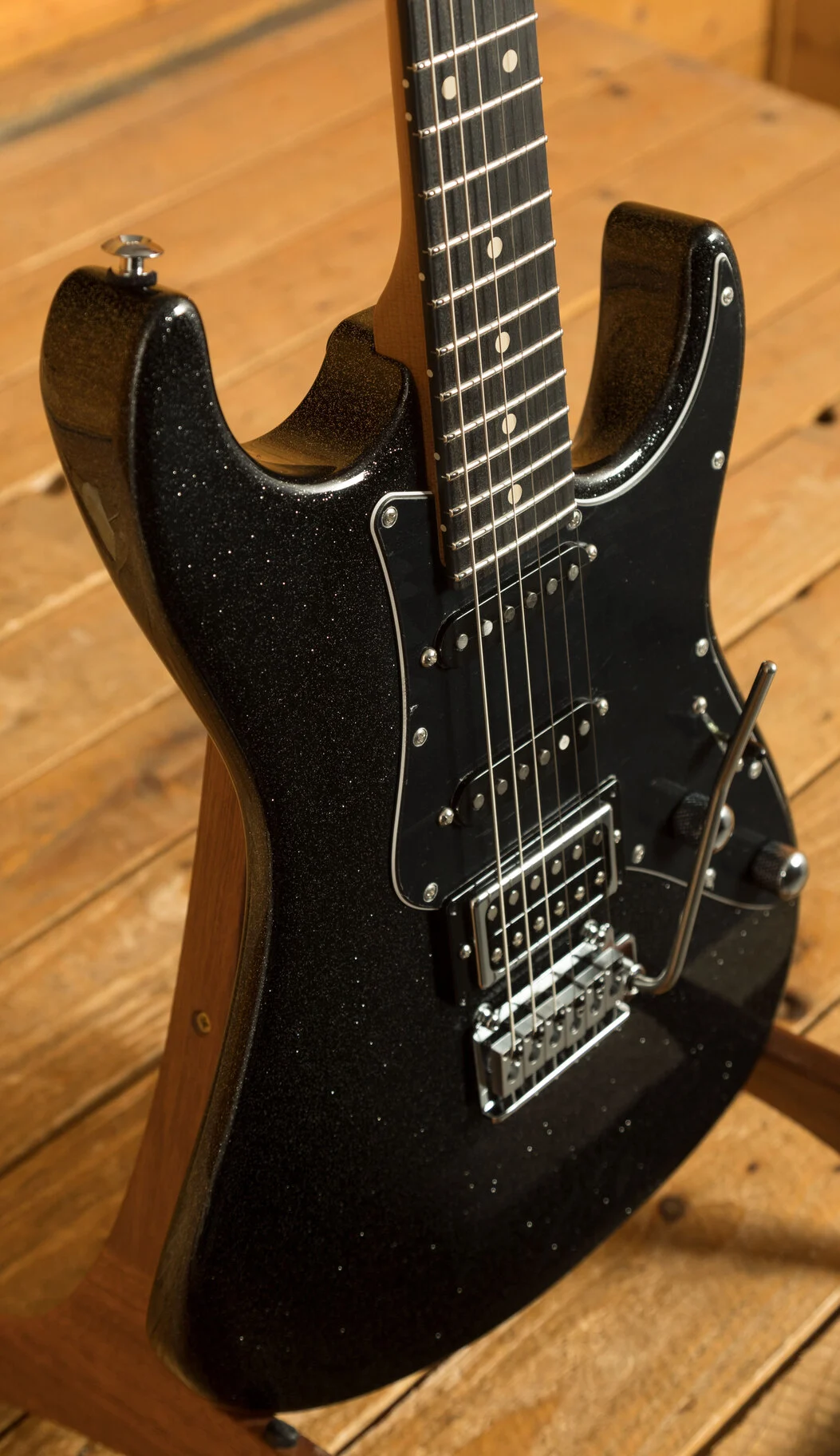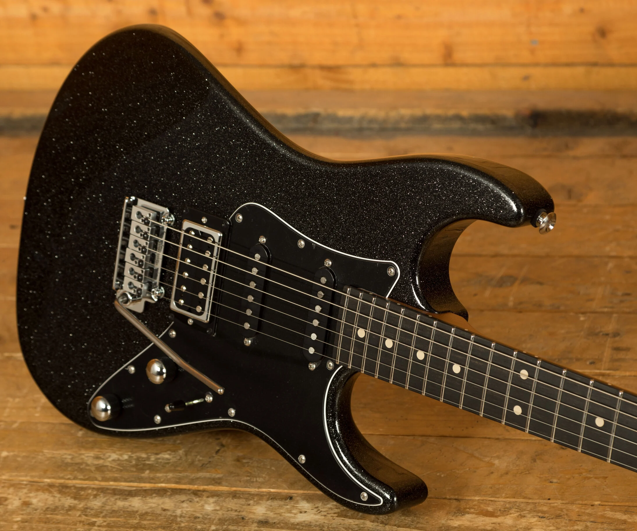 The Roasted Maple neck is a tactile delight, a testament to Suhr's commitment to elevating your playing experience. Complementing this is the Ebony fingerboard, where your fingers dance upon a landscape of musical possibilities. The Pete Thorn 60's Soft V neck back shape (measuring .830"-.910") is a tribute to classic designs, offering a comfortable grip that caters to both intricate chords and blistering solos. The fingerboard radius, a compound 10"-14", ensures effortless bends and fluid playability across all registers. With 22 Jumbo Stainless Steel frets (.057"x.110") enhancing durability and facilitating pristine intonation, every note resonates with clarity and precision.