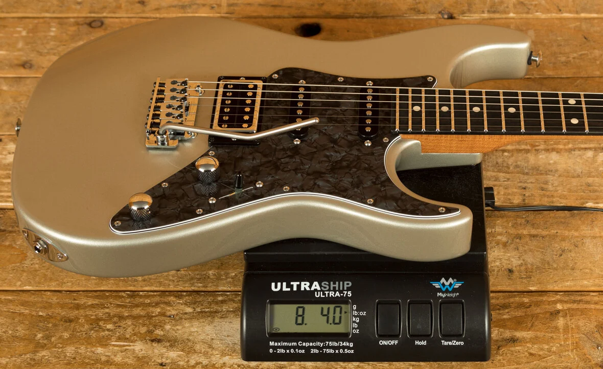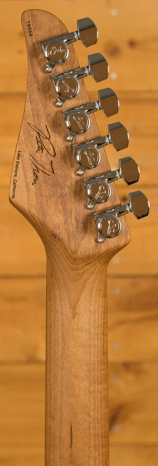 The Roasted Maple neck is a tactile delight, a testament to Suhr's commitment to elevating your playing experience. Complementing this is the Ebony fingerboard, where your fingers dance upon a landscape of musical possibilities. The Pete Thorn 60's Soft V neck back shape (measuring .830"-.910") is a tribute to classic designs, offering a comfortable grip that caters to both intricate chords and blistering solos. The fingerboard radius, a compound 10"-14", ensures effortless bends and fluid playability across all registers. With 22 Jumbo Stainless Steel frets (.057"x.110") enhancing durability and facilitating pristine intonation, every note resonates with clarity and precision.