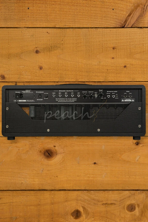 This 100 watt powerhouse is designed to be everything the modern touring player would need, unmatched versatility, monster tones and slick design. With 3 channels, it operates with a custom Plexi style transformer, four EL-34 power tubes and six 12AX7 preamp tubes.