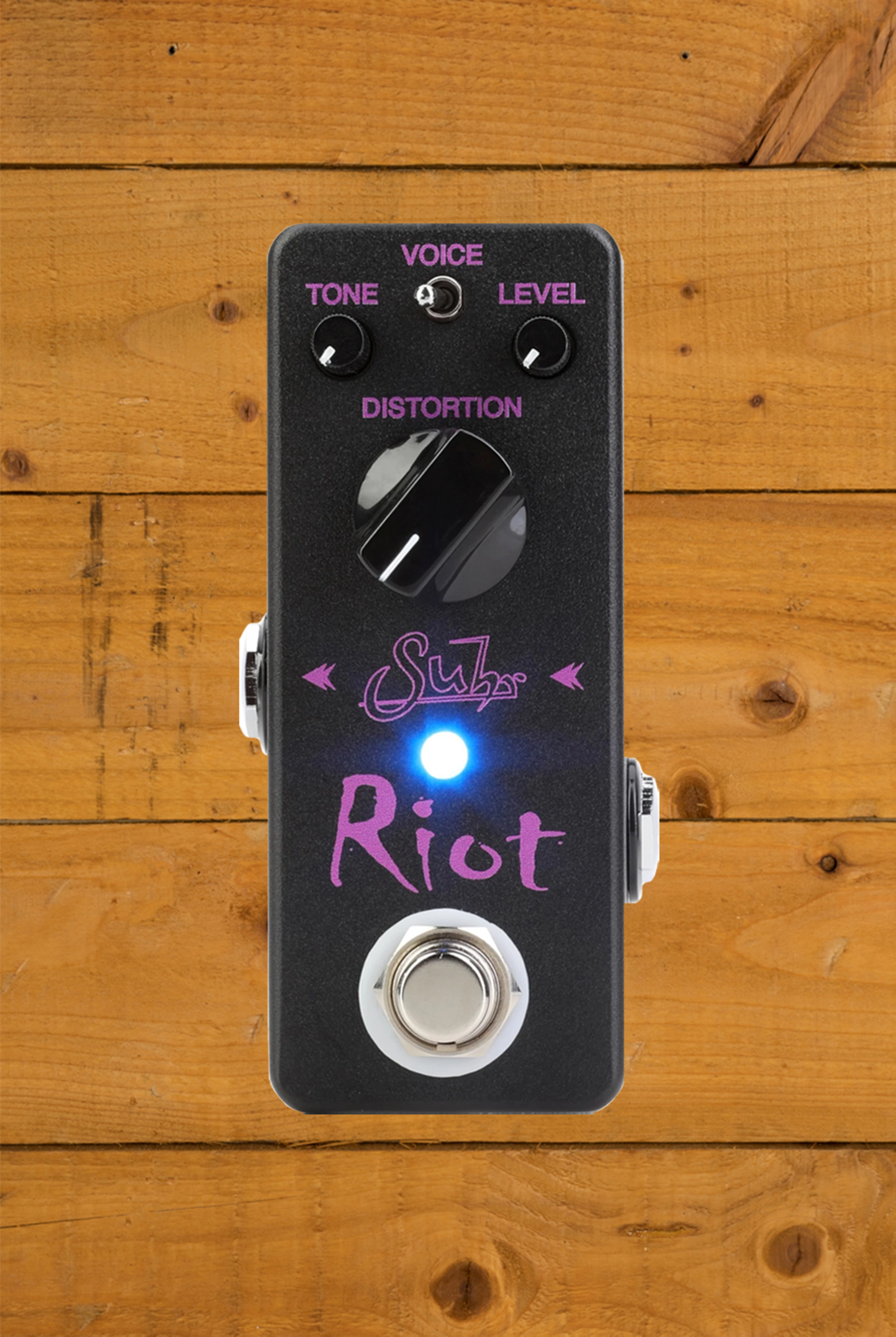 A two-position voicing switch expands the pedal's tonal capabilities even further. In the left position, the pedal delivers a modern high-gain tone with tight low-end and strong midrange presence. In the right position, it shifts to a vintage-flavoured high-gain setting with more open dynamics and excellent note definition. This added flexibility makes the Riot Mini ideal for players who need to cover both classic and contemporary rock tones on a single pedal.