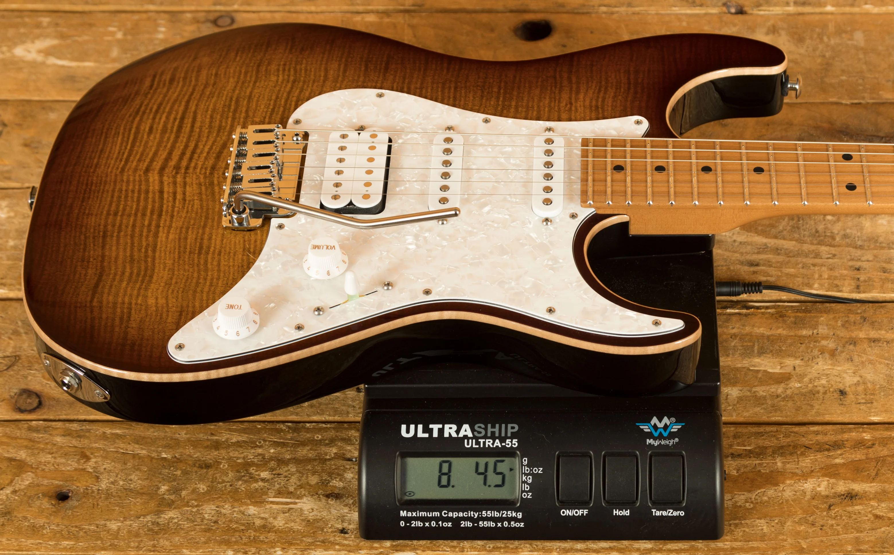 With a Basswood body and a lush Flame Maple top, its tonally superior, light weight and beautifully poised for action. With arm, hand and tummy contours this guitar is supremely comfortable, it offers great access right up the neck and handles just about any playing style without breaking a sweat.