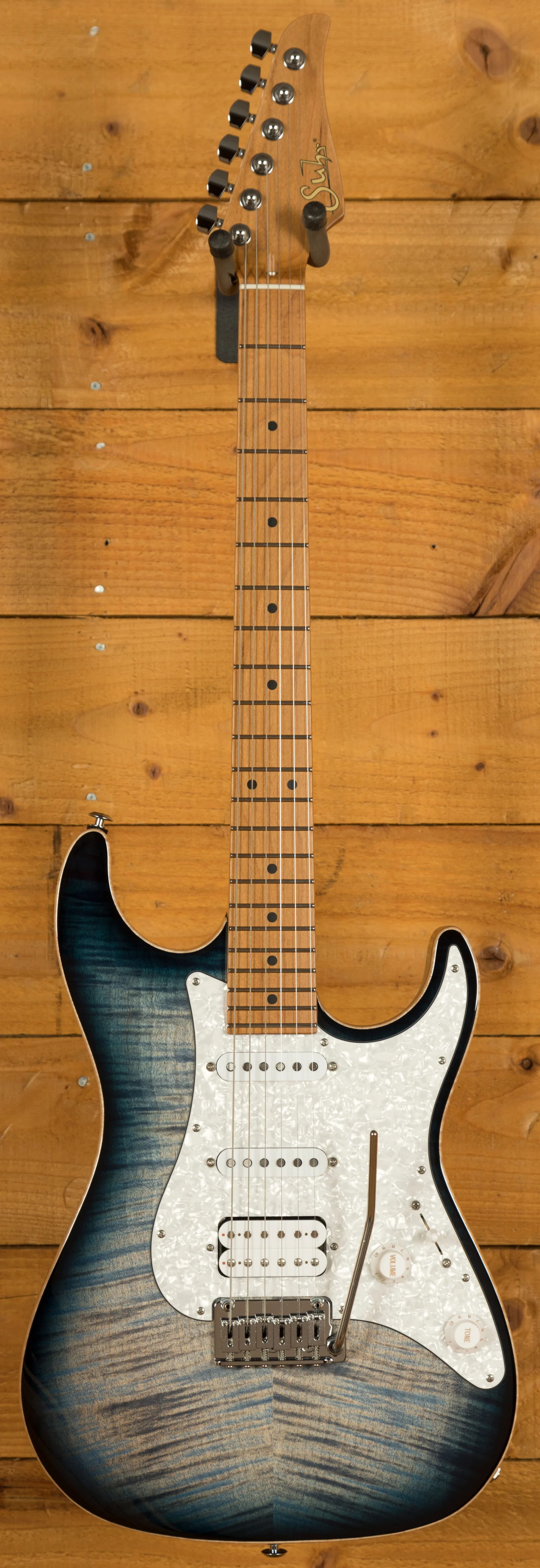 This Suhr Standard Plus in Faded Trans Whale Blue Burst is another great example of the continued high-quality work from Suhr.