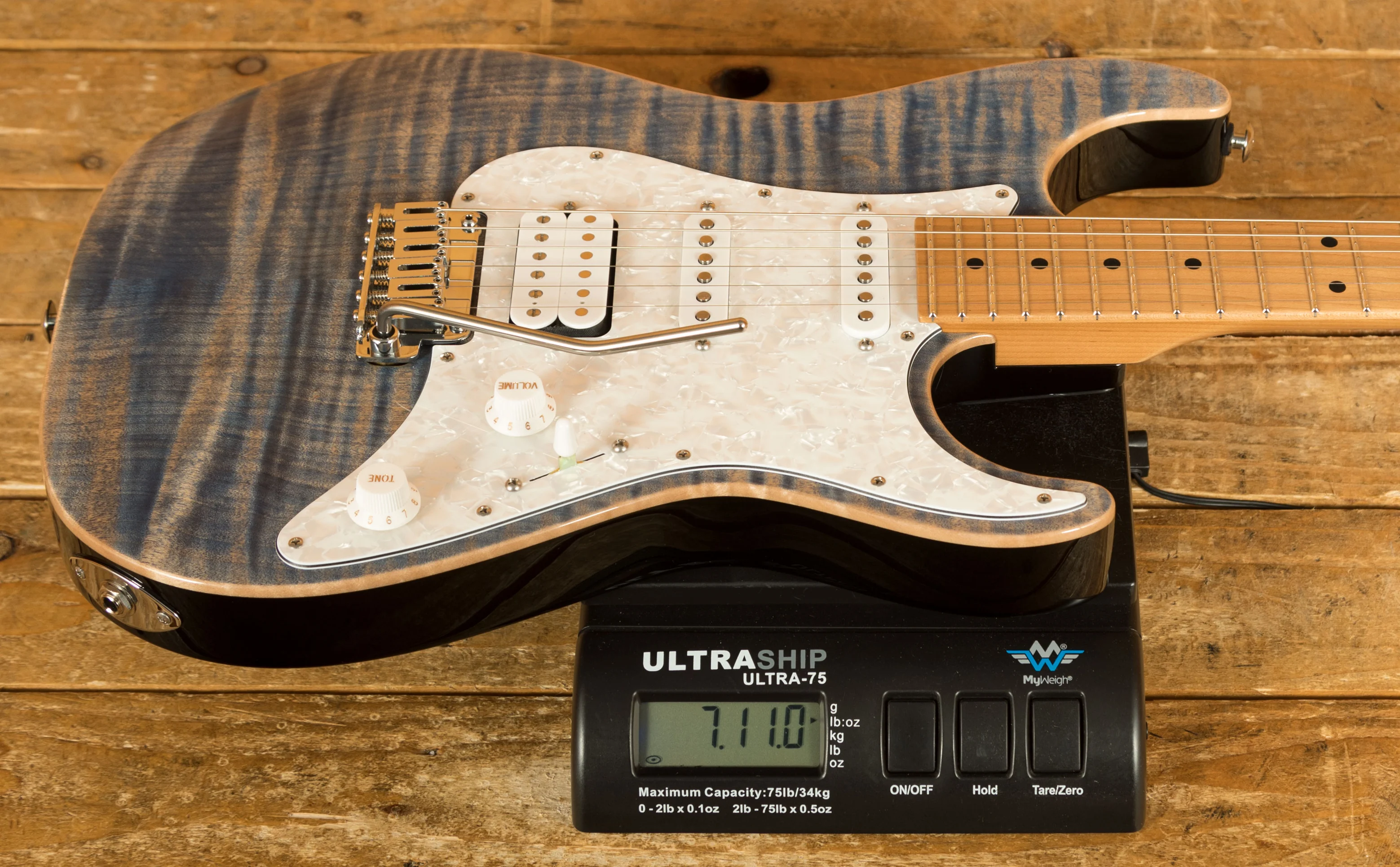 The Roasted Maple neck has a Satin finish which provides the smooth feel of natural wood as well as protection from moisture. With an Even C slim standard profile, Roasted Maple fingerboard with rolled frets and a 10''-14'' radius this is a substantial but real comfortable guitar. The stainless steel frets offer great string bending potential and long lasting playability while the sculpted heel allows for great access right up the neck.