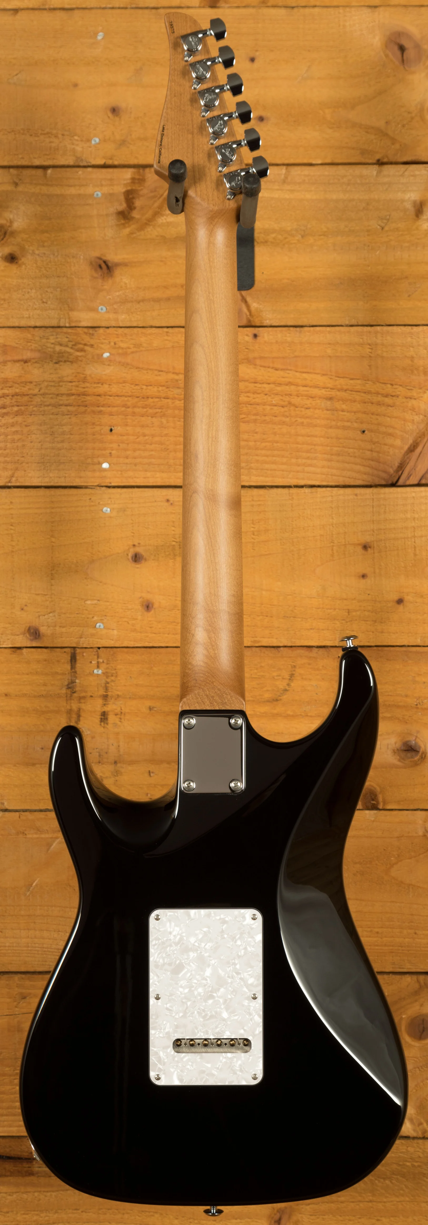 The Roasted Maple neck has a Satin finish which provides the smooth feel of natural wood as well as protection from moisture. With an Even C slim profile, rolled frets and a 10''-14'' radius this is a substantial but real comfortable guitar. The stainless steel frets offer great string bending potential and long lasting playability while the sculpted heel allows for great access right up the neck.