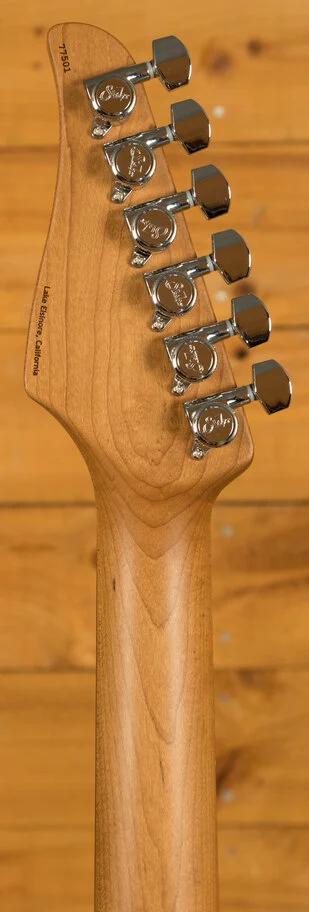 The Roasted Maple neck has a Satin finish which provides the smooth feel of natural wood as well as protection from moisture. With an Even C slim standard profile, Pau Ferro fingerboard with rolled frets and a 10''-14'' radius this is a substantial but real comfortable guitar. The stainless steel frets offer great string bending potential and long lasting playability while the sculpted heel allows for great access right up the neck.