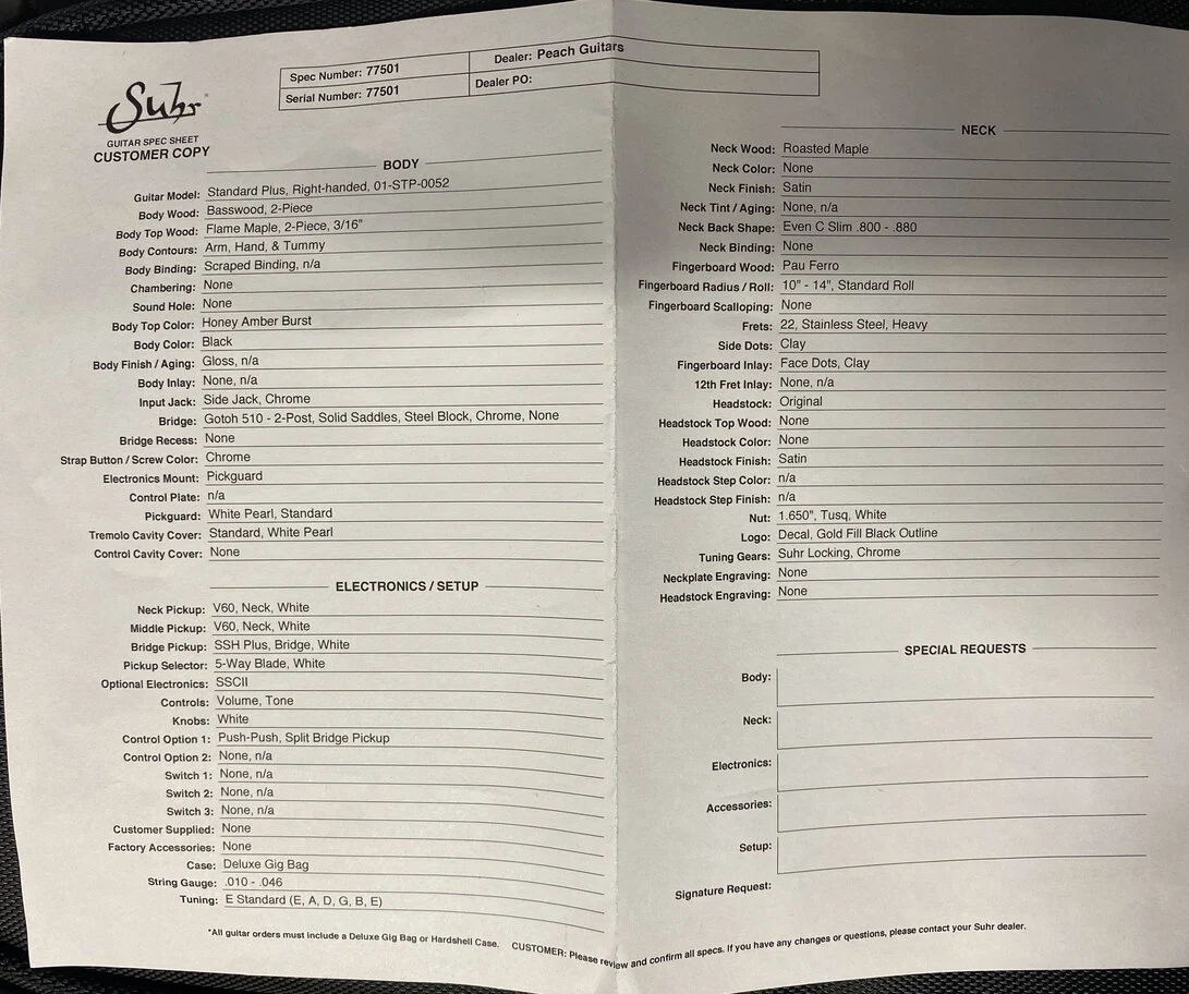 This Suhr Standard Plus in Trans Honey Amber Burst is another great example of the continued high-quality work from Suhr.