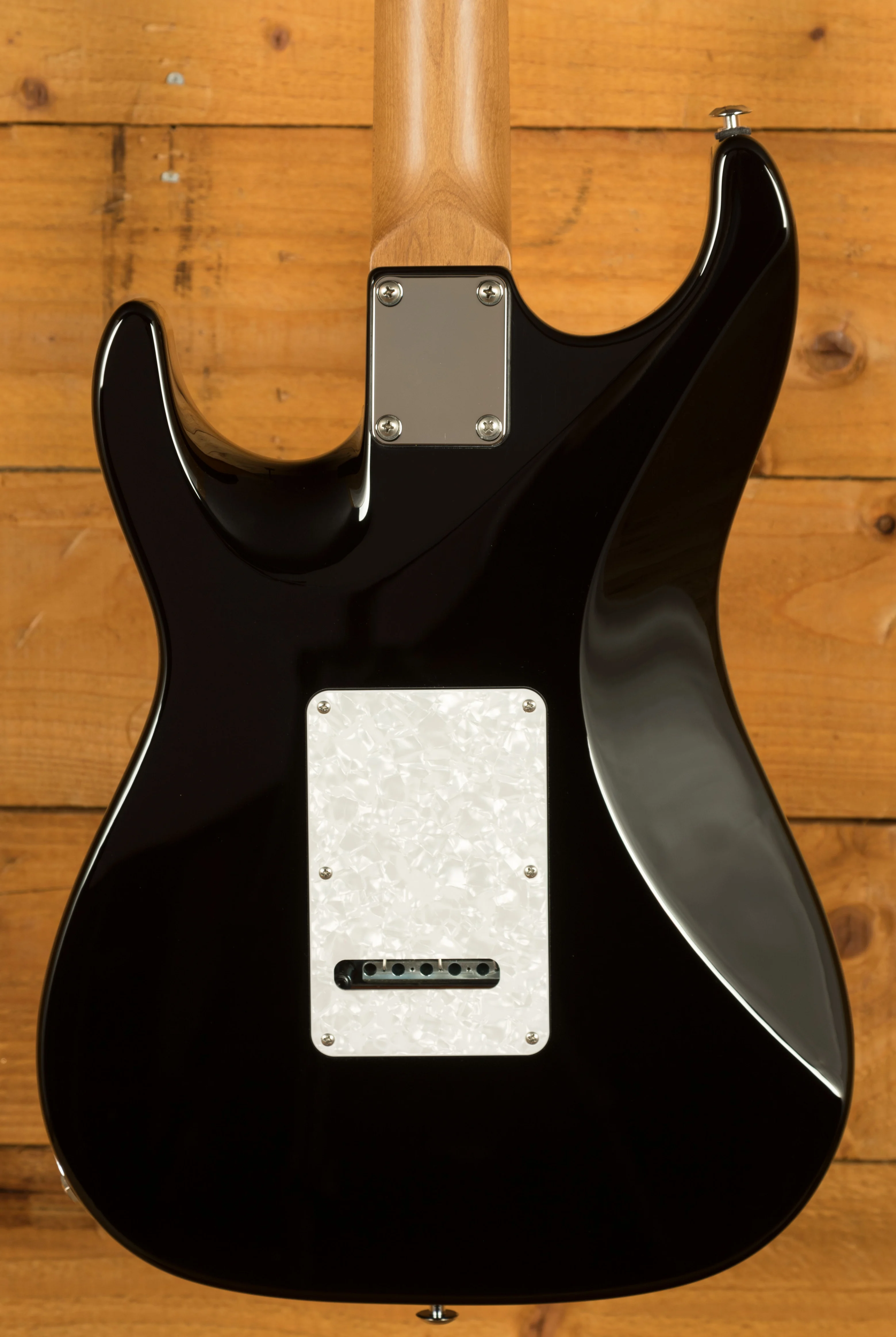 The Roasted Maple neck has a Satin finish which provides the smooth feel of natural wood as well as protection from moisture. With an Even C slim standard profile, Pau Ferro fingerboard with rolled frets and a 10''-14'' radius this is a substantial but real comfortable guitar. The stainless steel frets offer great string bending potential and long lasting playability while the sculpted heel allows for great access right up the neck.