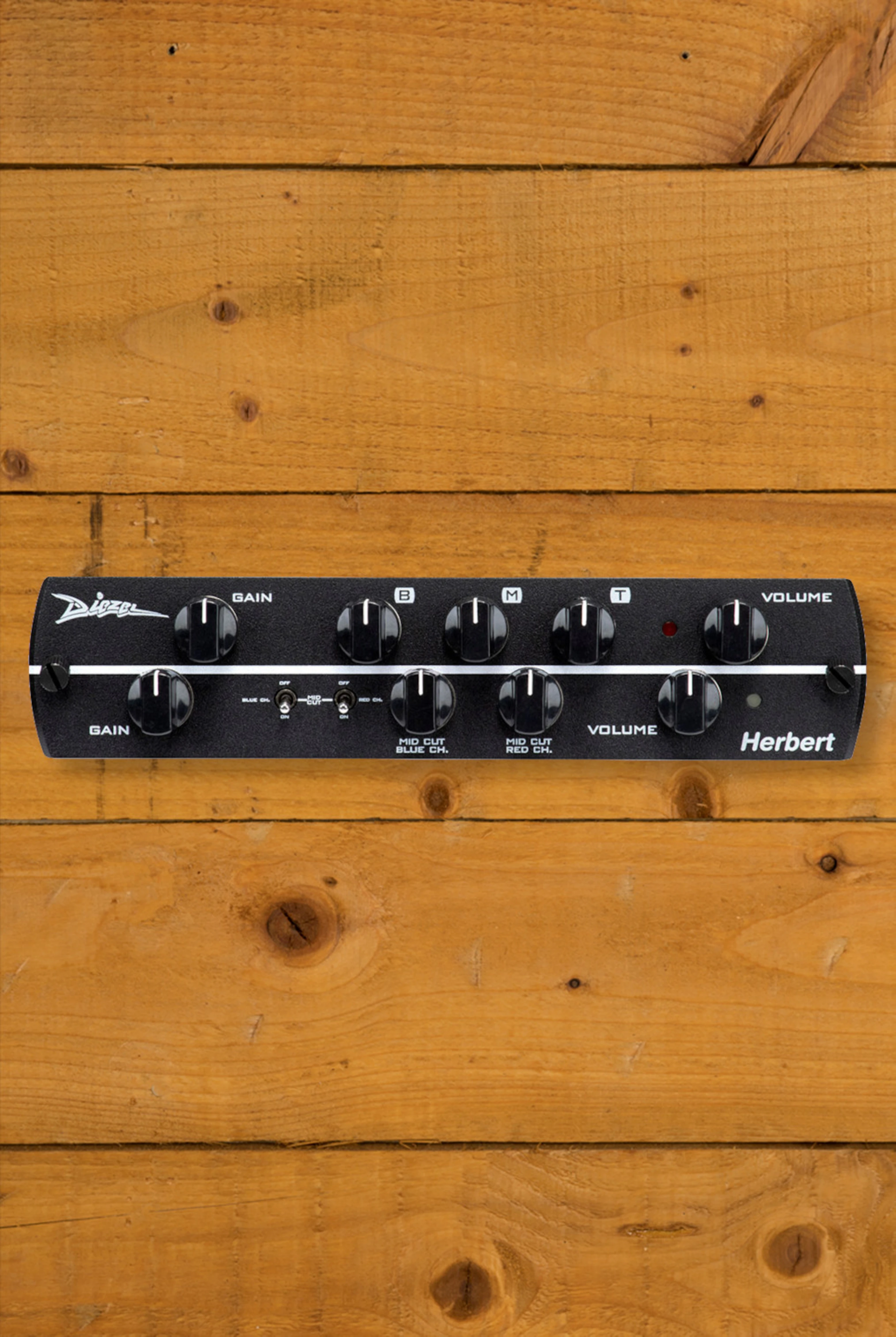 Peter Diezel approached the development of the Herbert with a fresh perspective, aiming to create an amplifier capable of exceptional performance across various sonic territories. The goal was to achieve delicate and dynamic clean tones, detailed and focused crunch sounds, and aggressive, sustaining solo tones without requiring extensive tweaking of the controls. This capability was intended to be present from the outset, with the amplifier delivering these core sounds with the knobs set at their midpoint.