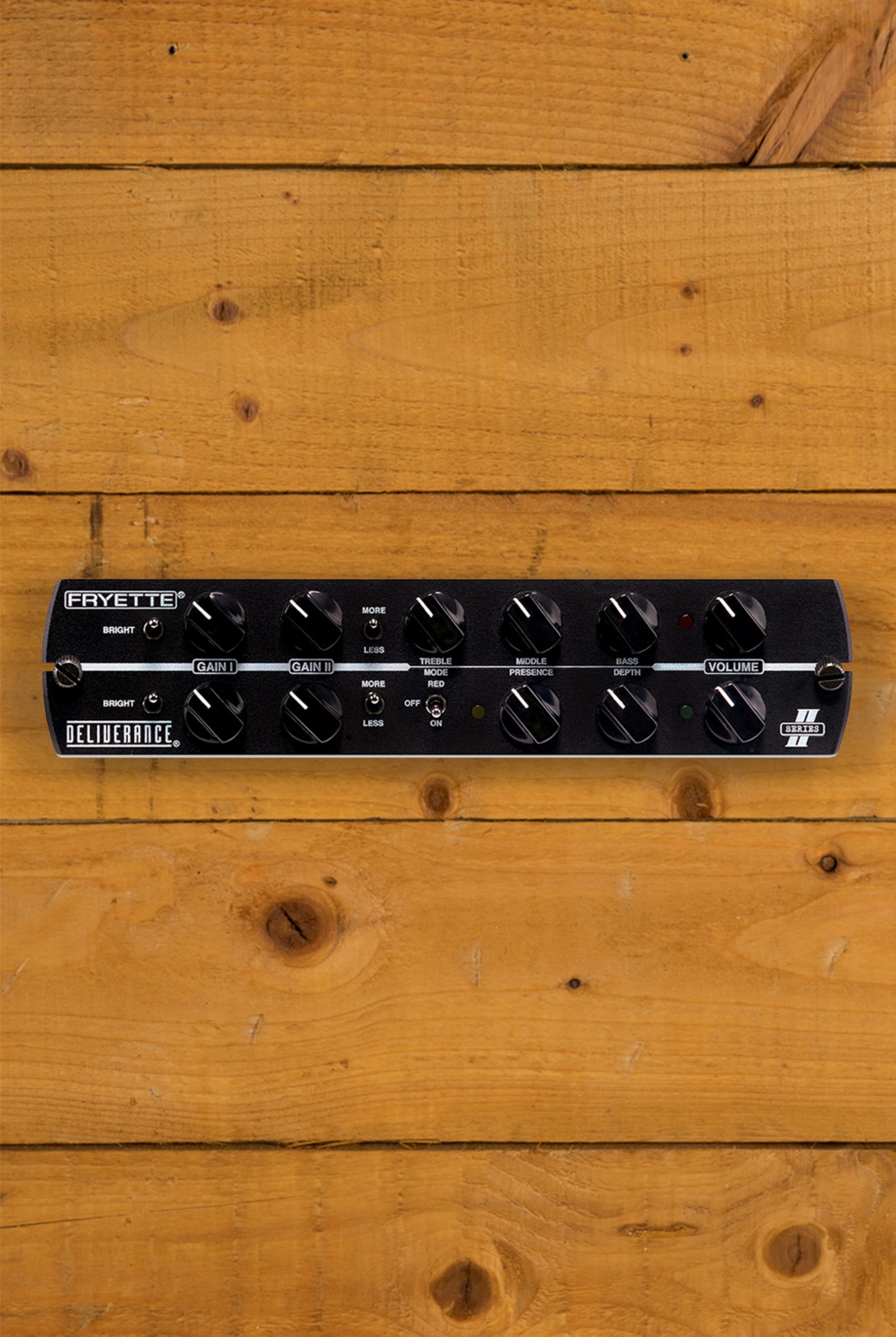 The Synergy Fryette Deliverance Preamp Module offers guitarists the core sound and functionality of the Fryette Deliverance amplifier in a modular format. This module retains the essential characteristics that have made the Deliverance a popular choice among players seeking straightforward operation and a wide range of high-gain tones. A key feature is its GAIN I/GAIN II structure, which allows for precise control over the gain stages, enabling users to dial in clean tones, thick overdrive, dynamic crunch, and high-gain distortion. These tonal variations are also responsive to adjustments in the guitar's volume control, providing further dynamic flexibility.