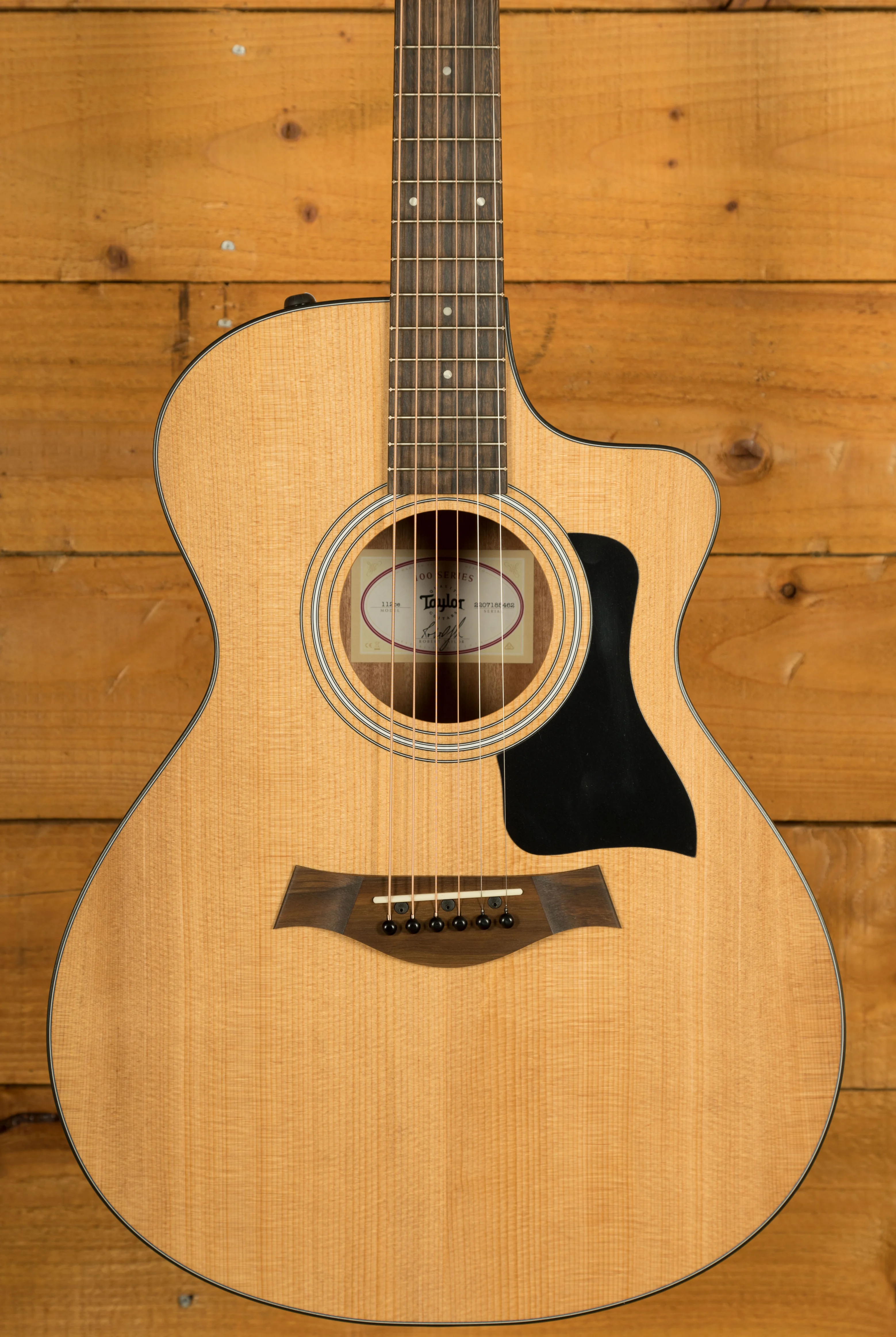 Players love the cutaway Grand Concert acoustic guitars for its articulate sound and compact dimensions, and the 112ce fits the bill at a price point that's especially ideal for new players. A solid spruce top delivers bold, punchy sound with a balanced, clean character, making it a great choice for fingerstyle players as well as flatpickers and strummers. New and experienced players alike will appreciate the responsive, relaxed feel of the slender Taylor neck, and with ES2 electronics on board, you're guaranteed authentic acoustic tone whenever you need to plug in to an amplifier or PA. The guitar comes with a lightweight, soft gig bag for transporting the 112ce between home, lessons and wherever else your music takes you.