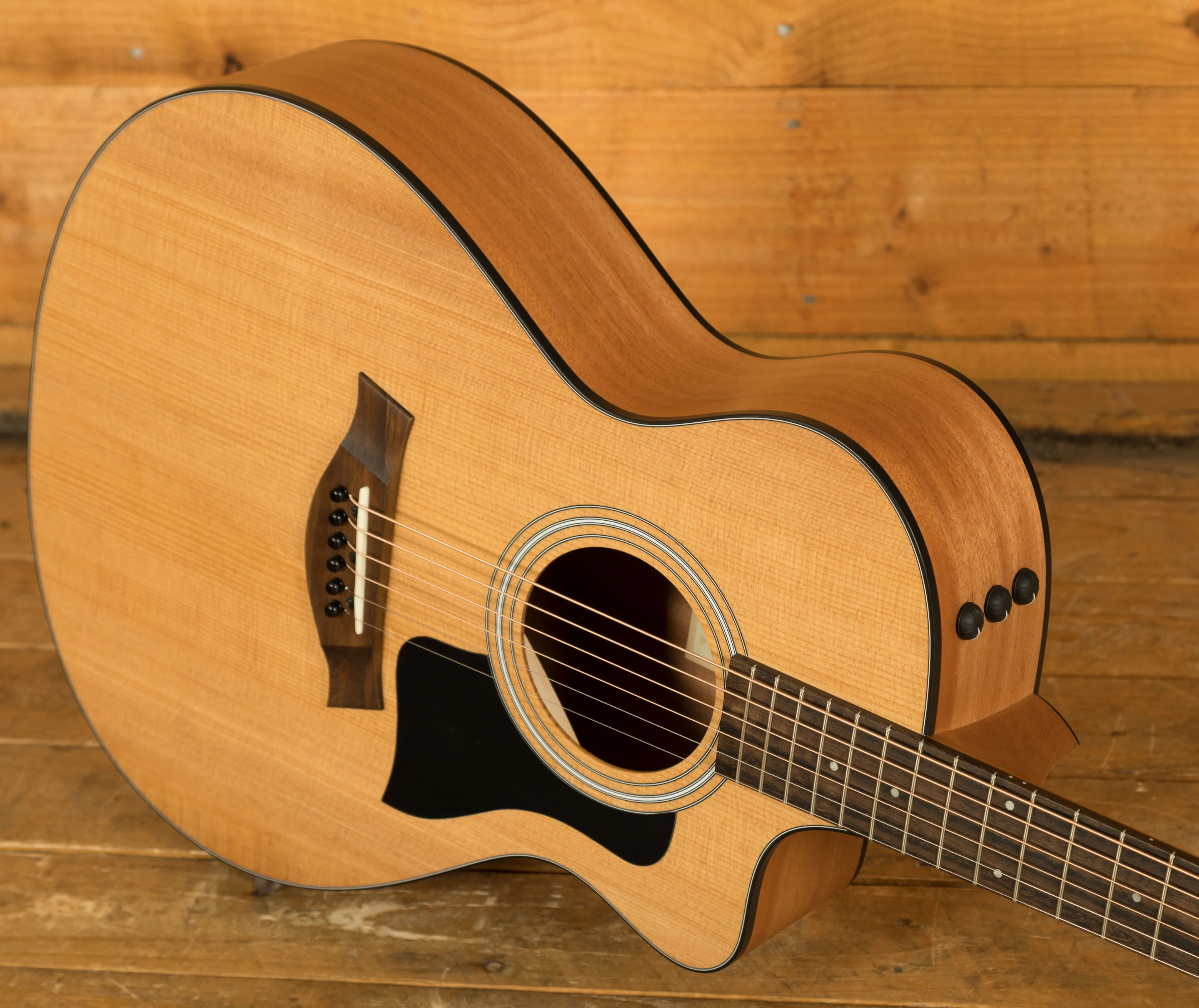 Torrefied Spruce - Treated with Taylor's special roasting process, torrefied spruce tops deliver all the clarity, balance and projection you’d expect from a traditional spruce top with an extra dash of warmth and played-in depth.