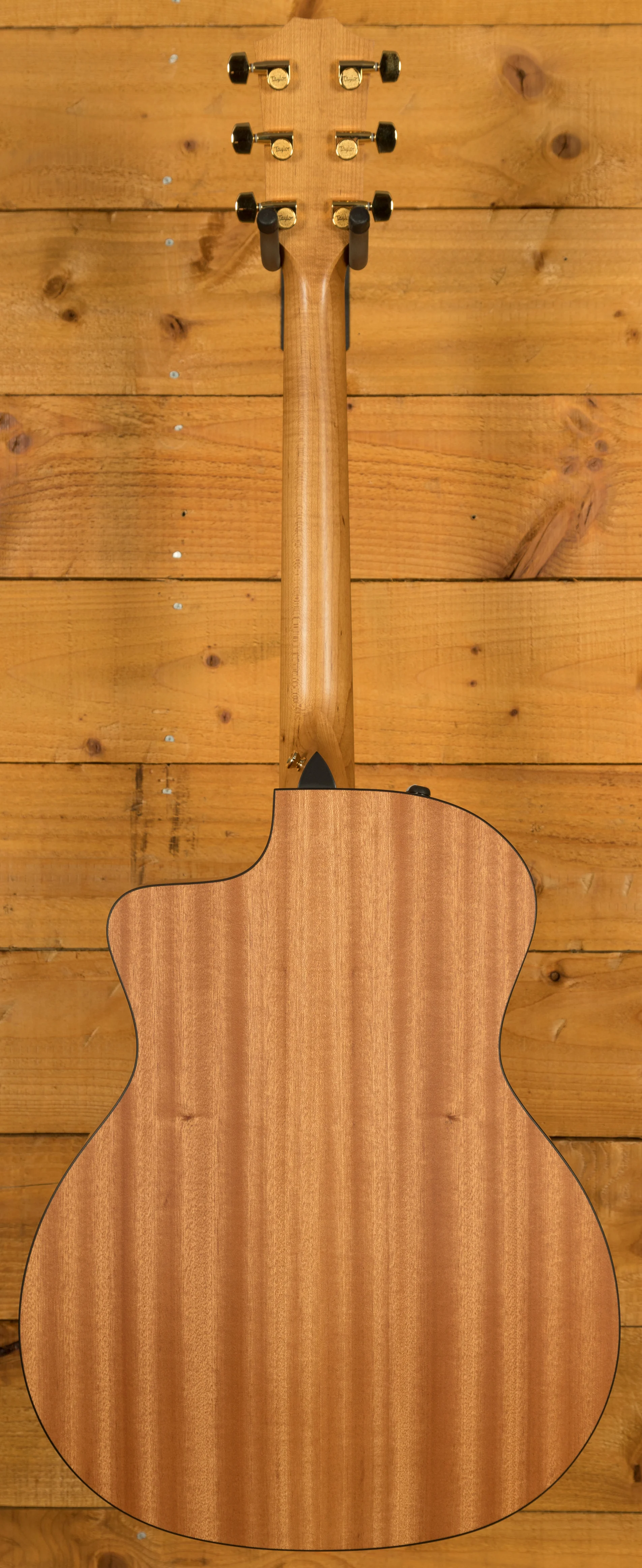 Torrefied Spruce - Treated with Taylor's special roasting process, torrefied spruce tops deliver all the clarity, balance and projection you'd expect from a traditional spruce top with an extra dash of warmth and played-in depth.