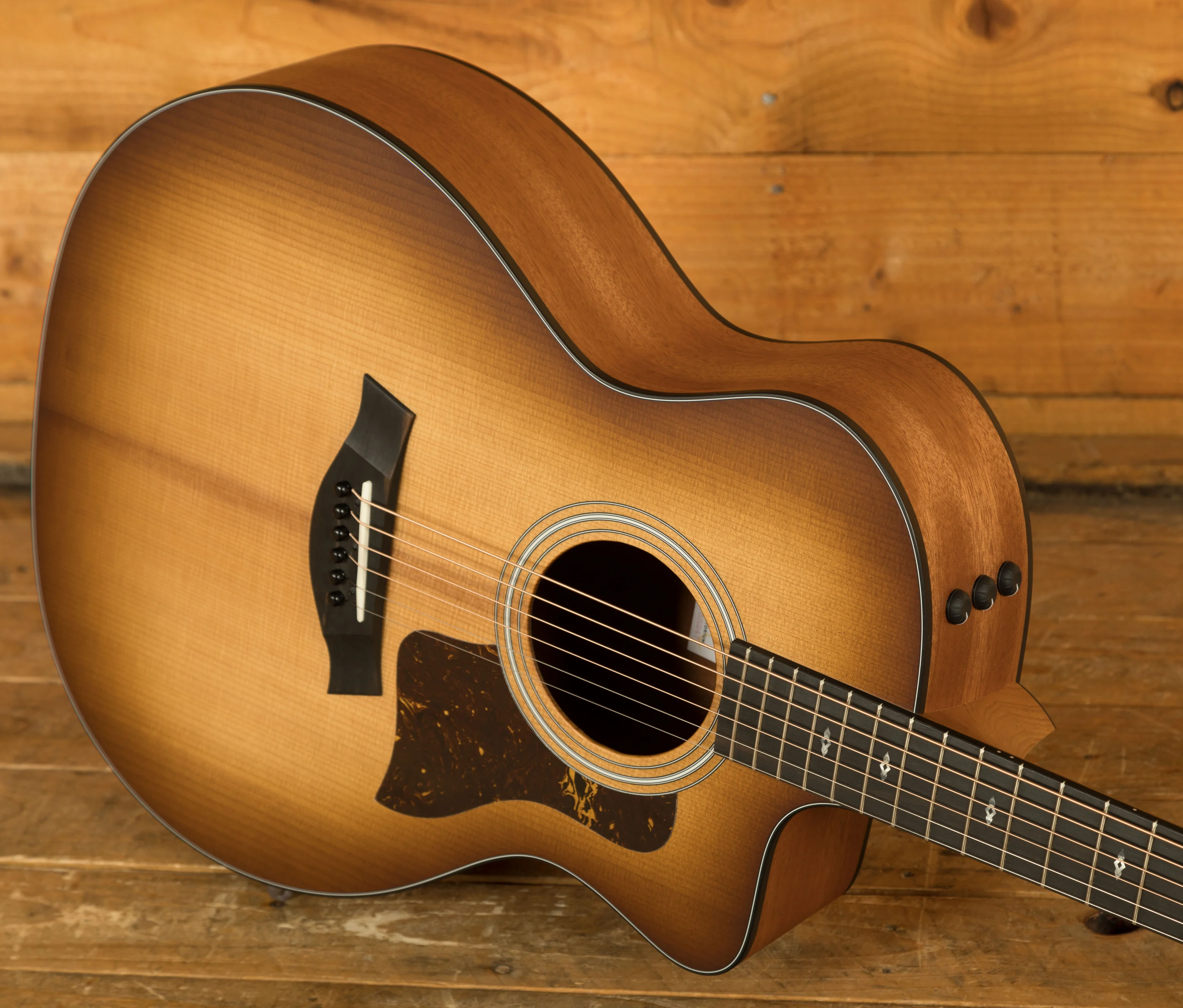 The Sunset Blvd 114ce SEB channels the energy and style of the storied Los Angeles music scene into a versatile, player-friendly instrument. With its solid torrefied spruce top and layered sapele back and sides, this cutaway Grand Auditorium delivers a clear, balanced sound with bold projection and a warm, played-in character. Cantilevered V-Class bracing dials up extra volume, lengthens sustain and improves intonation up and down the easy-playing, slim-profile Taylor neck. A vintage-vibed Sunset Edgeburst soundboard finish, Italian acrylic diamond inlays, gold tuners and a custom interior label contribute to the Sunset Blvd 114ce SEB's stylish, LA-inspired aesthetic. An onboard ES2 pickup delivers authentic amplified acoustic tone and a soft gig bag for easy transport.