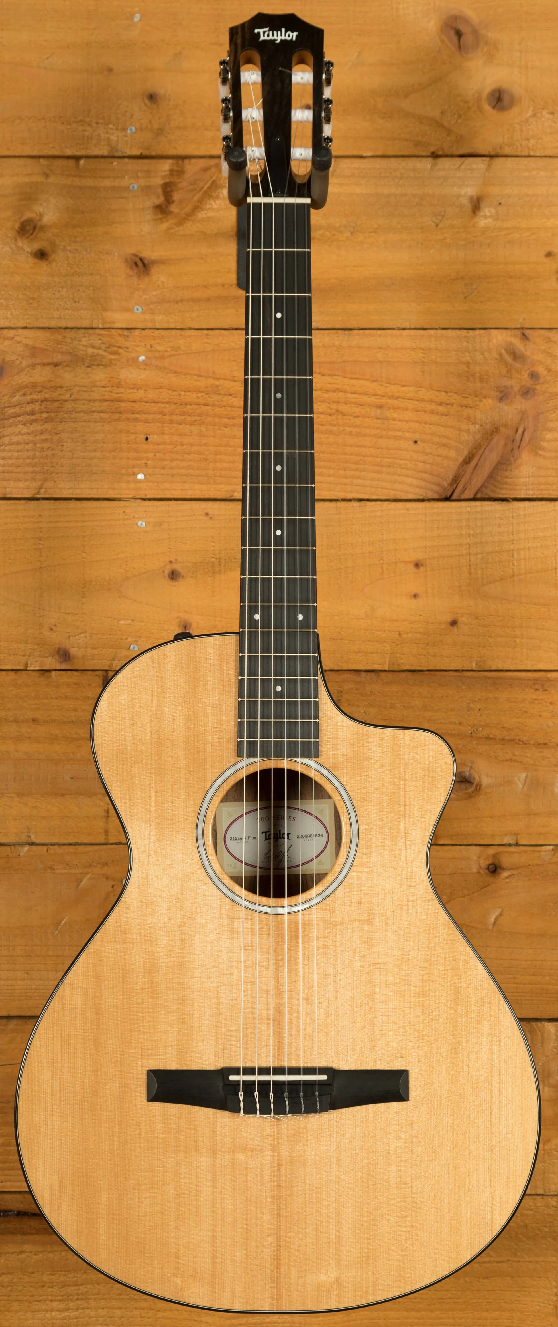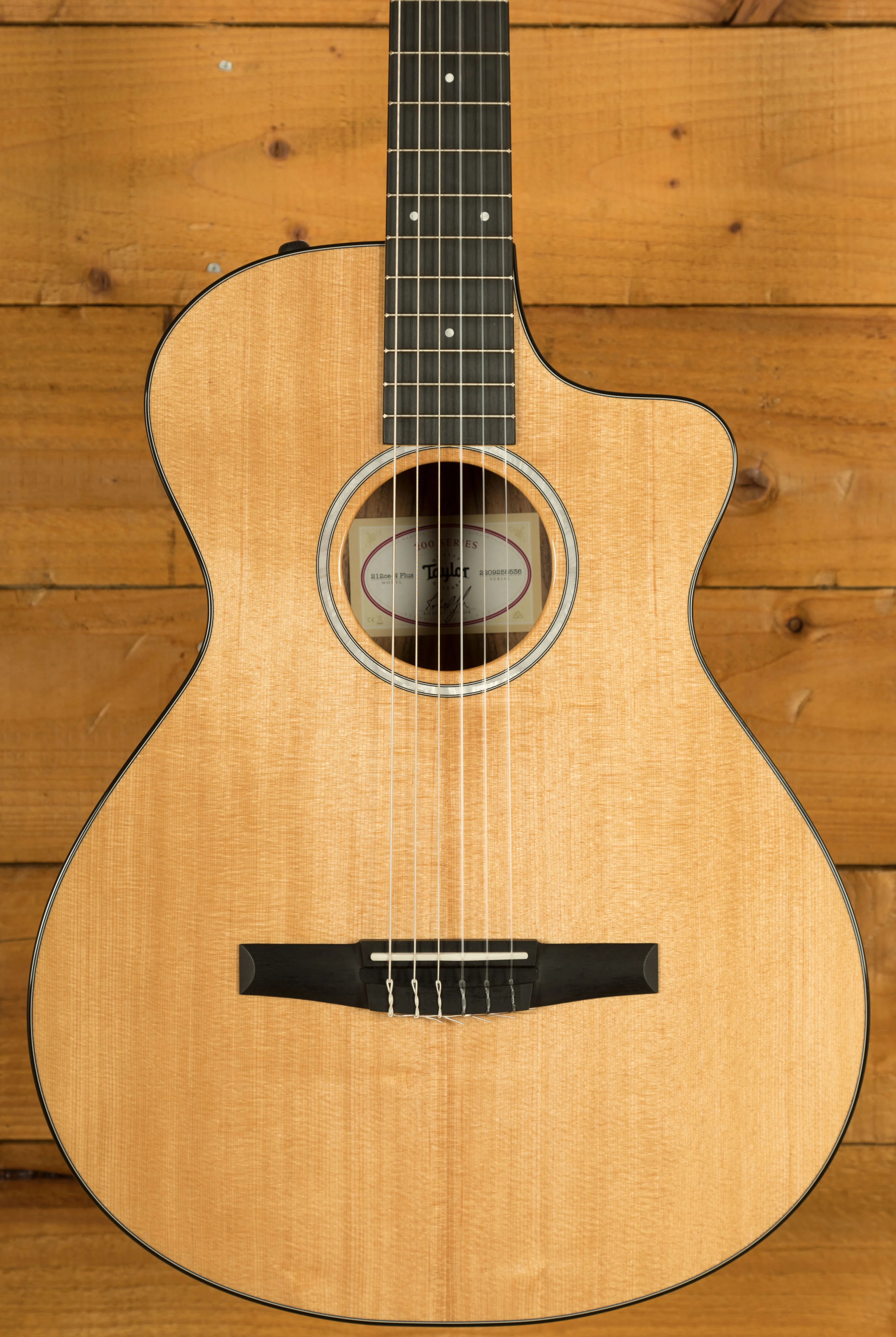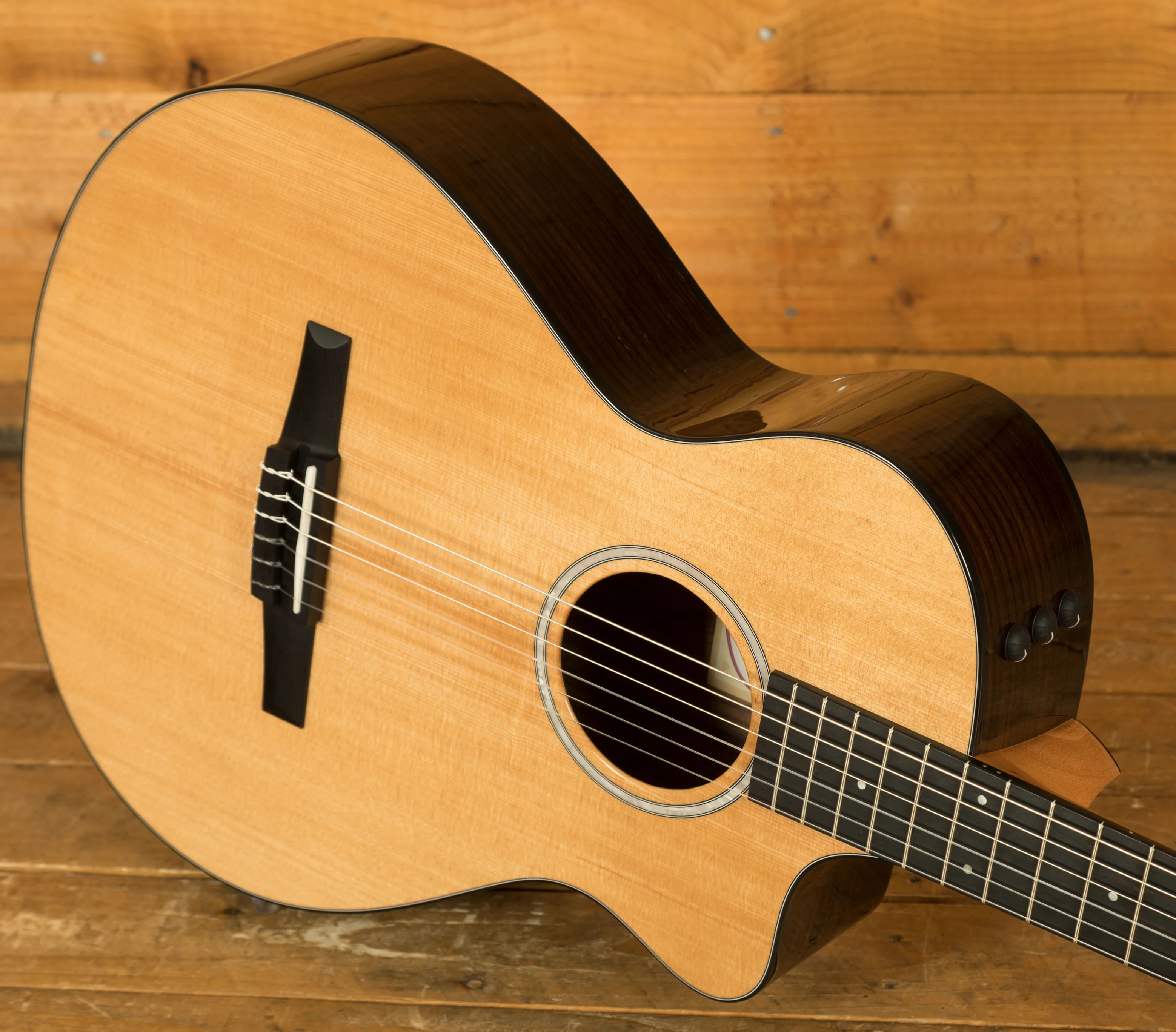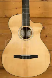 Torrefied Spruce - Treated with Taylor's special roasting process, torrefied spruce tops deliver all the clarity, balance and projection you'd expect from a traditional spruce top with an extra dash of warmth and played-in depth.
