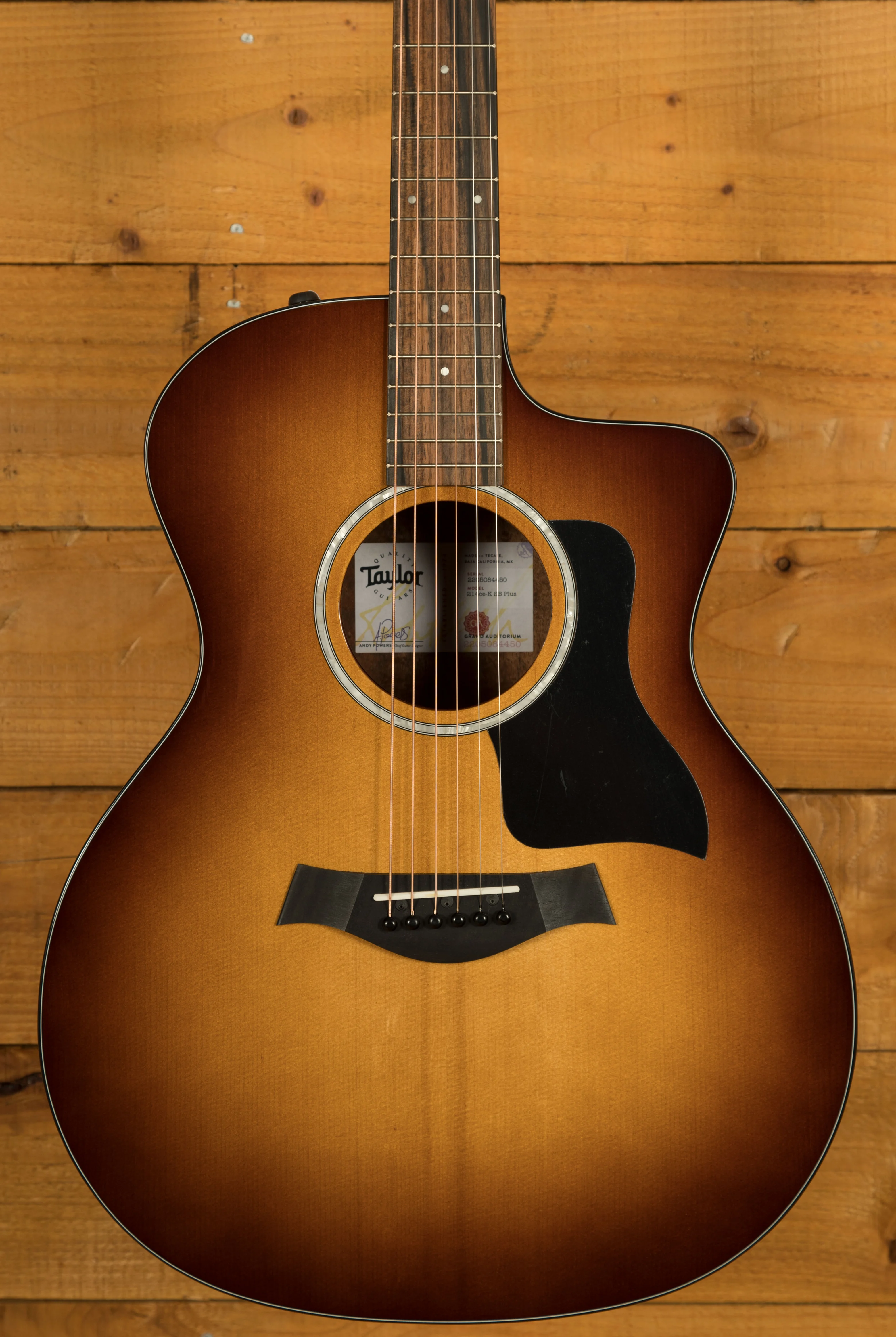 With its beautiful back and sides of layered Hawaiian koa, sunburst finish and solid-wood top, the 214ce-K SB Plus is a treat for both the eyes and ears. This versatile Grand Auditorium acoustic-electric features a solid top of torrefied spruce, seasoned by a special roasting process that adds an aged-in sweetness and warmth along with a rich voice with clear projection. Taylor's C-Class bracing architecture dials up louder volume, longer sustain and more low-end power, yielding a balanced musical character that makes this model a great choice for virtually any playing style or application, from flatpicking to fingerstyle and live performance to recording. Featuring an easy-playing neck, accommodating body shape and built-in ES2 electronics for easy amplification, the 214ce-K SB Plus is the total package for any type of player.