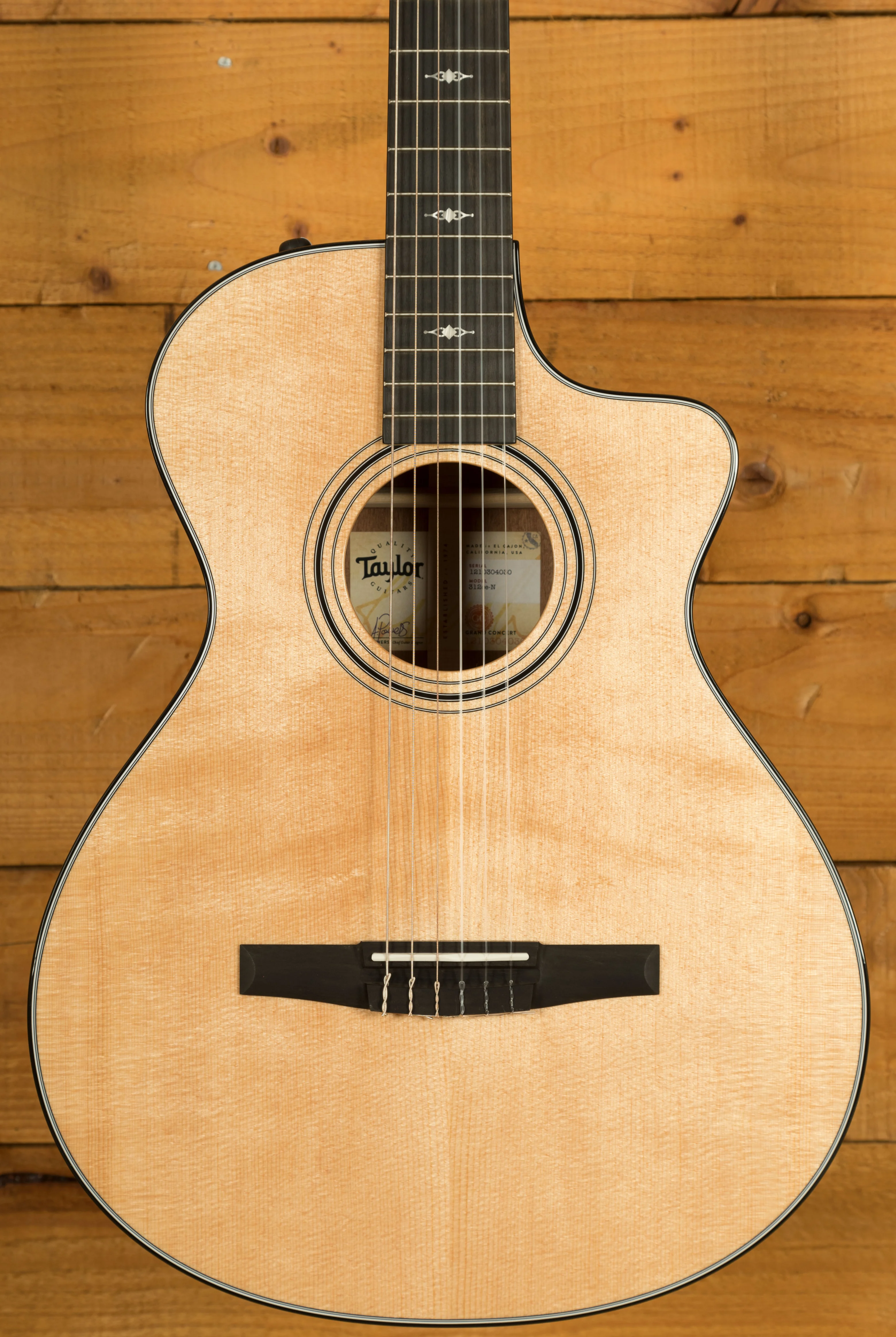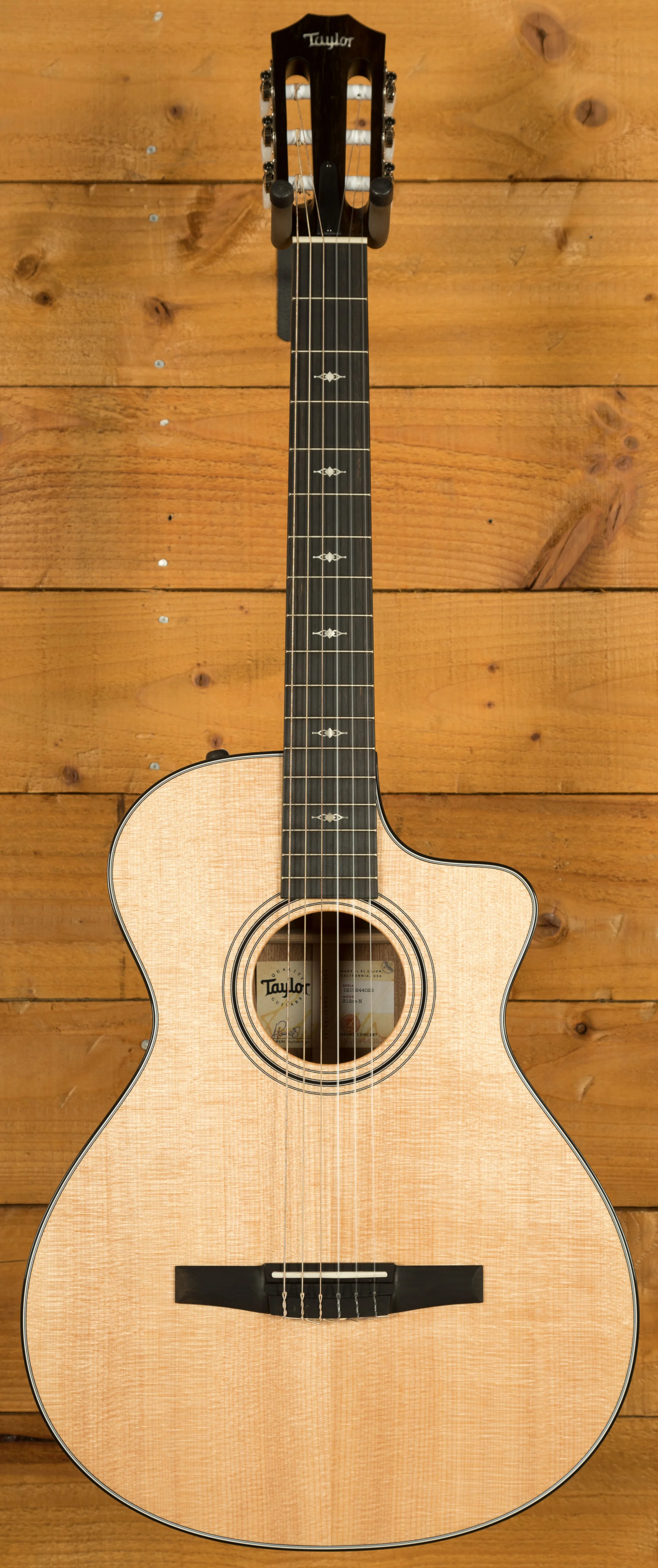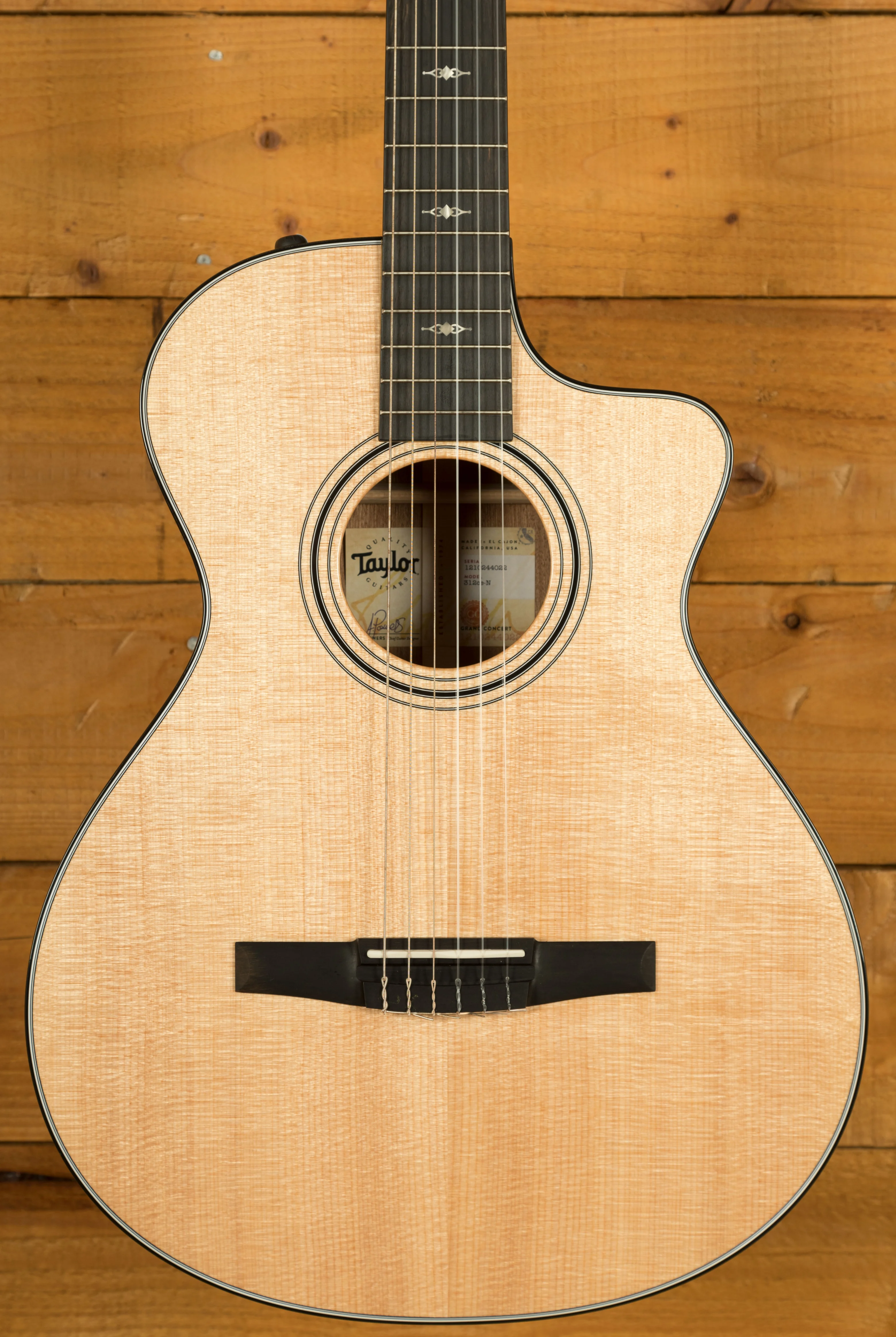 The compact Grand Concert body shape is a natural fit with nylon strings, generating an articulate, snappy sound that will inspire classical players and steel-string enthusiasts alike. The 312ce-N boasts solid sapele back and sides with a Sitka spruce top, offering a punchy midrange and clear highs ideal for fingerstyle play. The 1-7/8" nut width helps keep the strings adequately spaced for fingerpicking without putting strain on your fretting hand, and the Grand Concert's dimensions make for a pleasingly accommodating feel. Taylor's ES-N electronics faithfully amplify the 312ce-N in live situations, and its clean appointment package offers a traditional, performance-focused aesthetic. It ships with a hardshell case.