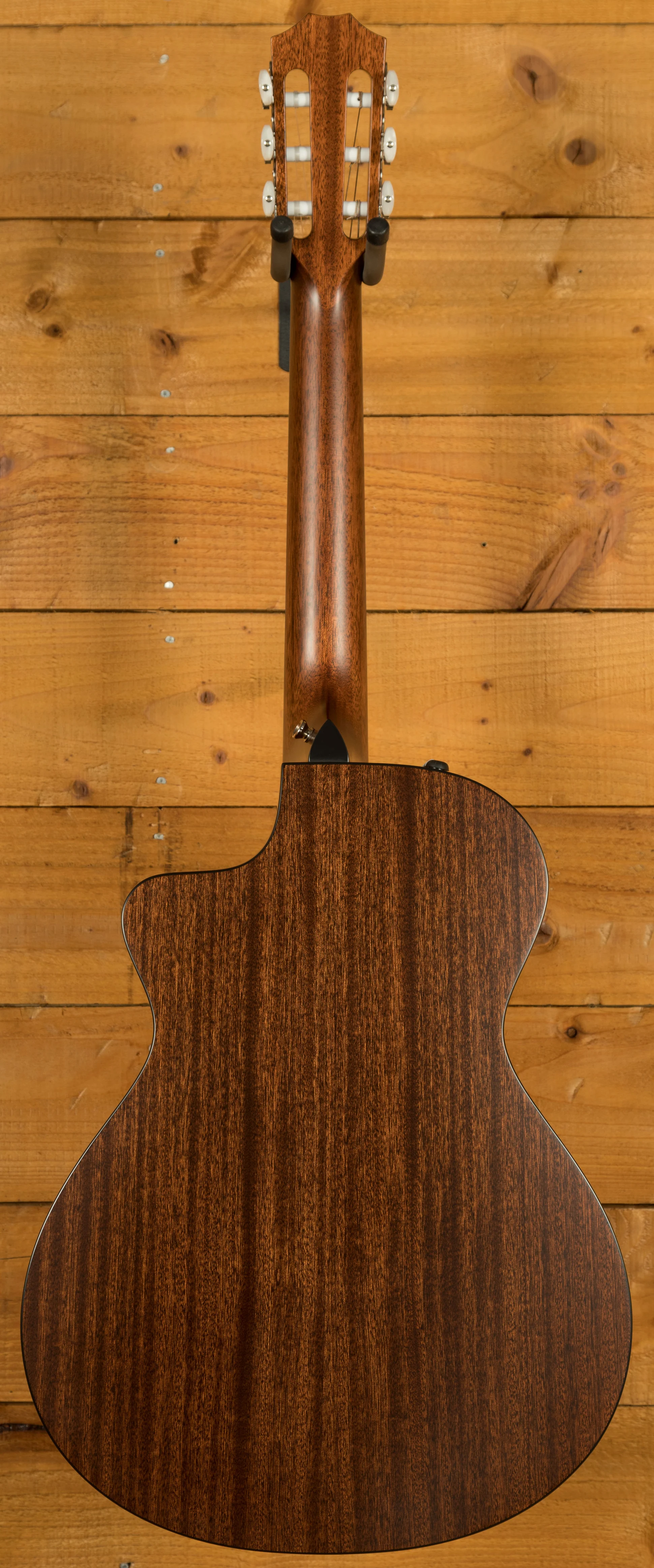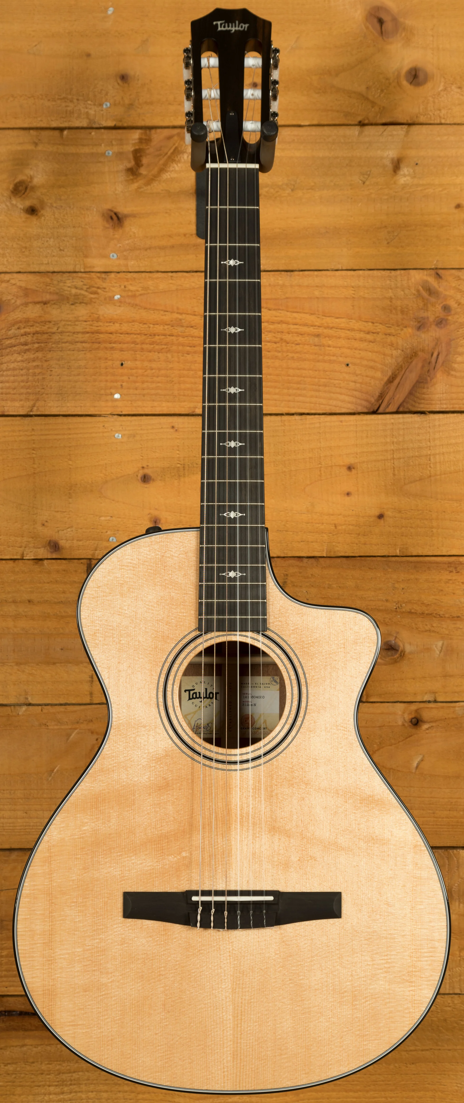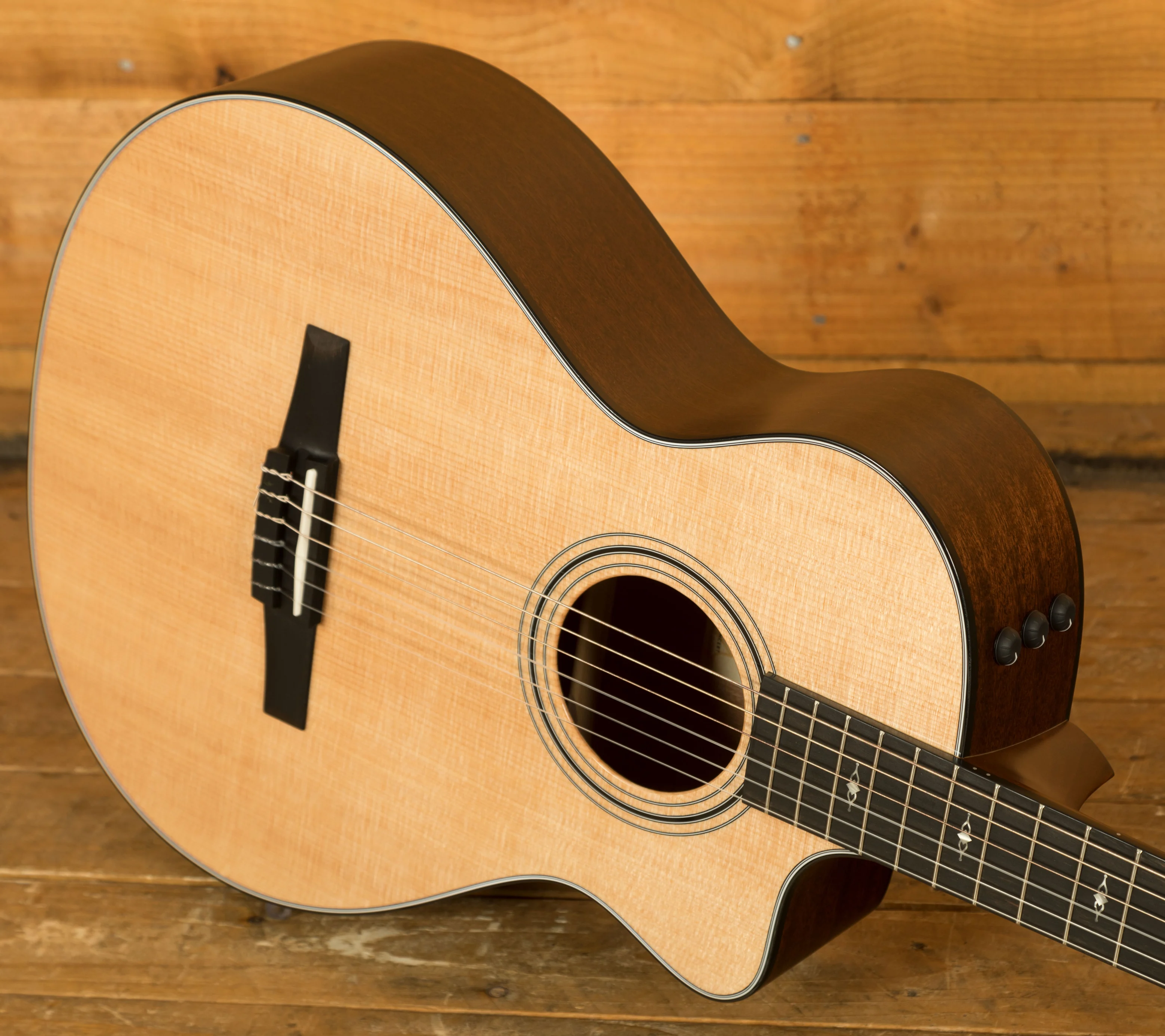 The compact Grand Concert body shape is a natural fit with nylon strings, generating an articulate, snappy sound that will inspire classical players and steel-string enthusiasts alike. The 312ce-N boasts solid sapele back and sides with a Sitka spruce top, offering a punchy midrange and clear highs ideal for fingerstyle play. The 1-7/8" nut width helps keep the strings adequately spaced for fingerpicking without putting strain on your fretting hand, and the Grand Concert's dimensions make for a pleasingly accommodating feel. Taylor's ES-N electronics faithfully amplify the 312ce-N in live situations, and its clean appointment package offers a traditional, performance-focused aesthetic. It ships with a hardshell case.