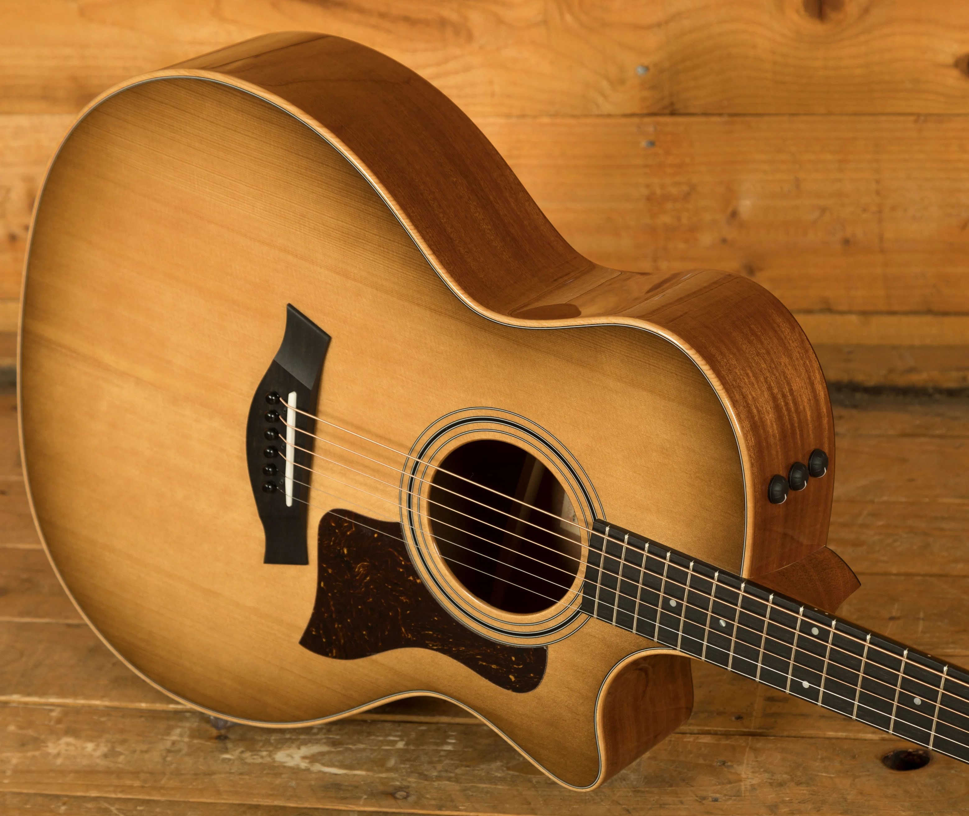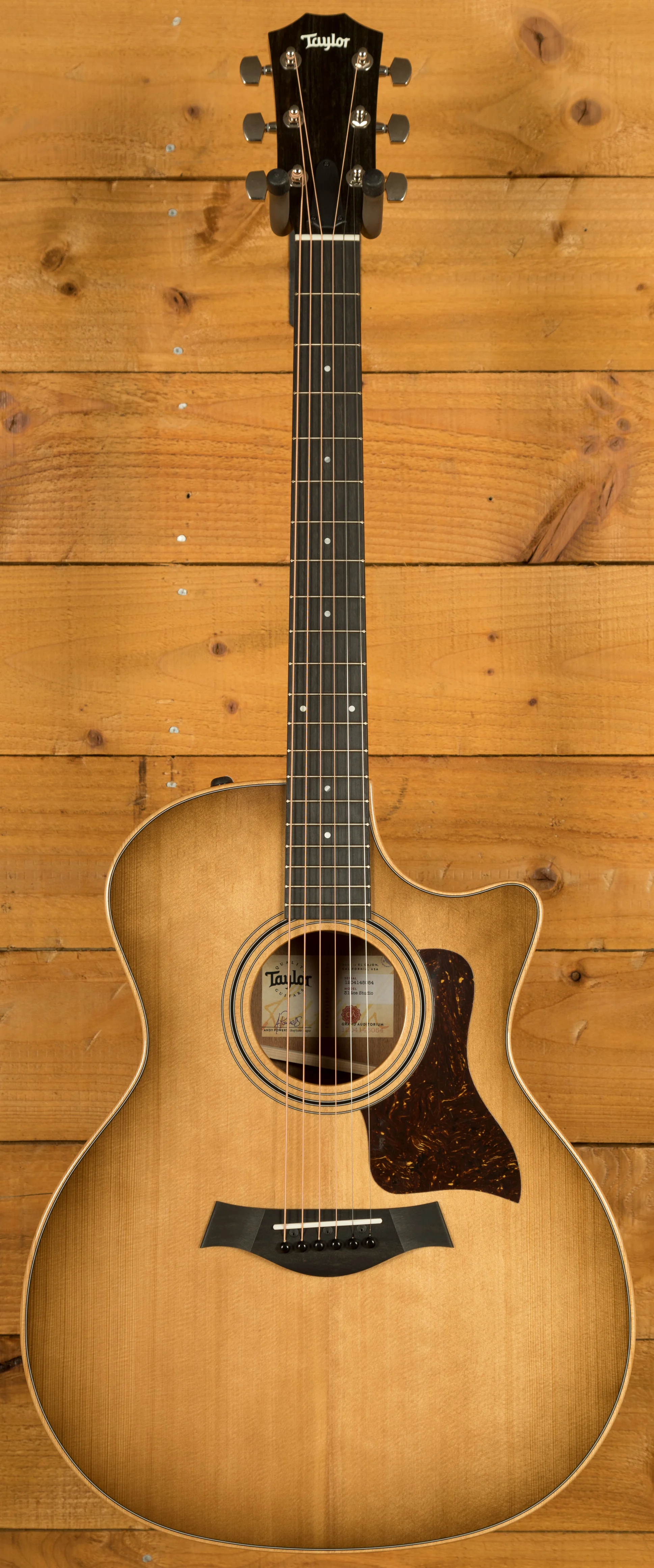 The Taylor 314ce Studio is a refined take on Taylor's iconic Grand Auditorium 314ce, offering players a professional-grade instrument at an attractive price point. Featuring a torrefied spruce top paired with sapele back and sides, the 314ce Studio delivers the warm, balanced tone that has made this model a favourite for decades. The all-solid-wood construction ensures excellent resonance, sustain, and dynamic range, making it ideal for both strumming and fingerpicking styles.