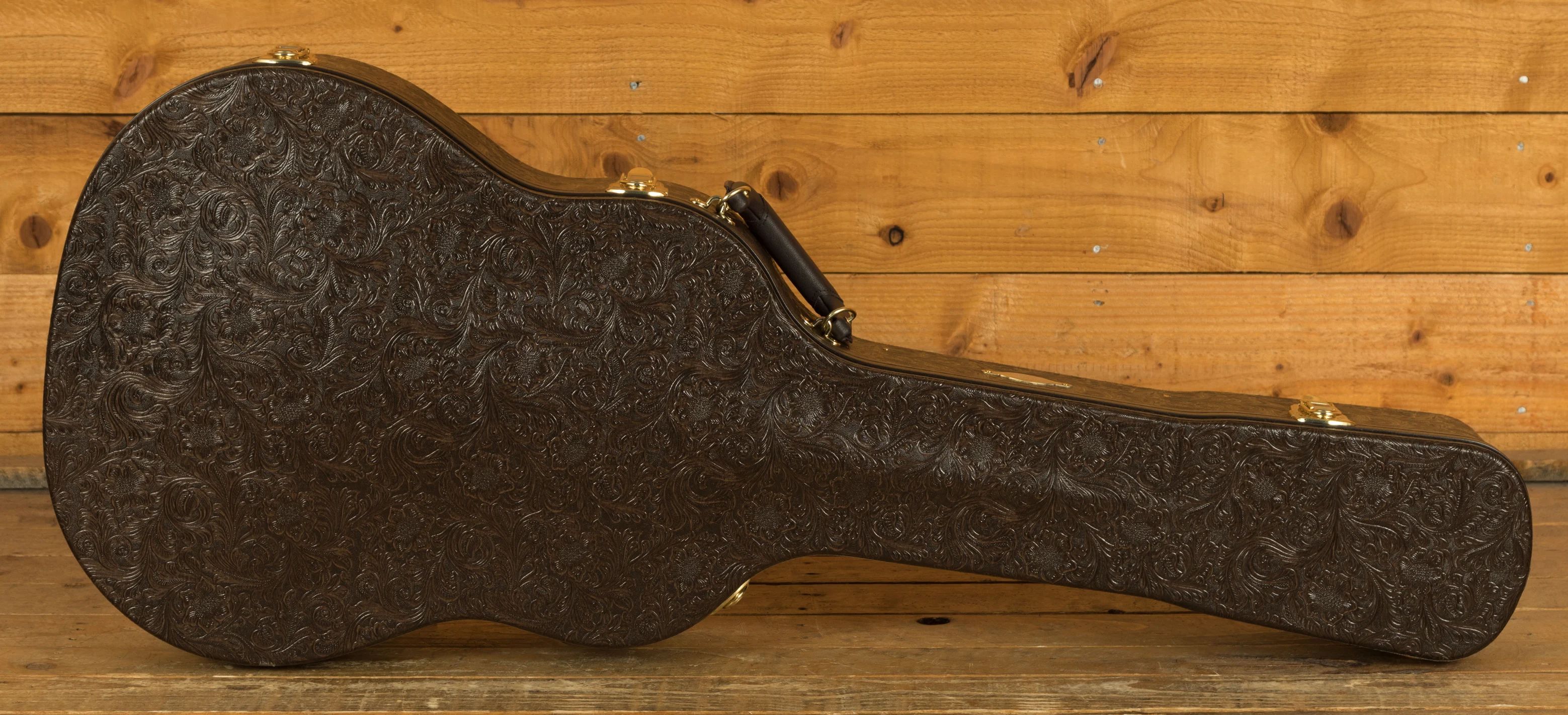Made with our Grand Pacific dreadnought body shape, the 327e yields a seasoned, blended tone that evokes vintage acoustic vibes. Solid mahogany back, sides and top deliver balance, clarity and midrange focus, yielding a bold fundamental note every time with overtones that don't dominate the sound. The onboard V-Class bracing helps draw out more of mahogany's natural warmth, while the mahogany top keeps the attack balanced and smooth. Finished off with a dusky edgeburst colour treatment, the 327e ships with ES2 electronics and a hardshell guitar case.