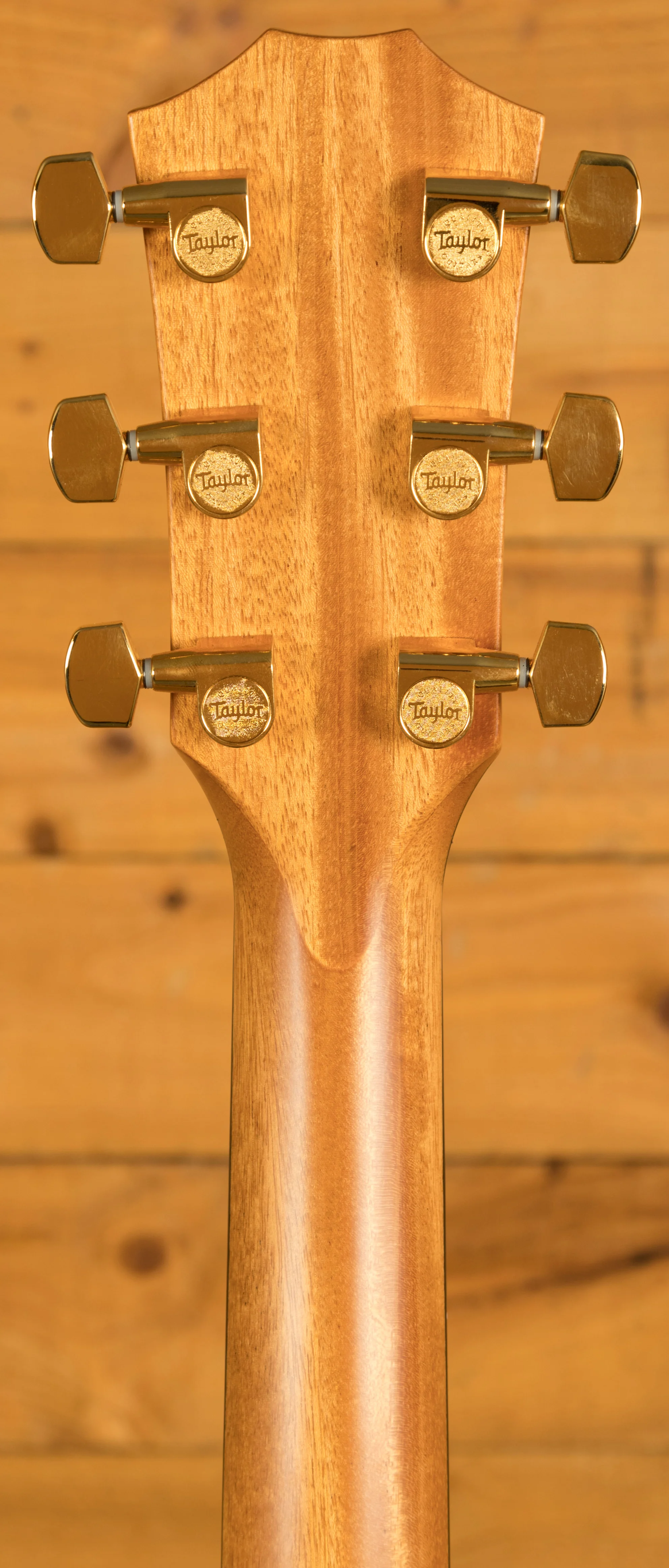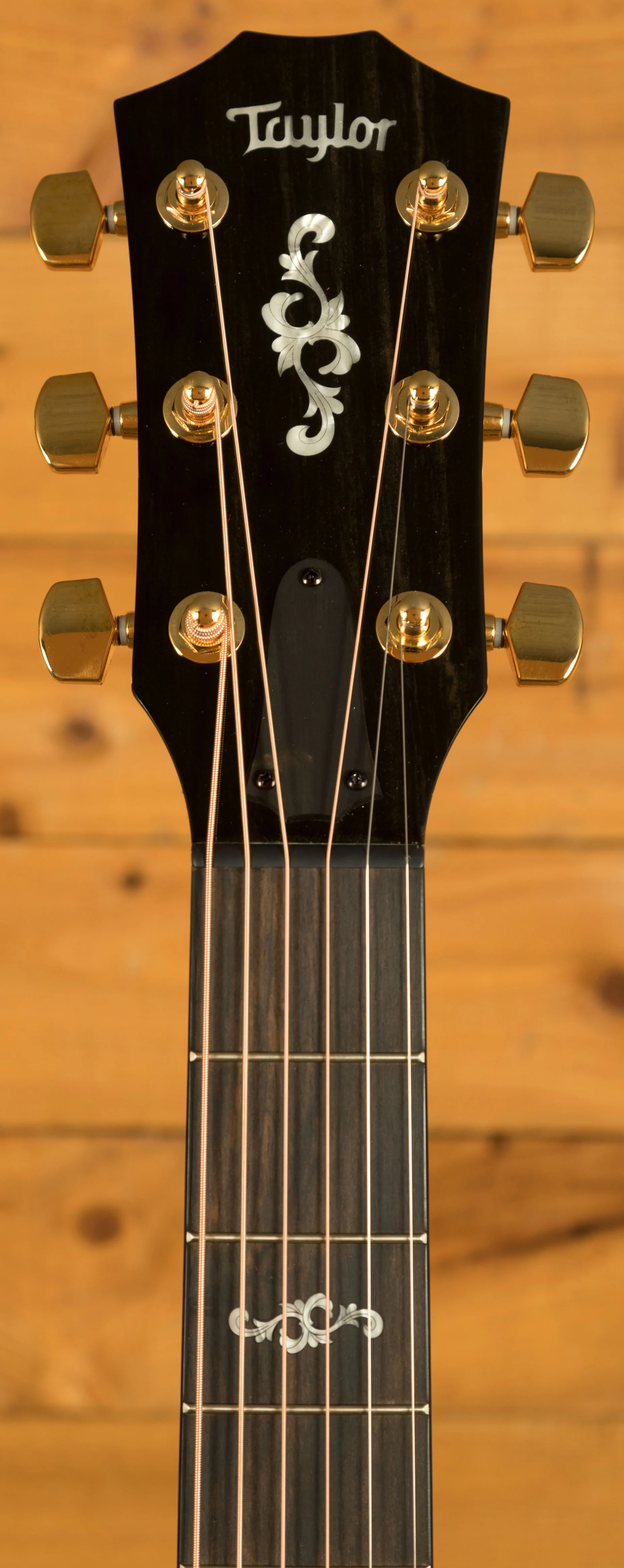 Visually, this Special Edition stands out with a Shaded Edgeburst gloss top, grained ivoroid binding, green abalone rosette, and Engraved Victorian inlays on the fretboard and peghead. Gold hardware and ebony bridge pins with gold acrylic dots complete the upscale aesthetic. It's equipped with Taylor's Expression System 2 electronics and comes in a deluxe hardshell case.