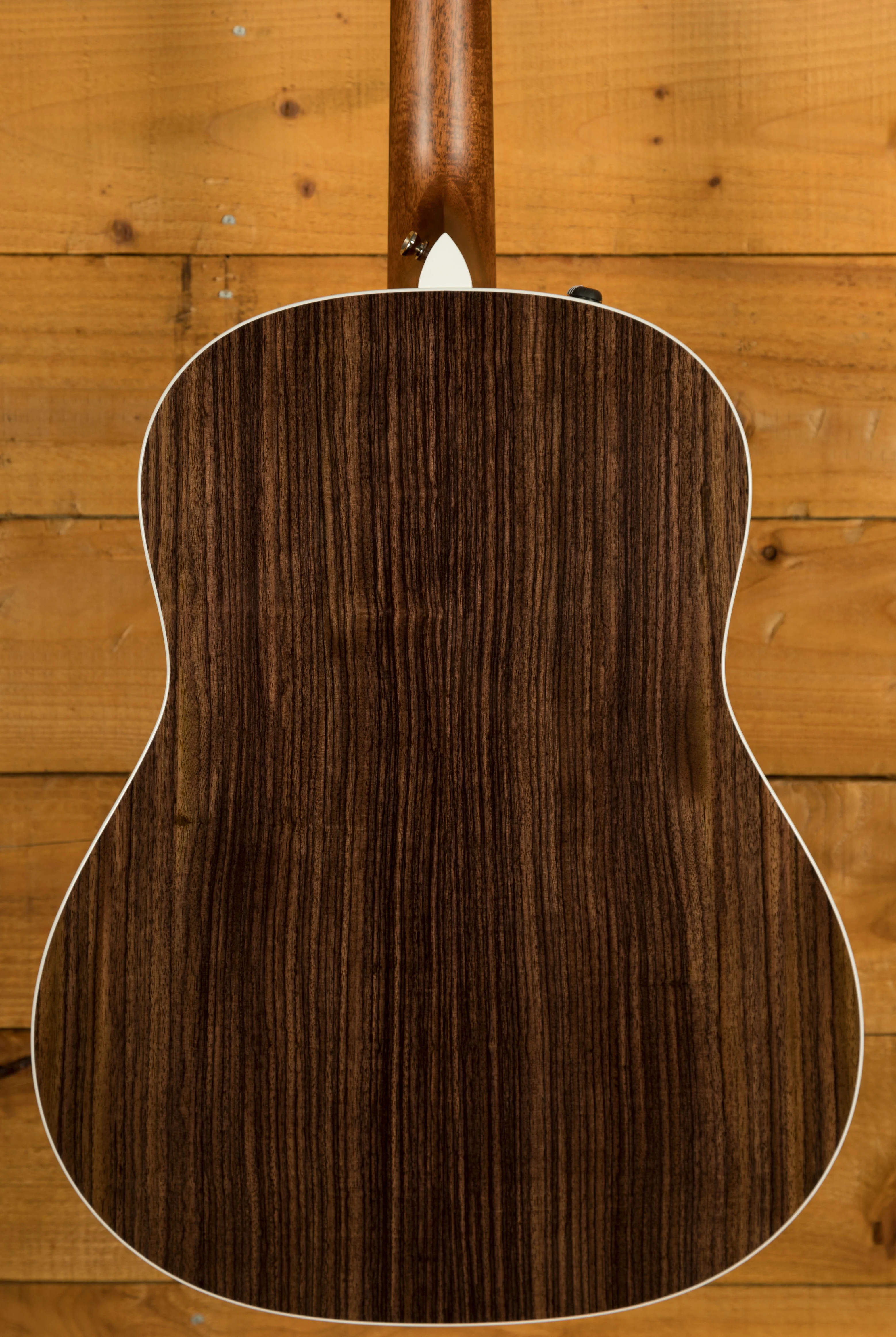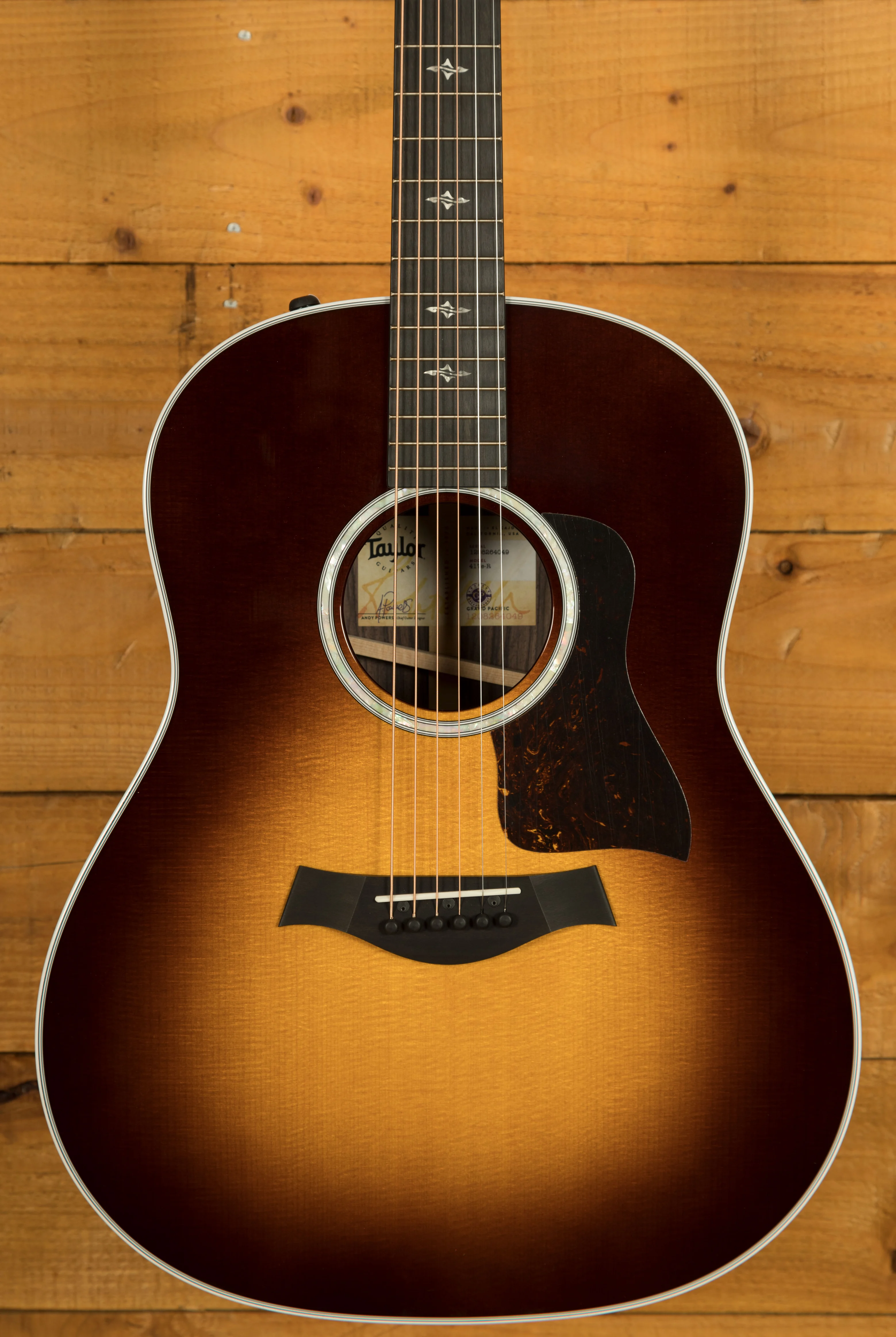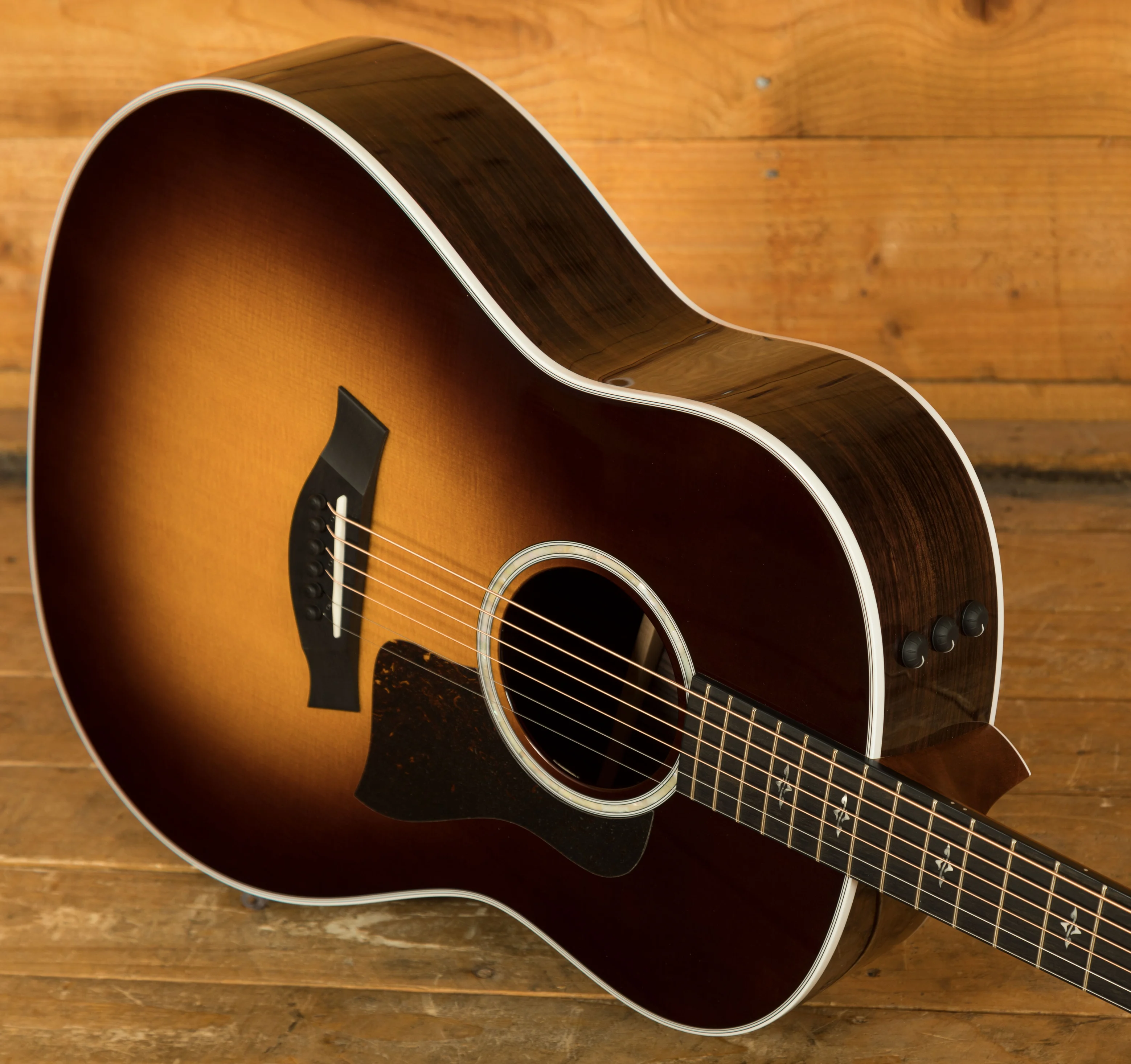 With its warm sonic character and lush, blooming overtones, the rosewood/spruce tonewood combination is the perfect match for the Grand Pacific dreadnought body shape. In the 417e, that pairing serves up a seasoned, blended response with clear low-end power, pristine trebles and a slightly scooped midrange - perfect for everything from songwriting to ensemble play to recording. Taylor's V-Class bracing design adds more volume and longer sustain, and the built-in ES2 electronics ensure clear, authentic tone whenever you need to plug in. Aesthetic details include a sunburst top finish and new Finial inlays. The 417e ships in a deluxe hardshell case.