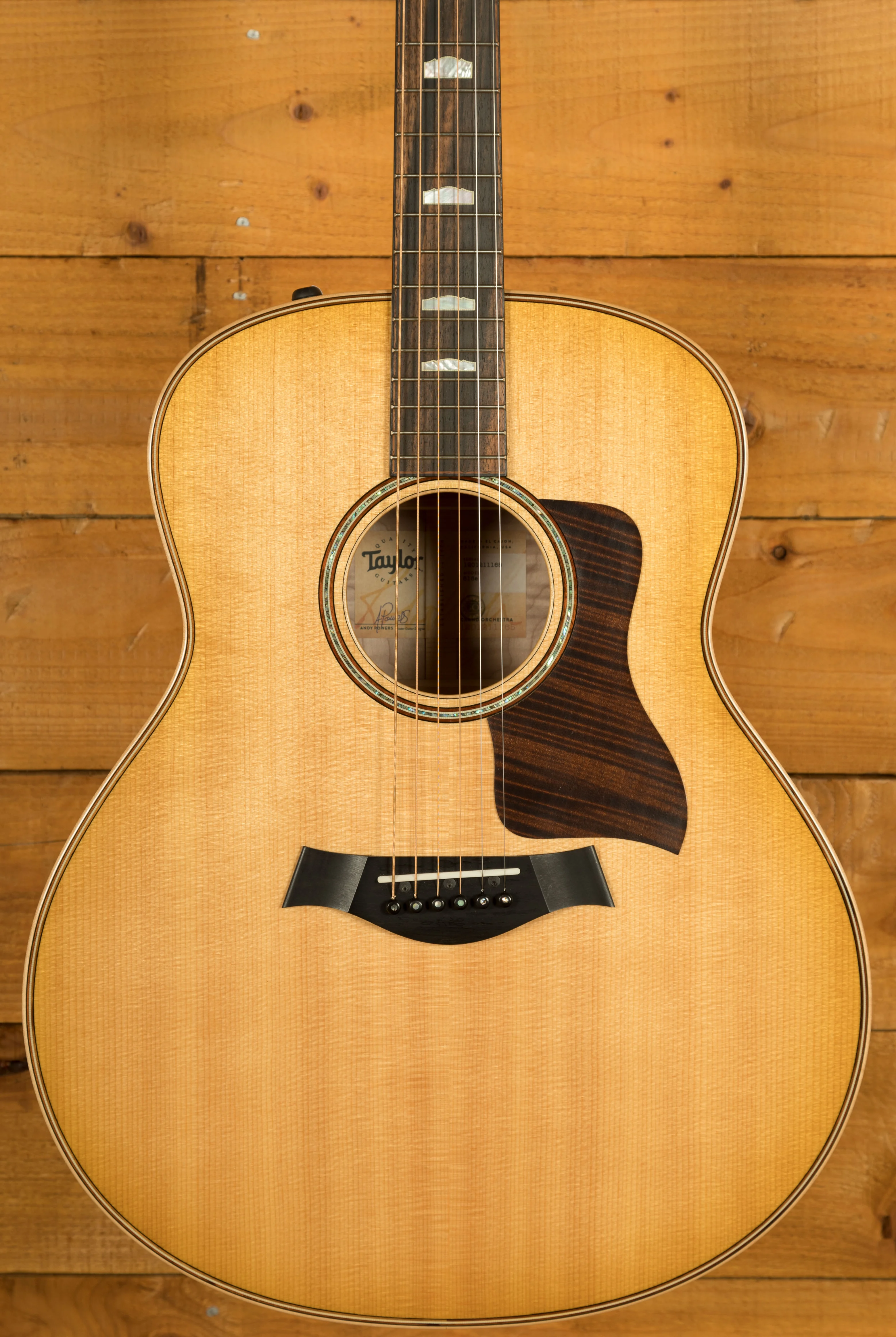 Experience the commanding voice and stunning aesthetics of this Taylor 618e, a Grand Orchestra acoustic-electric guitar that delivers unparalleled power and warmth. Crafted with Taylor's innovative V-Class bracing, this instrument offers increased volume, sustain, and improved intonation, ensuring every note rings out with clarity and presence. This particular 618e, made in El Cajon, California, USA, in January 2021, is in very good condition overall. It showcases the beauty of its figured maple construction, displaying some typical signs of wear such as light scratches on the pickguard and other minor surface marks, but notably, there are no major dings. These cosmetic imperfections are characteristic of a played instrument and do not affect its remarkable sound or structural integrity.