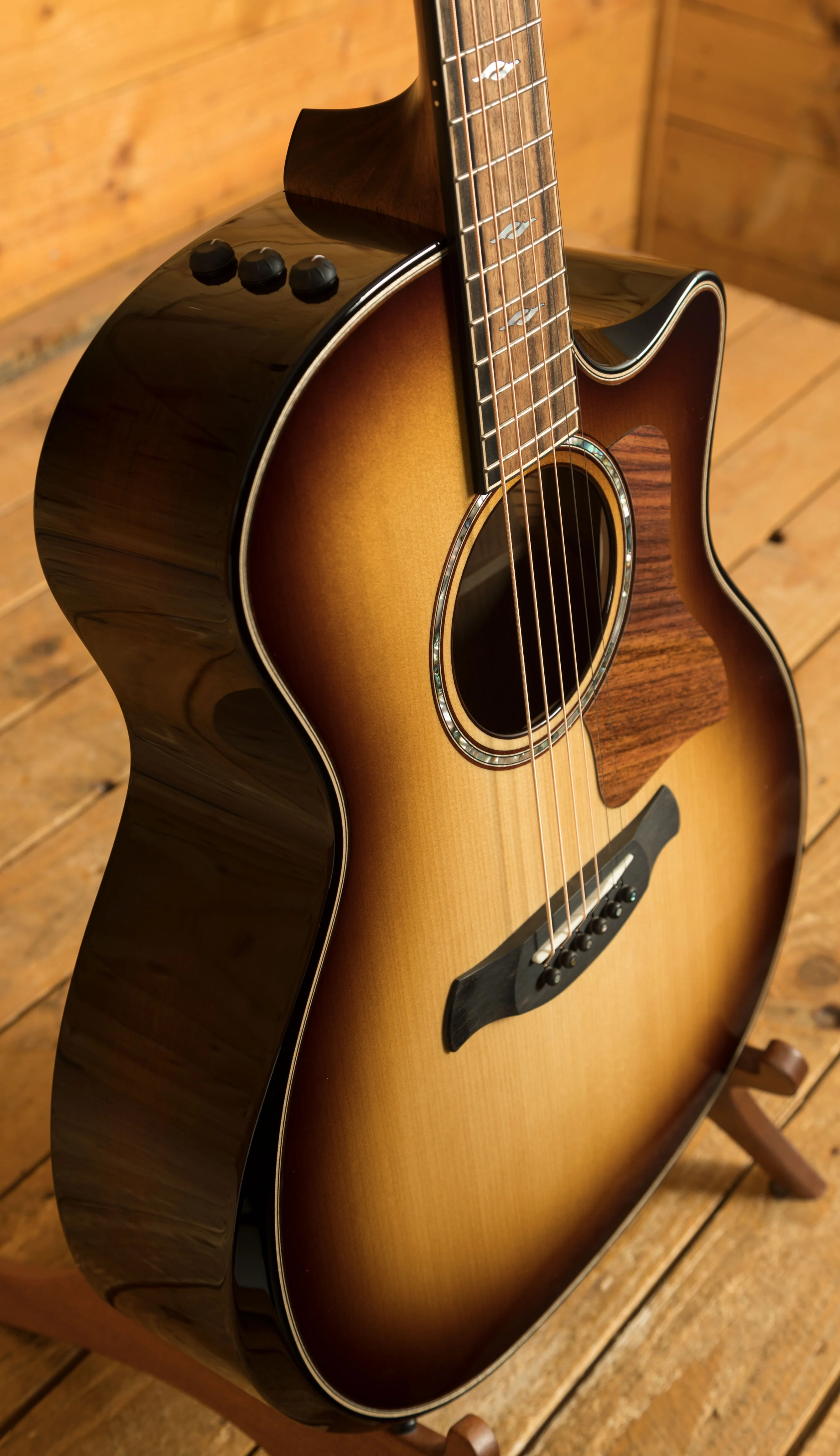 The Taylor Builder's Edition 814ce represents a culmination of Taylor's guitar-making expertise, blending premium tonewoods, innovative design, and meticulous craftsmanship. This Grand Auditorium electro-acoustic guitar is designed for players seeking a versatile instrument with exceptional tone, comfort, and playability.