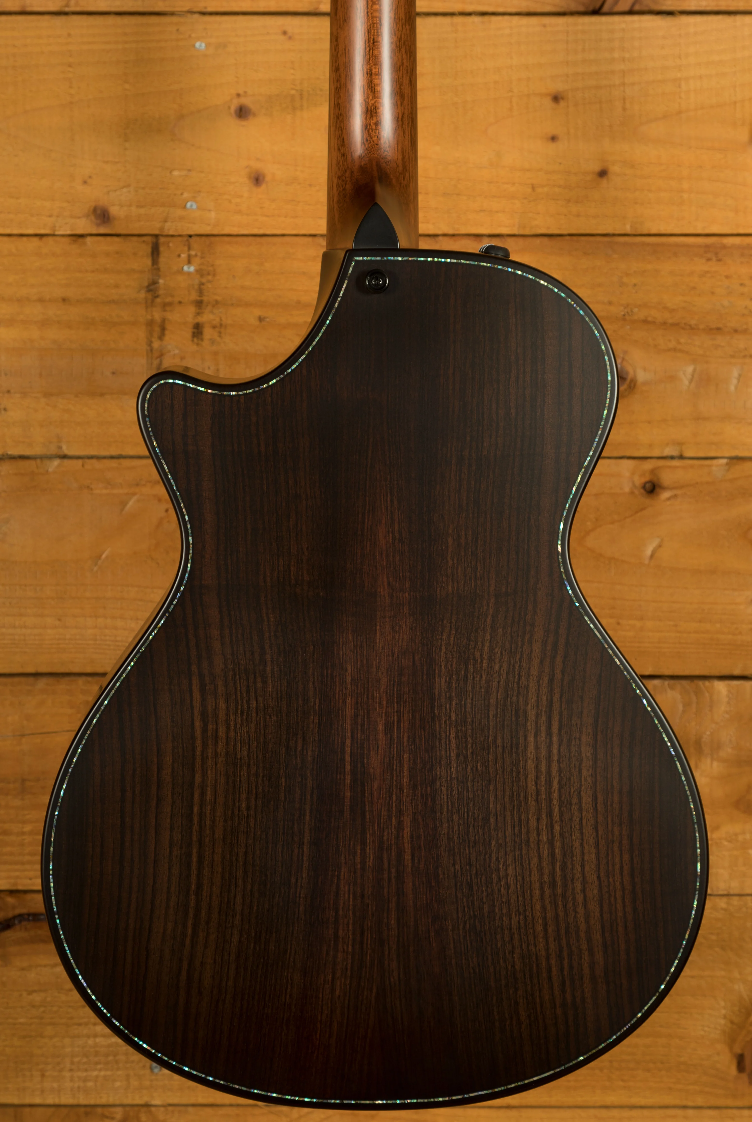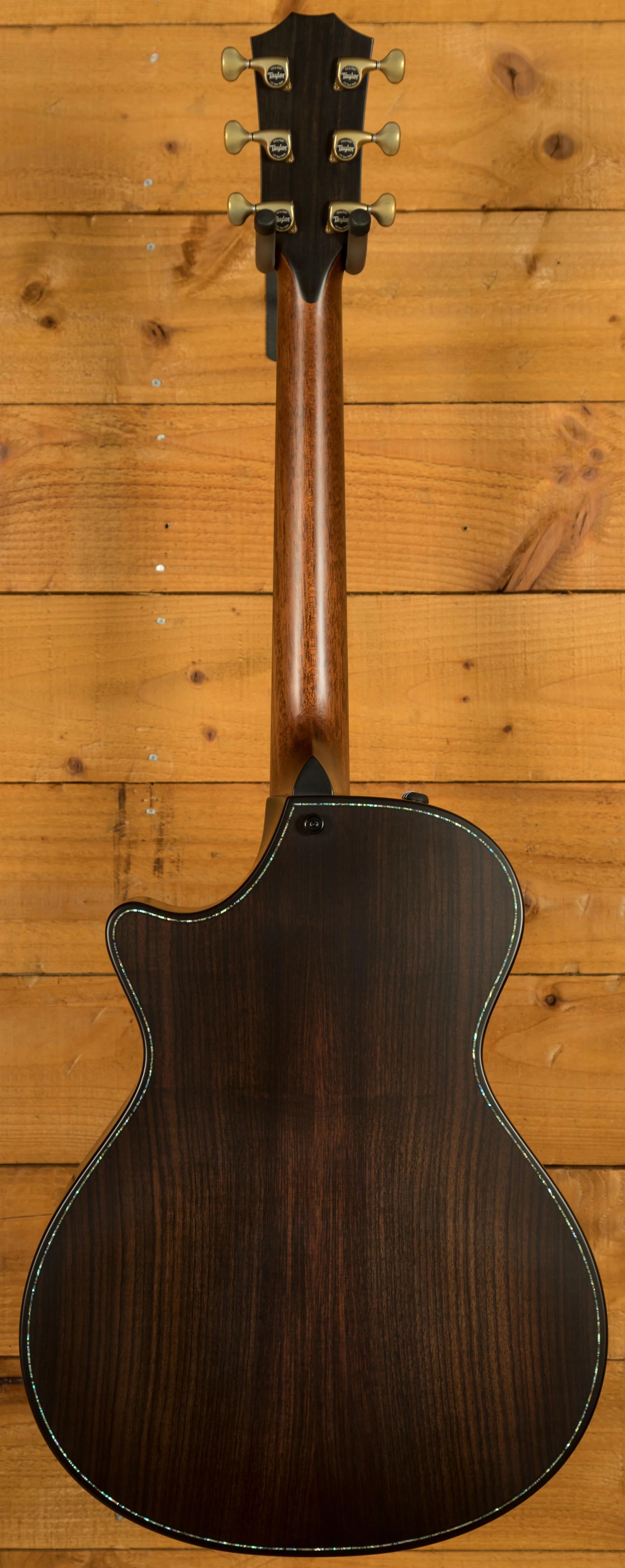 Bevelled Cutaway - Taylor's bevelled cutaway design provides a more player-friendly feel for guitarists who utilise every inch of the fretboard. It features a compound design with a smoothened edge along the corner of the body between the end of the cutaway and the neck heel, providing a more comfortable feel for the fretting hand.