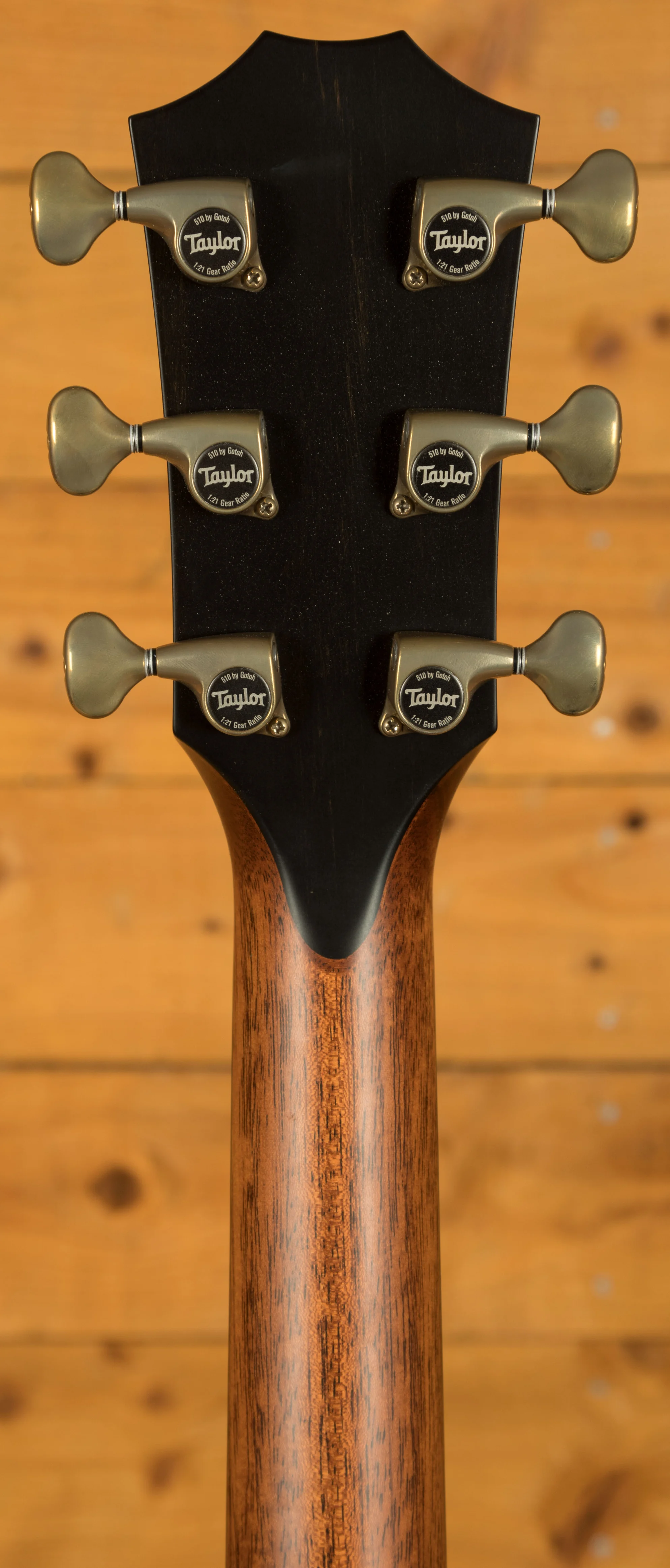 The Grand Concert body shape is Taylor's smallest full-size body, offering a comfortable playing experience, especially for fingerstyle guitarists. Its compact dimensions and tapered waist minimise overtones, resulting in a focused and articulate sound ideal for both recording and live performance. The shorter 24-7/8-inch scale length and lighter string tension further enhance playability, making complex fingerings easier to execute. This body shape's history is rooted in serving the needs of fingerstyle players who needed clarity and balance, making it a favourite for studio work and performing with bands.