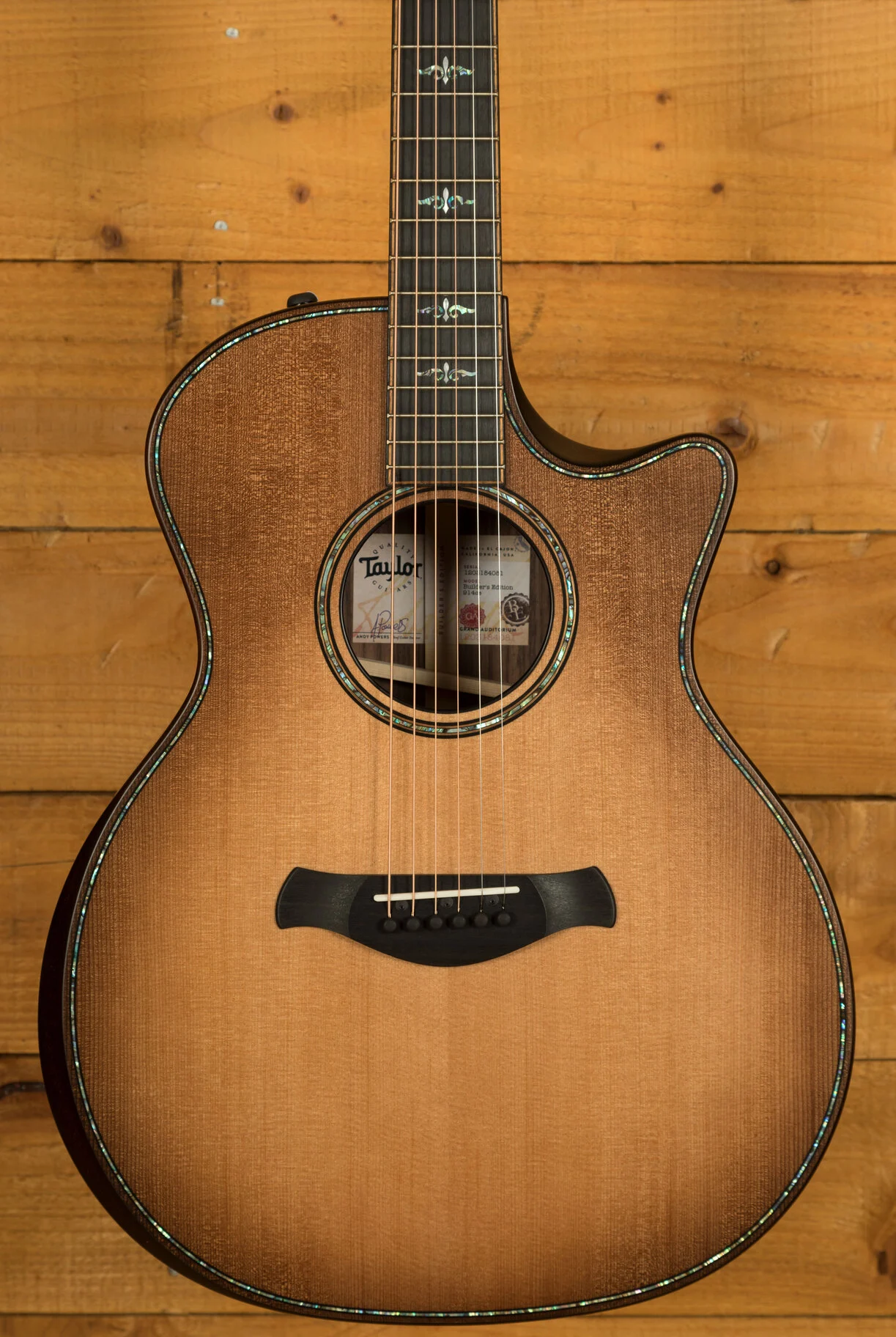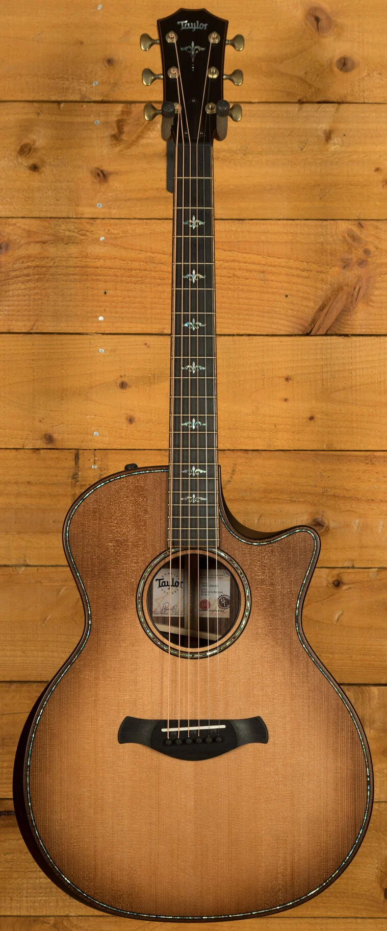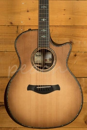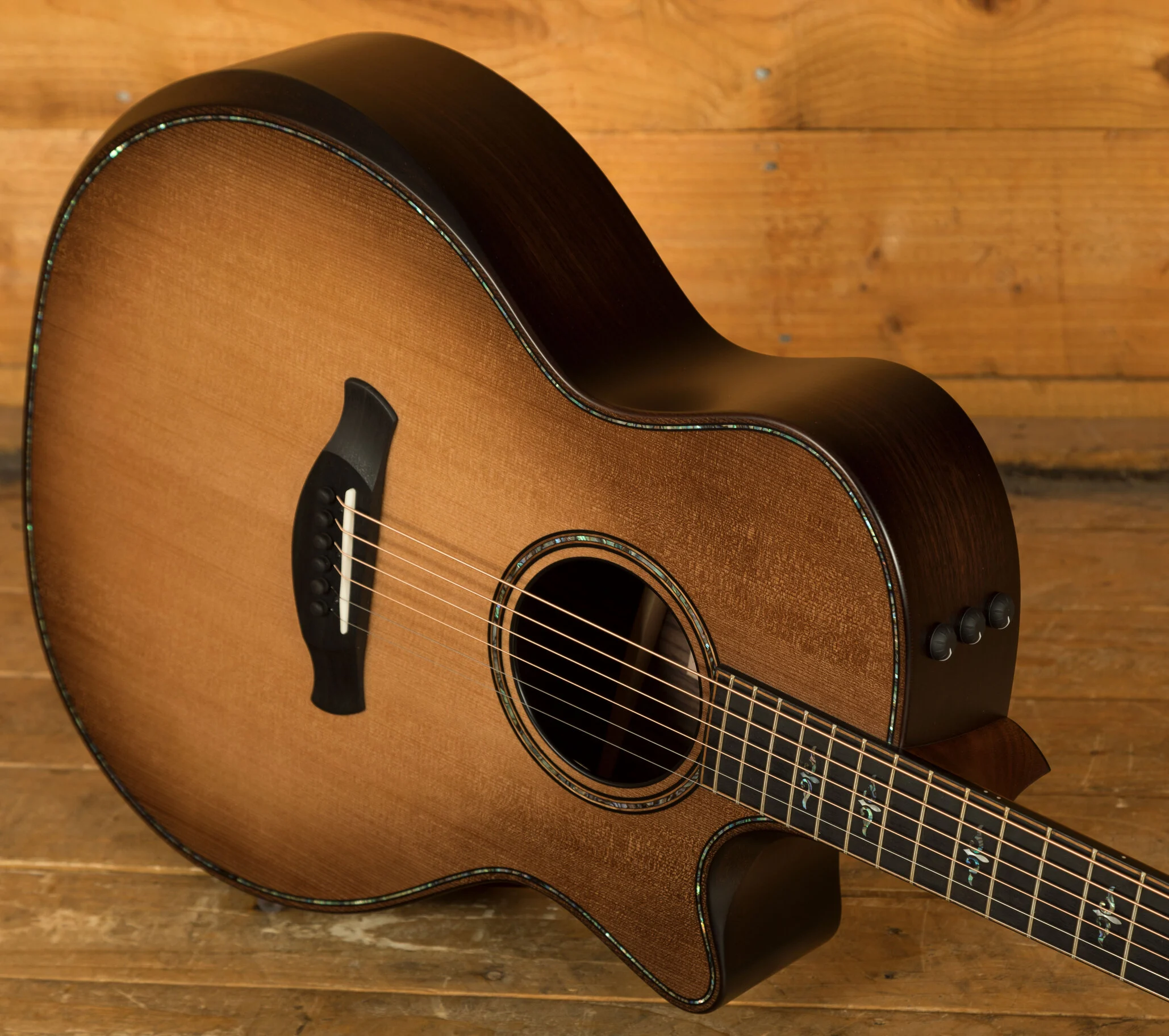 The Taylor Builder's Edition 914ce WHB is a premium electro-acoustc guitar designed for discerning players seeking a versatile and high-quality instrument. This Grand Auditorium body shape guitar blends solid tonewood construction, comfortable design elements, and advanced electronics to deliver a rich, balanced tone suitable for a variety of playing styles.