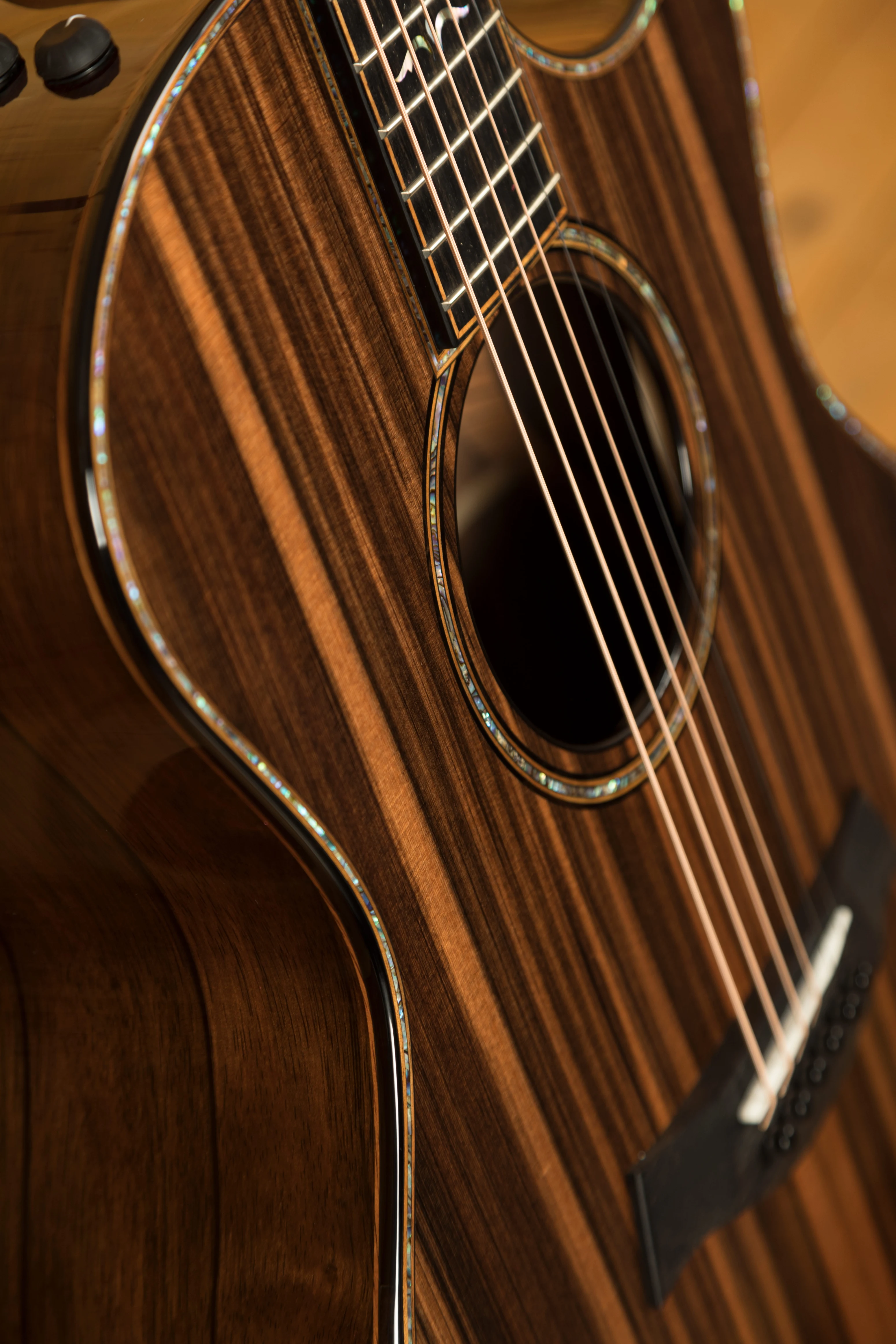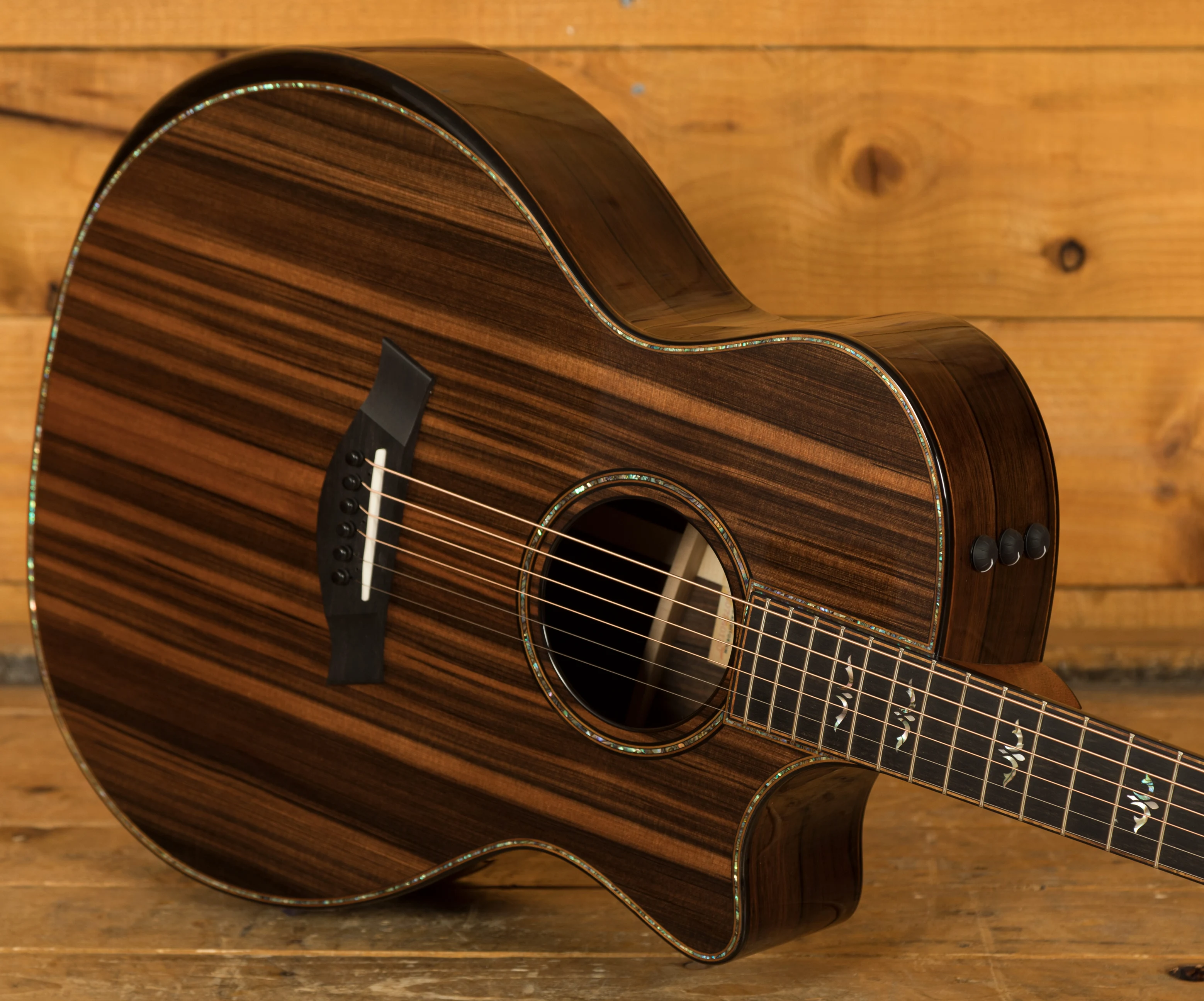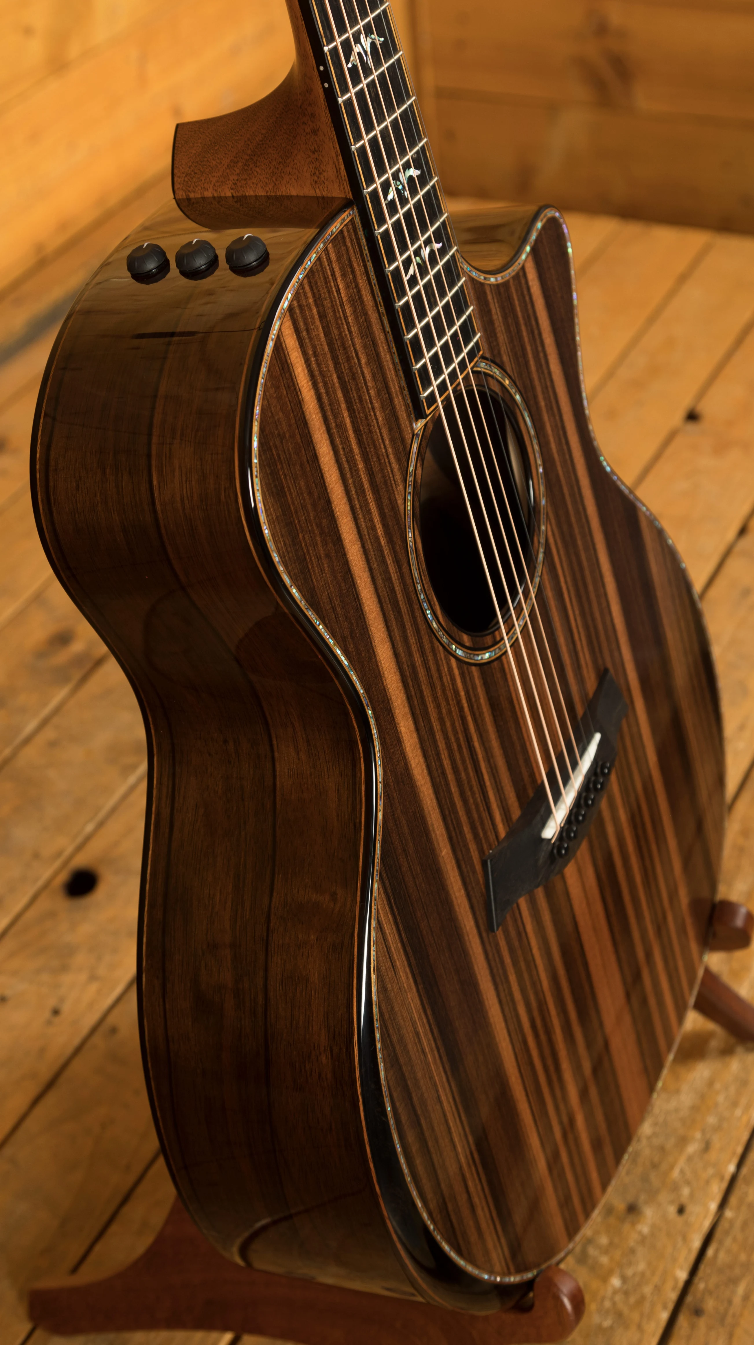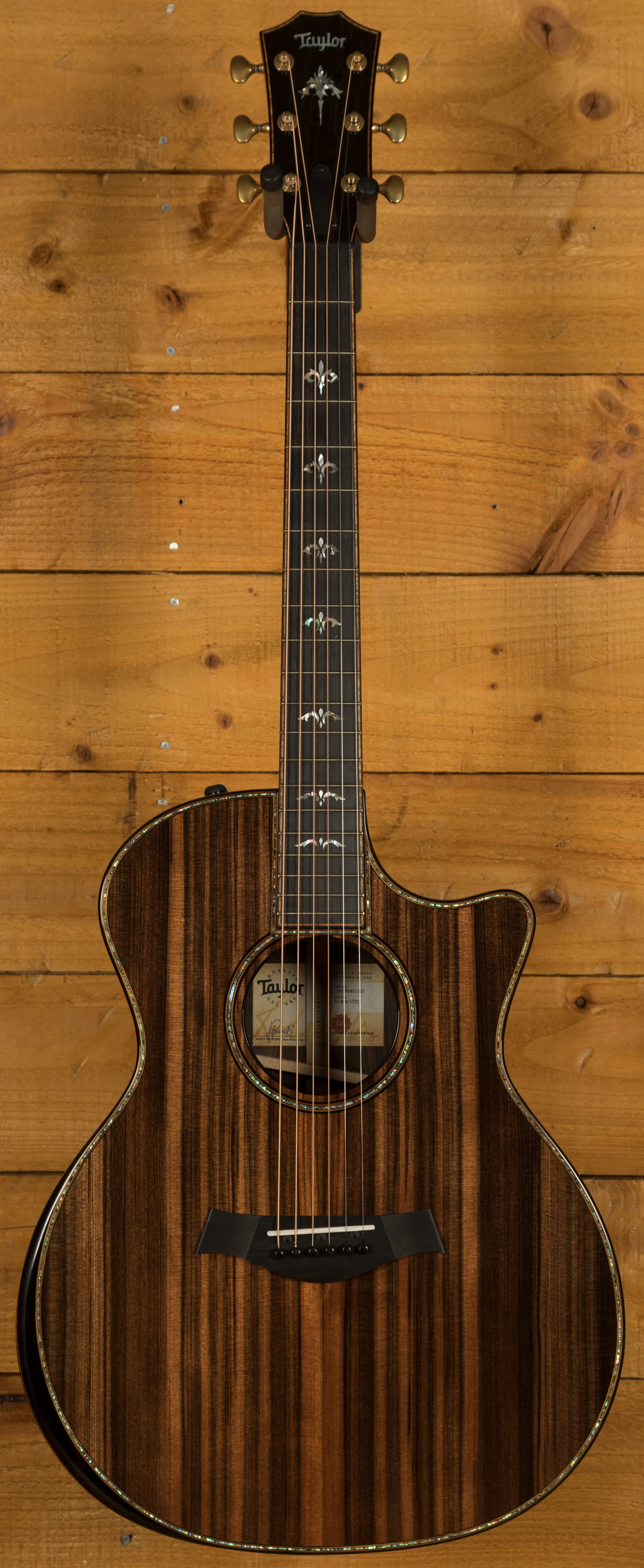 During a recent wood organisation project, Taylor discovered 100 sets of incredible Macassar Ebony, and what better use for them than 2 special and highly limited high end models. There are only 50 of this model in the world and just 3 for the UK!