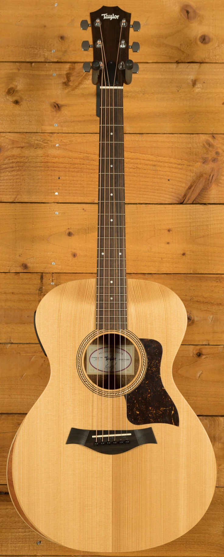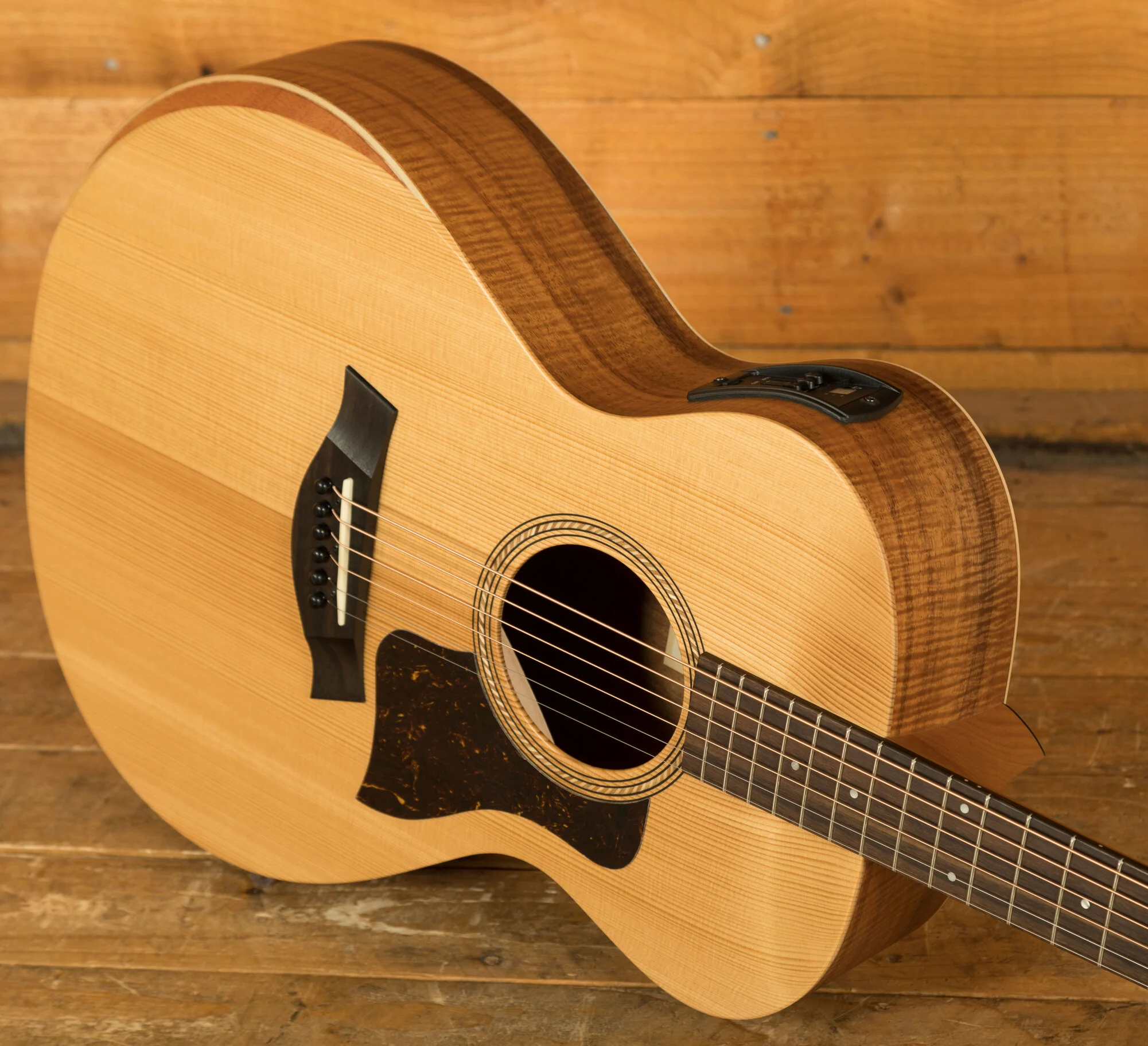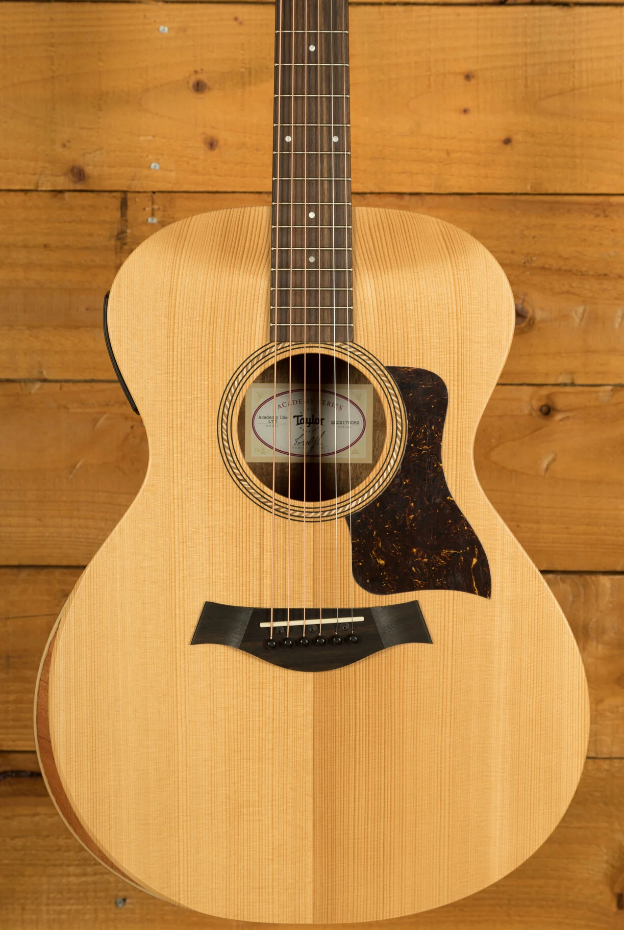 With its layered AA-grade figured Hawaiian koa back and sides, the Academy 12e LTD stands out as one of the most visually stunning Academy models to date. This eye-catching, limited-edition Grand Concert offers an intimate feel and clear, responsive sound. A solid torrefied spruce top contributes a beautifully balanced voice with crisp articulation and played-in warmth from day one. A slender Taylor neck, light-gauge strings and a 24-7/8" scale length provide a slinky handfeel that makes it easier to level up your skills. The slightly narrower 1-11/16" nut width offers more relaxed fretting, while a carved armrest enhances comfort for your strumming arm. Onboard ES-B electronics with a built-in tuner ensure natural amplified acoustic tones whether you're performing on stage, recording in the studio or playing at home. The Academy 12e LTD, which comes in a soft gig bag, is a great option for players who crave a visually striking guitar that delivers an incredibly comfortable playing experience.