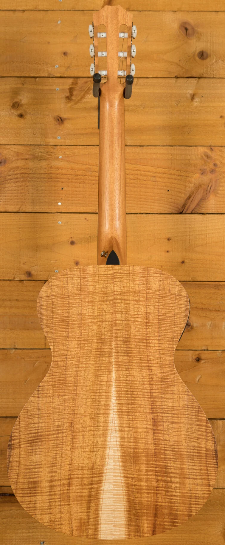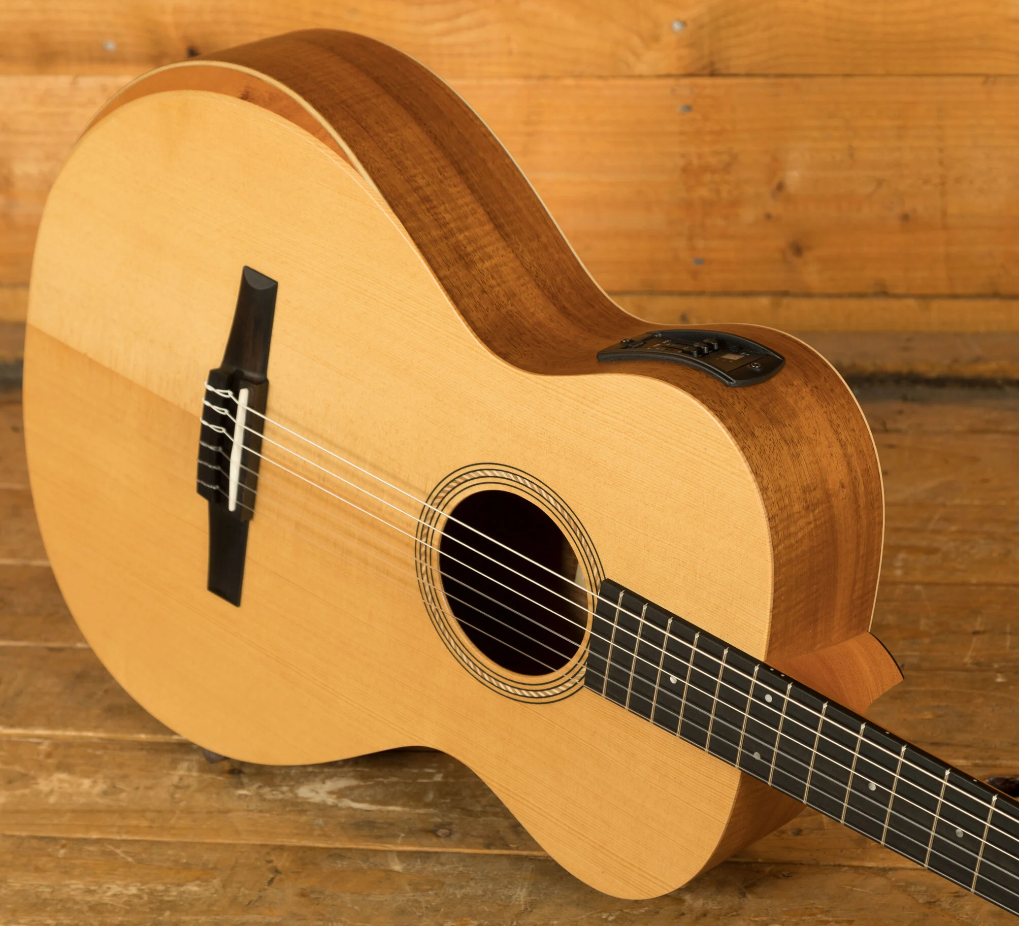 This limited-edition nylon-string guitar is ideal for musicians who want an easy-playing, great-looking, price-accessible instrument that will enrich their sound with inspiring neo-classical textures. The Academy 12e-N LTD serves up warm, snappy nylon-string flavours, head-turning visuals and a remarkably comfortable playing experience that encourages guitarists to develop their skills over extended playing sessions. Its layered AA-grade figured Hawaiian koa back and sides - boasting dramatically figured grain patterns - are paired with a solid torrefied spruce top in a Grand Concert body, yielding a mellow voice with a played-in personality, thanks to a special roasting recipe for the soundboard. A 25-1/2" scale length and 1-7/8" nut width provide ample space for fingerstyle techniques, while a slim Taylor neck and carved armrest ensure an ultra-smooth playing experience. Outfitted with an ES-B Nylon pickup system featuring a built-in digital tuner, the Academy 12e-N LTD ships in a soft gig bag for easy transport.