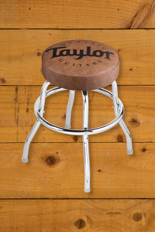 The Taylor Bar Stool is ready to keep you comfortable while you make music. The classic design features a comfortable padded swivel seat in a marbled brown matte vinyl finish with a black Taylor logo. At 24" high, the Taylor Bar Stool is easy to assemble and comes with an added foot ring for maximum playing comfort. With the Taylor Bar Stool, you'll be ready for a house concert, even if it's just for an audience of one.