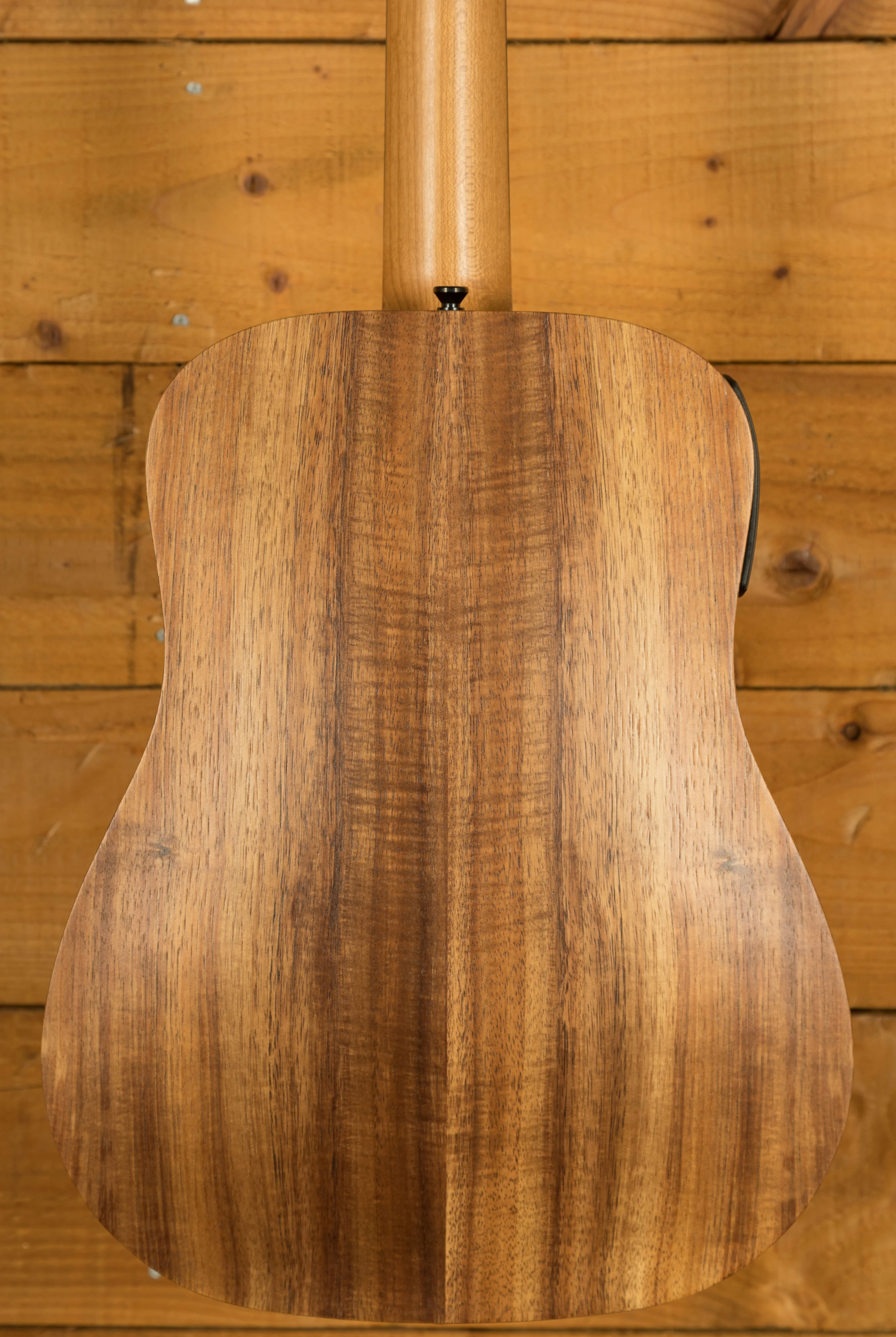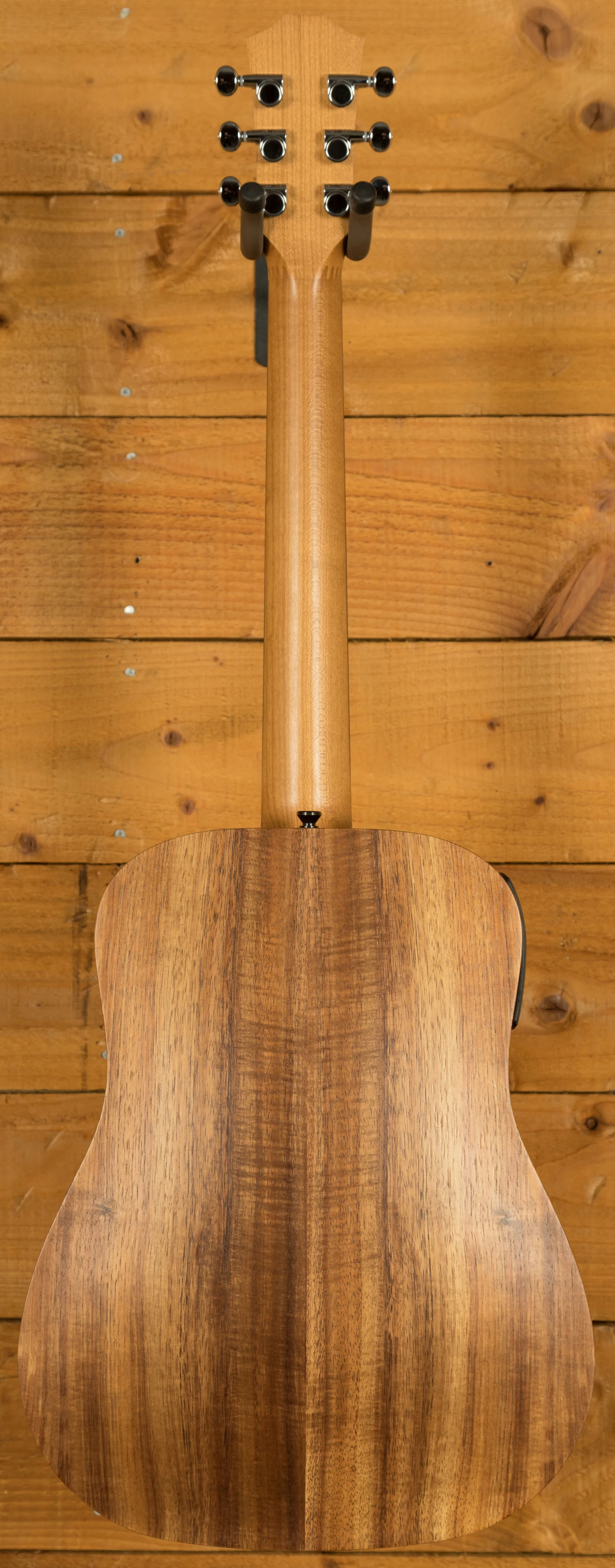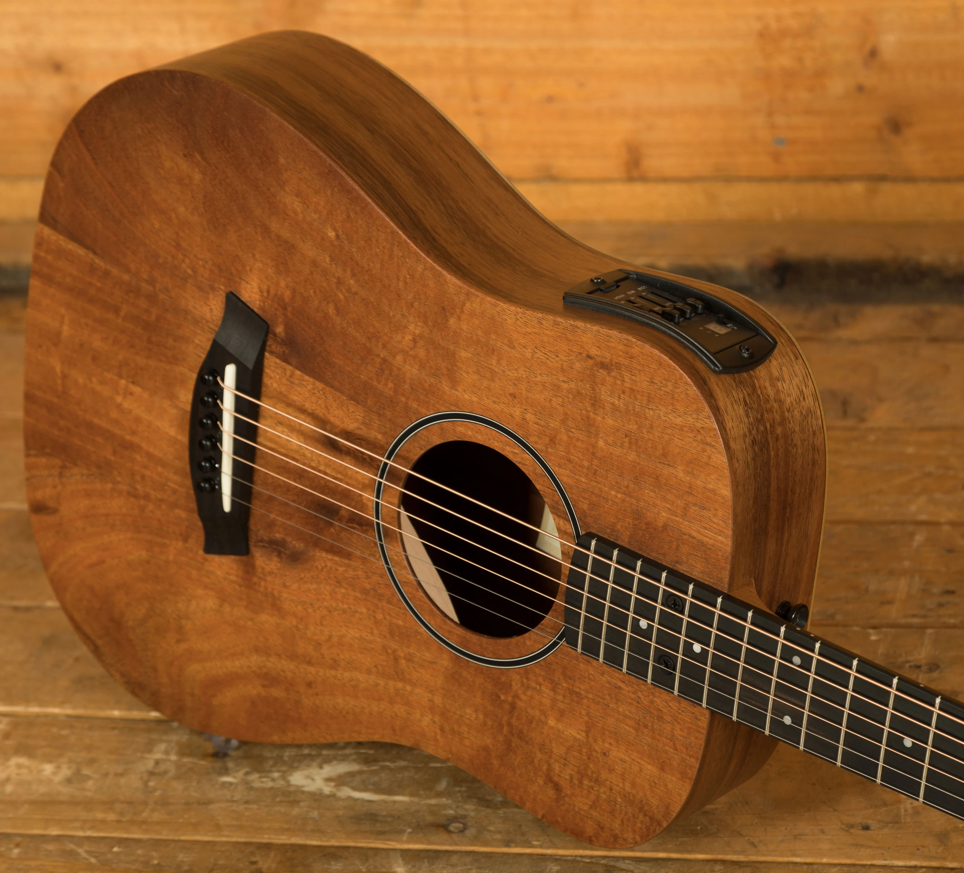 The Baby Taylor has always inspired new and experienced players alike with its compact size and tuneful sound, and this model (BTe-Koa) takes the design to the next level with all-Hawaiian-koa construction. The solid top serves up clear, vibrant acoustic tone with koa's distinctive sparkle, while the layered back and sides add a rich visual dimension thanks to koa's beautiful grain. This three-quarter-size acoustic guitar includes ES-B electronics with a handy digital tuner, and includes a lightweight gig bag, making it a perfect option for playing on the couch, jamming around the campfire or practising on the road.