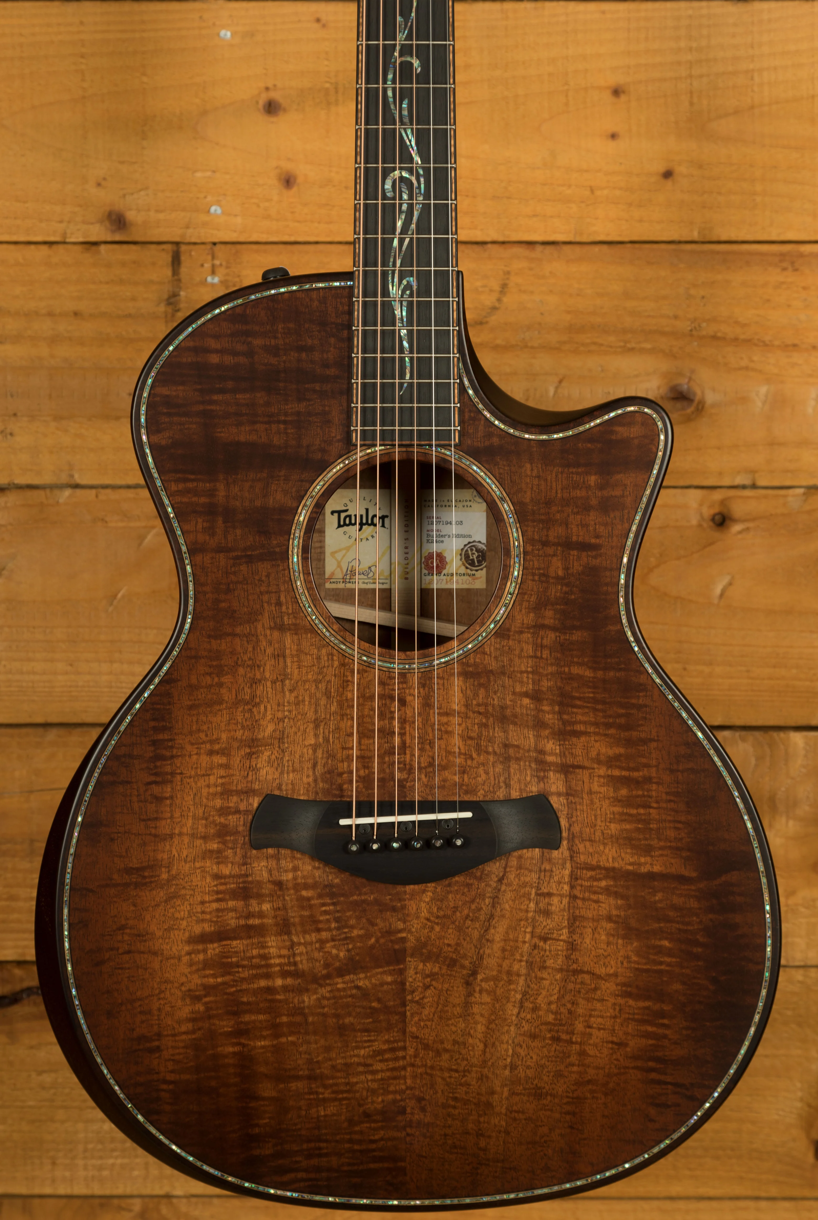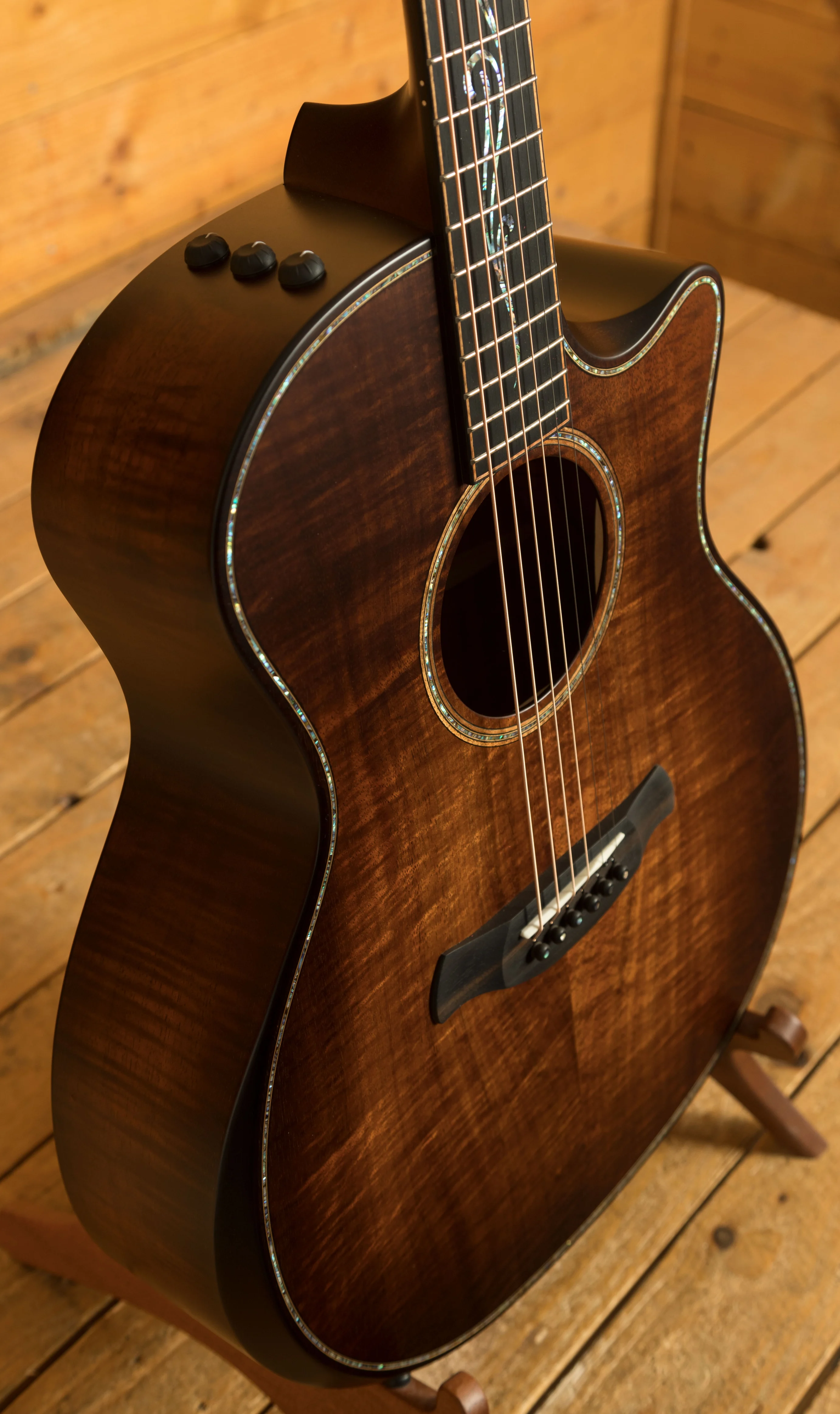 Crafted to deliver the ultimate playing experience, the Builder's Edition K24ce blends a refined, ergonomic playing experience with premium tonewoods and a textured, vibrant acoustic sound. Solid Hawaiian koa forms the back, sides and top of this Grand Auditorium acoustic-electric, generating a bold, articulate midrange with splashy refined trebles and warmth in the low end. Koa is also famous for its ageing properties, and will open up over time and play with greater depth and sweetness. V-Class bracing enhances the response with greater volume and longer sustain. A bevy of comfort features includes an armrest, bevelled cutaway, and chamfered body and fretboard edges, and the Silent Satin finish helps reduce incidental noise for recording situations.