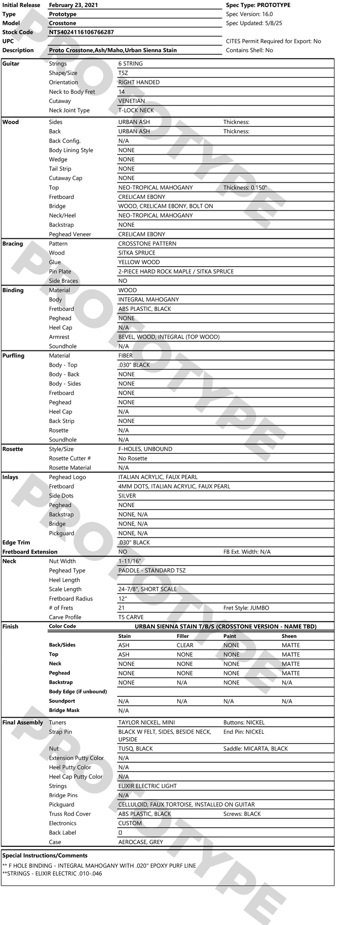 Playability is further enhanced by the 12" radius Crelicam Ebony fingerboard, 21 jumbo frets, and a 1 11/16" TUSQ nut. These specifications provide smooth fretting and easy string bends, making the guitar highly accessible for lead and rhythm work alike. The Micarta saddle and Crelicam Ebony bridge support accurate intonation and consistent tonal transfer, while Taylor tuners ensure reliable, precise tuning stability. Every detail of the Crosstone has been thoughtfully engineered to deliver a high-quality playing experience with innovative design heritage.