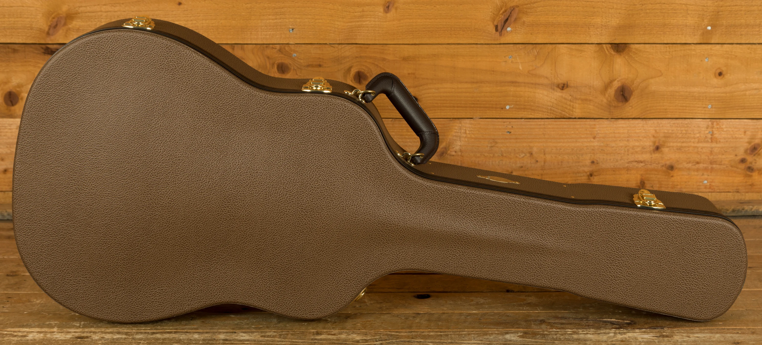 Appointments include a West African ebony fretboard, Honduran rosewood Curve Wing bridge, cream binding, and a firestripe pickguard with a unique shape. The Crest inlays and script-style Taylor logo on the modified headstock add a boutique touch. Plug in with confidence thanks to the LR Baggs Element VTC pickup, and carry it in style with the included British Cocoa deluxe hardshell case.