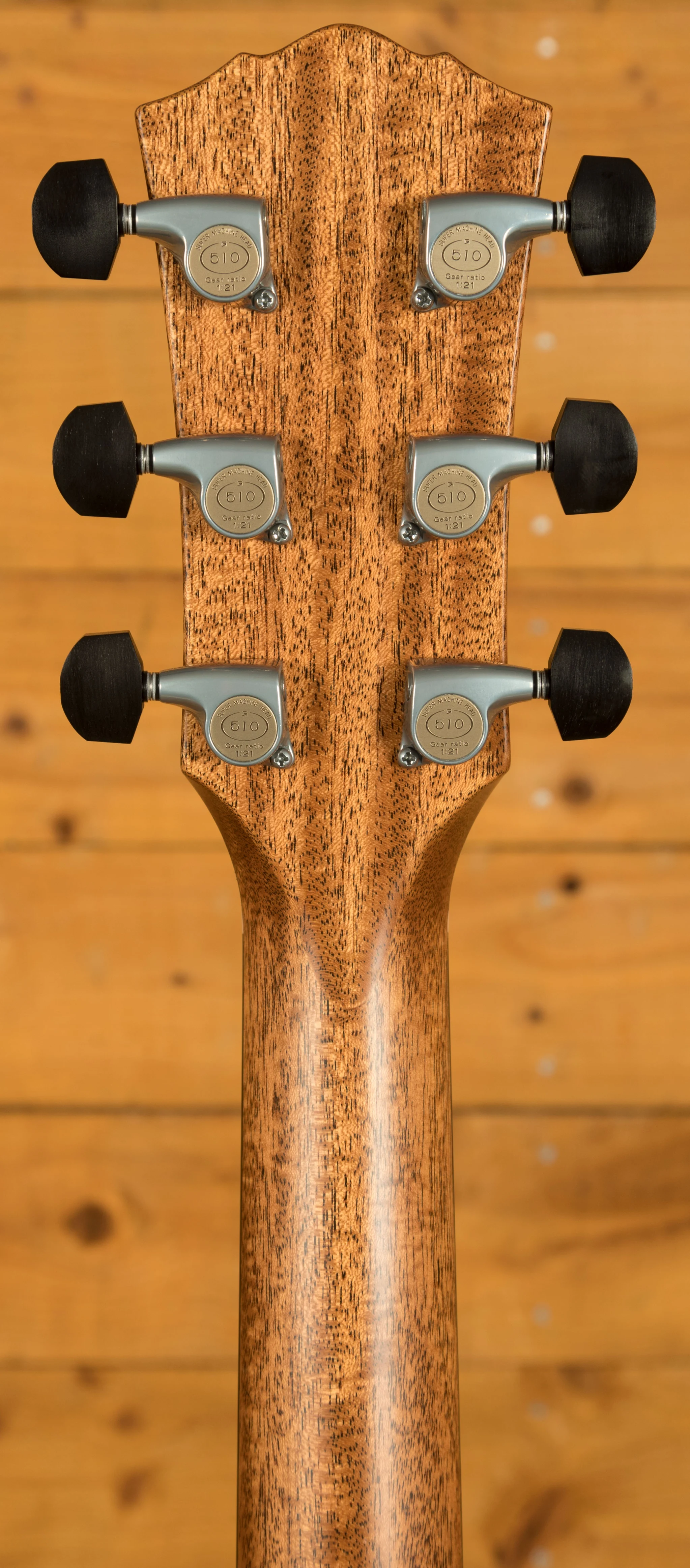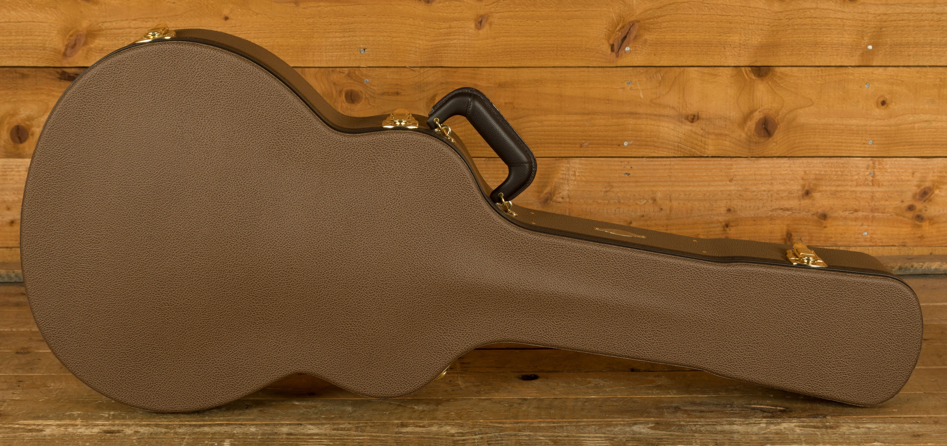 The 814e Koa-SB also shares the same distinctive aesthetic appointments as the other Gold Label models, including a redesigned headstock, a unique pickguard, a Honduran rosewood Curve Wing bridge with bone bridge pins, and elegant "Continental" inlays. The sunburst finish enhances the beauty of the koa wood grain.