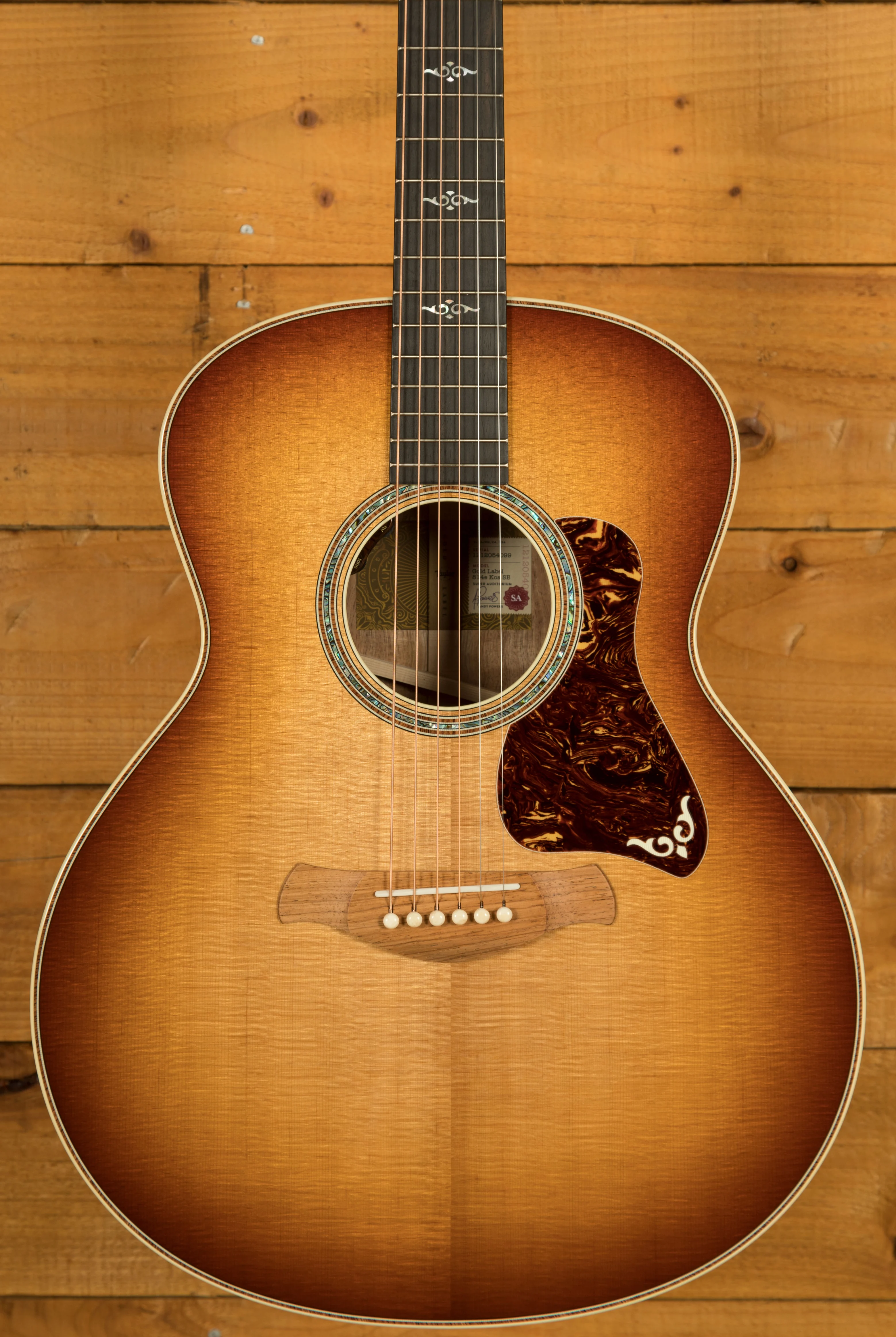 The Taylor 814e Koa-SB Sunburst Top is identical in its construction to the natural top Koa model, featuring figured Hawaiian koa back and sides and a torrefied Sitka spruce top. However, the addition of a sunburst finish gives this guitar a distinct visual appeal, evoking the classic aesthetics of vintage instruments.