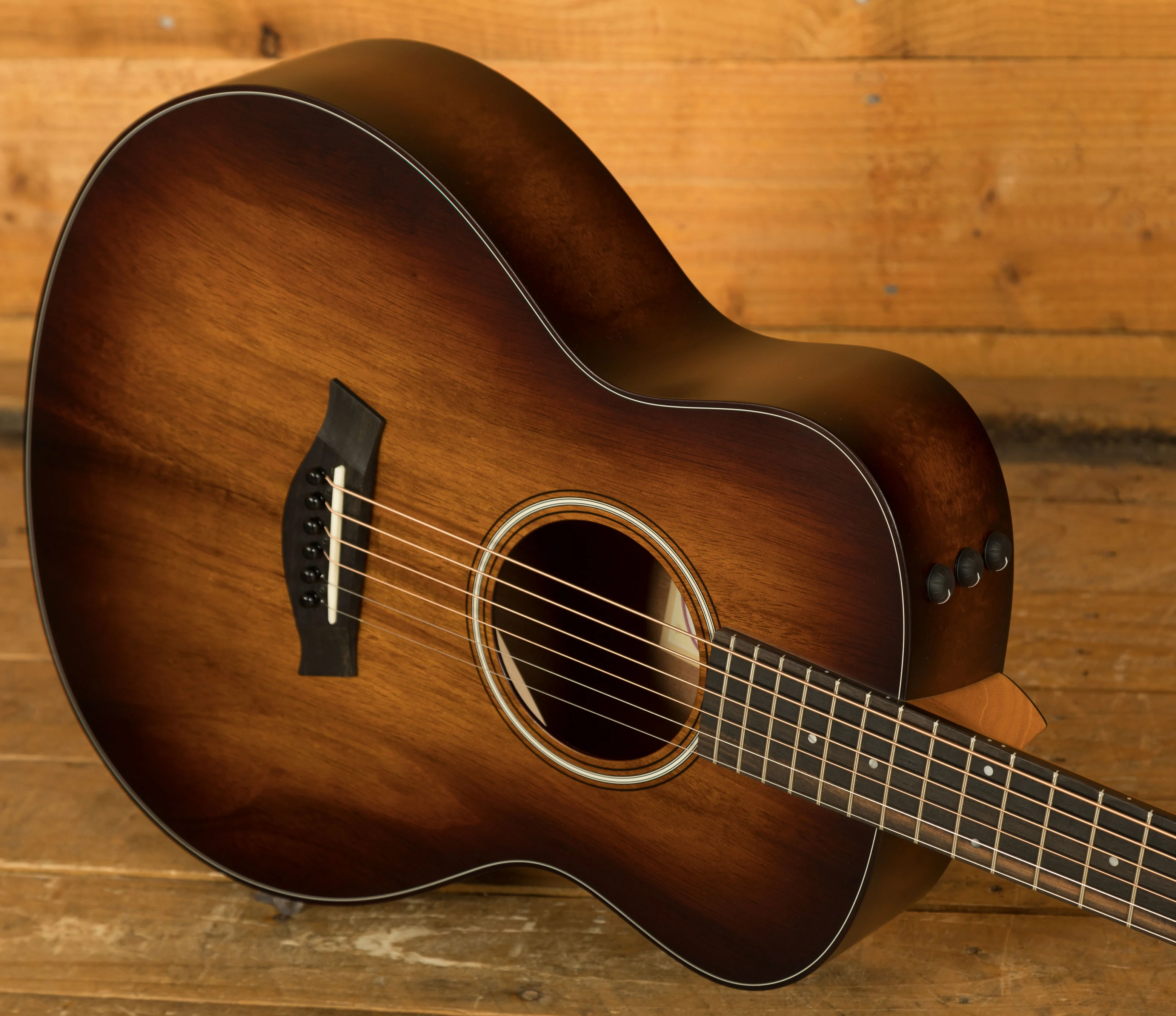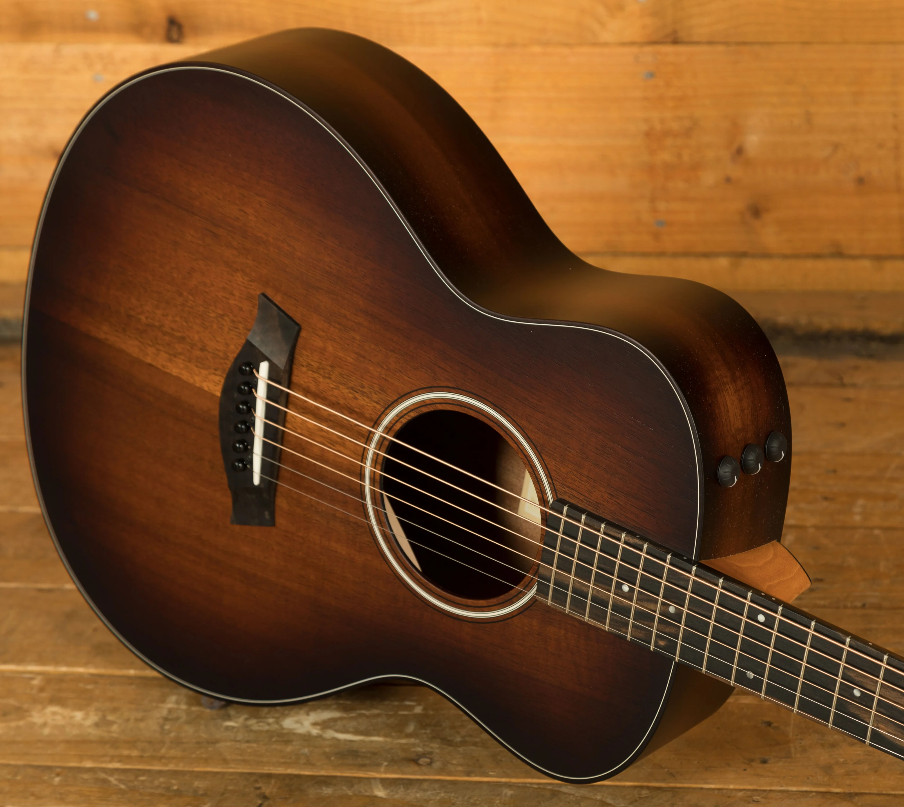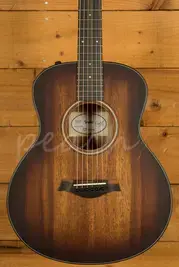 This gorgeous all-koa model elevates the popular scaled-back GS Mini design to new aesthetic heights. The GS Mini-e Koa Plus boasts a solid Hawaiian koa top with layered koa back and sides, serving up a vibrant, punchy tone with plenty of power despite its compact size. The Taylor neck adds another dimension of playing comfort with easy fretting for players of all skill levels, making it a great choice for virtually any musical scenario. An alluring matte finish treatment draws out koa's visual character, and ES2 electronics provide quick plug-and-play utility in amplified situations. The GS Mini-e Koa Plus ships with a durable AeroCase that's one-third the weight of a hardshell case.