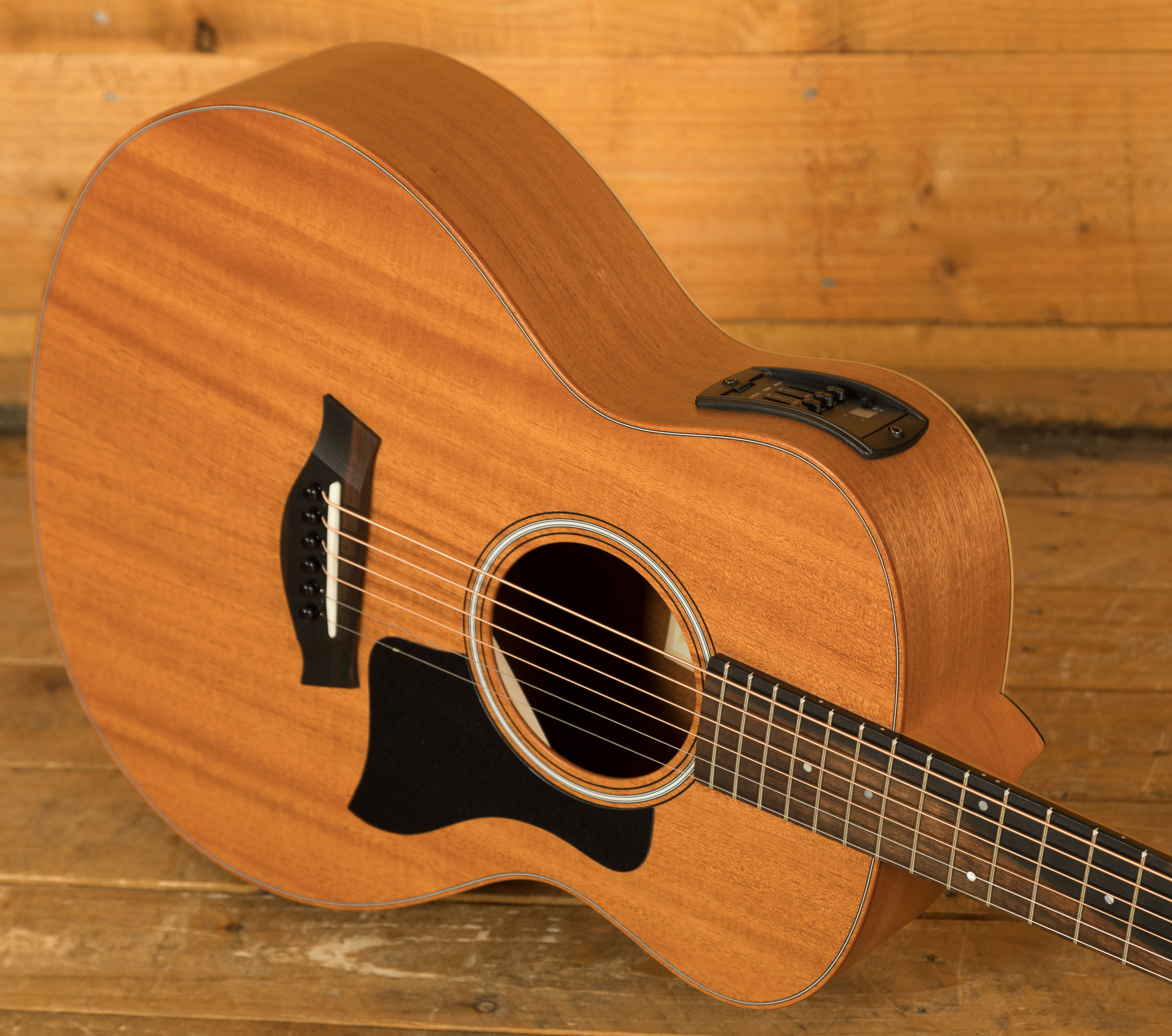 With its solid top, built-in pickup and digital tuner, and compact, player-friendly scale, the GS Mini-e Mahogany offers a portable musical experience that doesn't compromise on sound. This model features a solid mahogany top with layered sapele back and sides, resulting in a punchy midrange sound with enough projection to handle practice sessions, jams with friends and even live performance. With its spontaneous personality and relaxed feel, it's also a great choice for hashing out songwriting ideas and improving your skills. Whatever your musical direction, this GS Mini has a role to play.