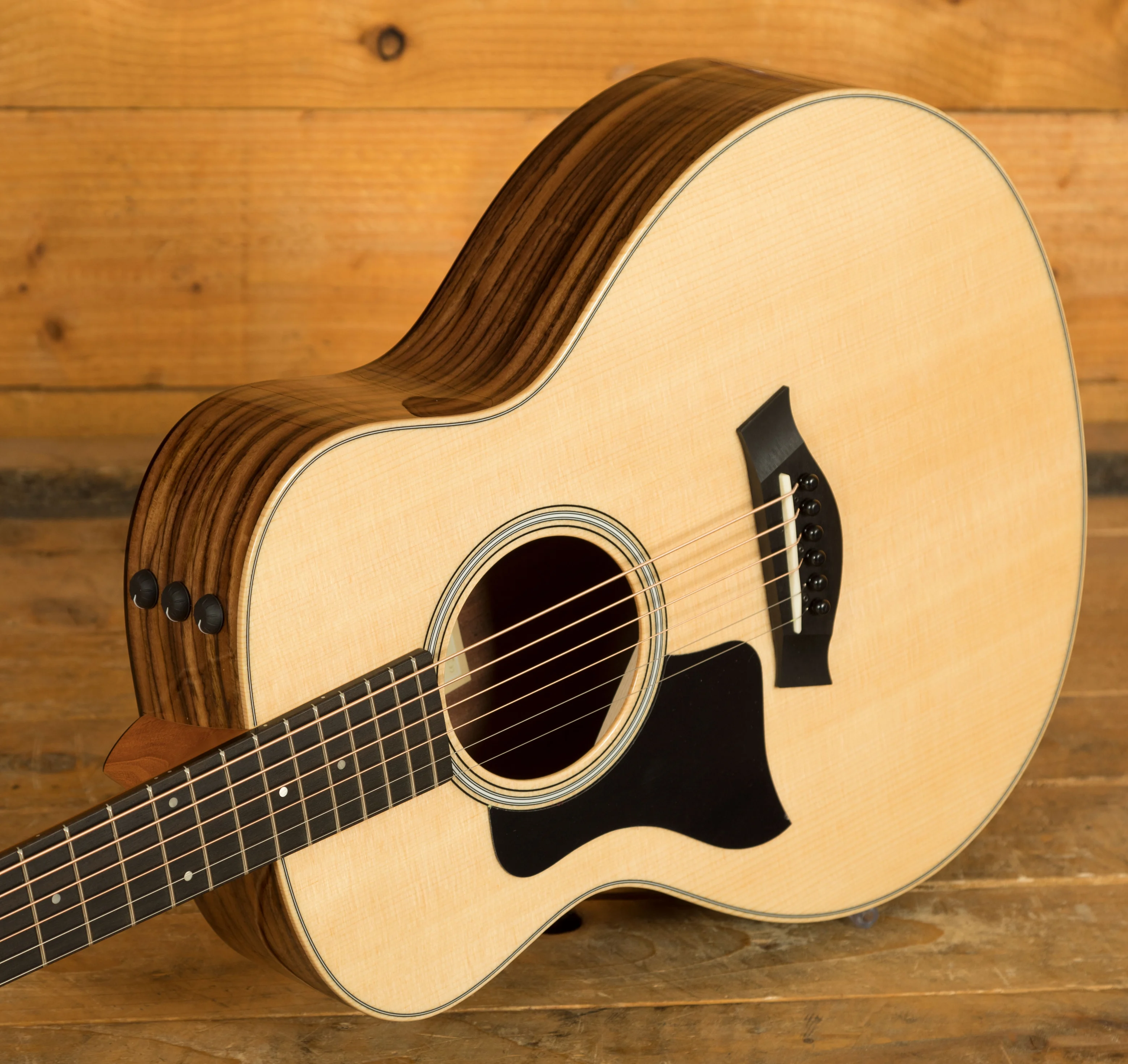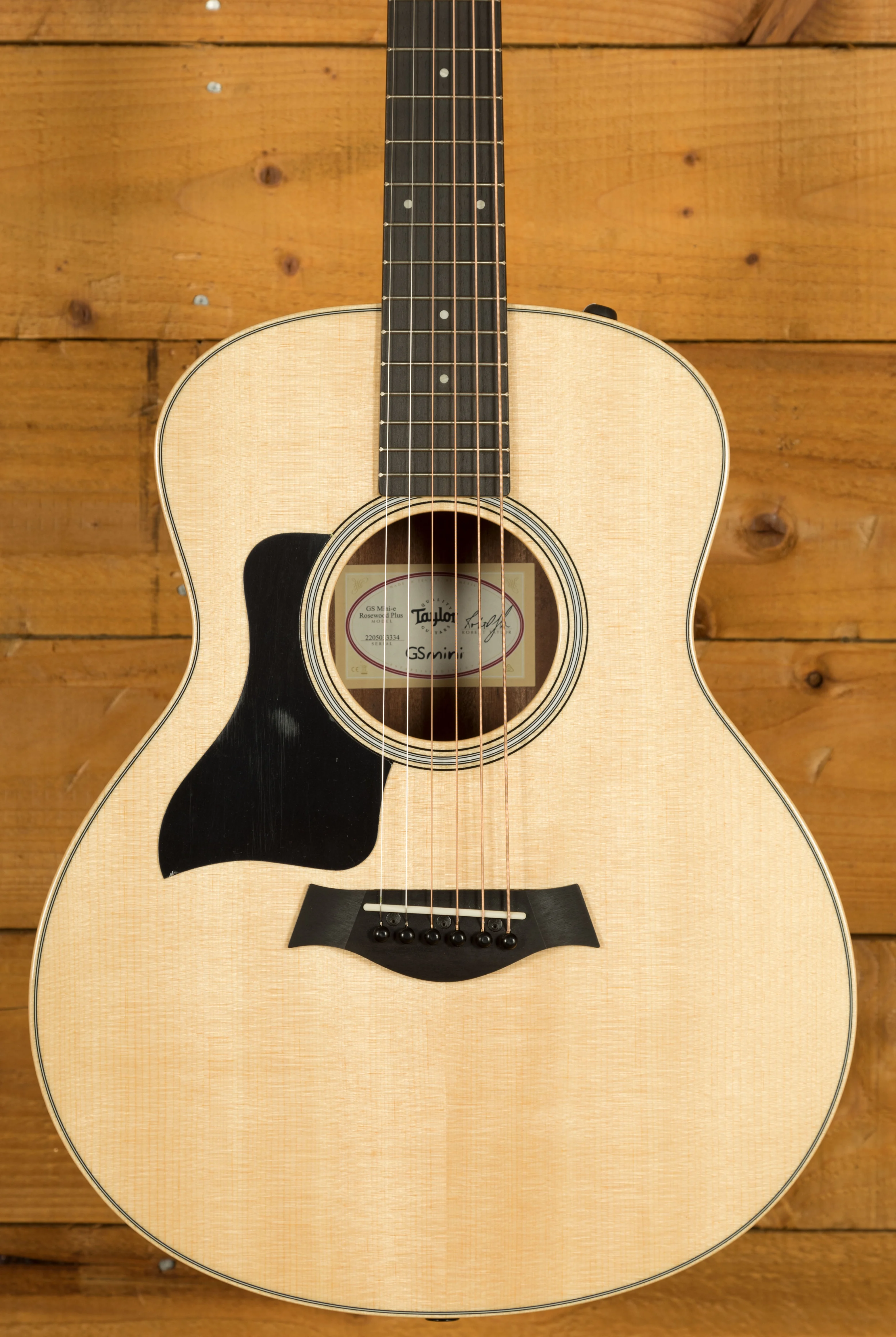 Featuring aesthetic and functional upgrades from its standard counterpart, the GS Mini-e Rosewood Plus offers an elevated take on Taylor's ultra-popular small-scale acoustic-electric guitar. Back and sides of layered rosewood are paired with a solid Sitka spruce top to produce a bold, punchy voice that performs beautifully across genres and playing styles, while its portable size makes it a great choice for everything from lessons and campfire jams to open mic nights. Upgraded ES2 electronics produce clean, organic live sound through an amplifier or PA, while the nickel tuners and a gloss-finish body elevate the visual appeal. The GS Mini-e Rosewood Plus ships with a brown AeroCase that's remarkably durable despite its light weight.