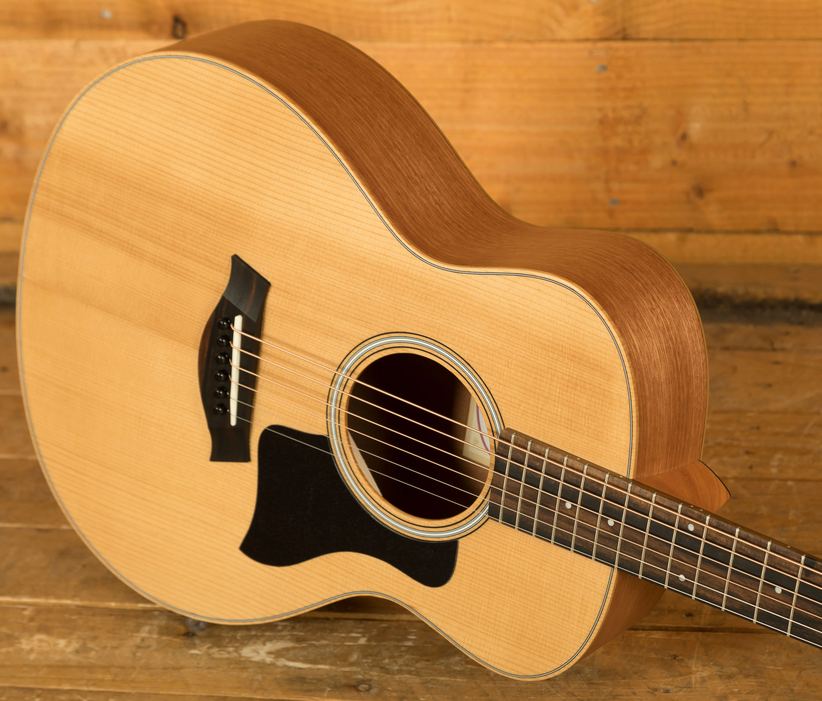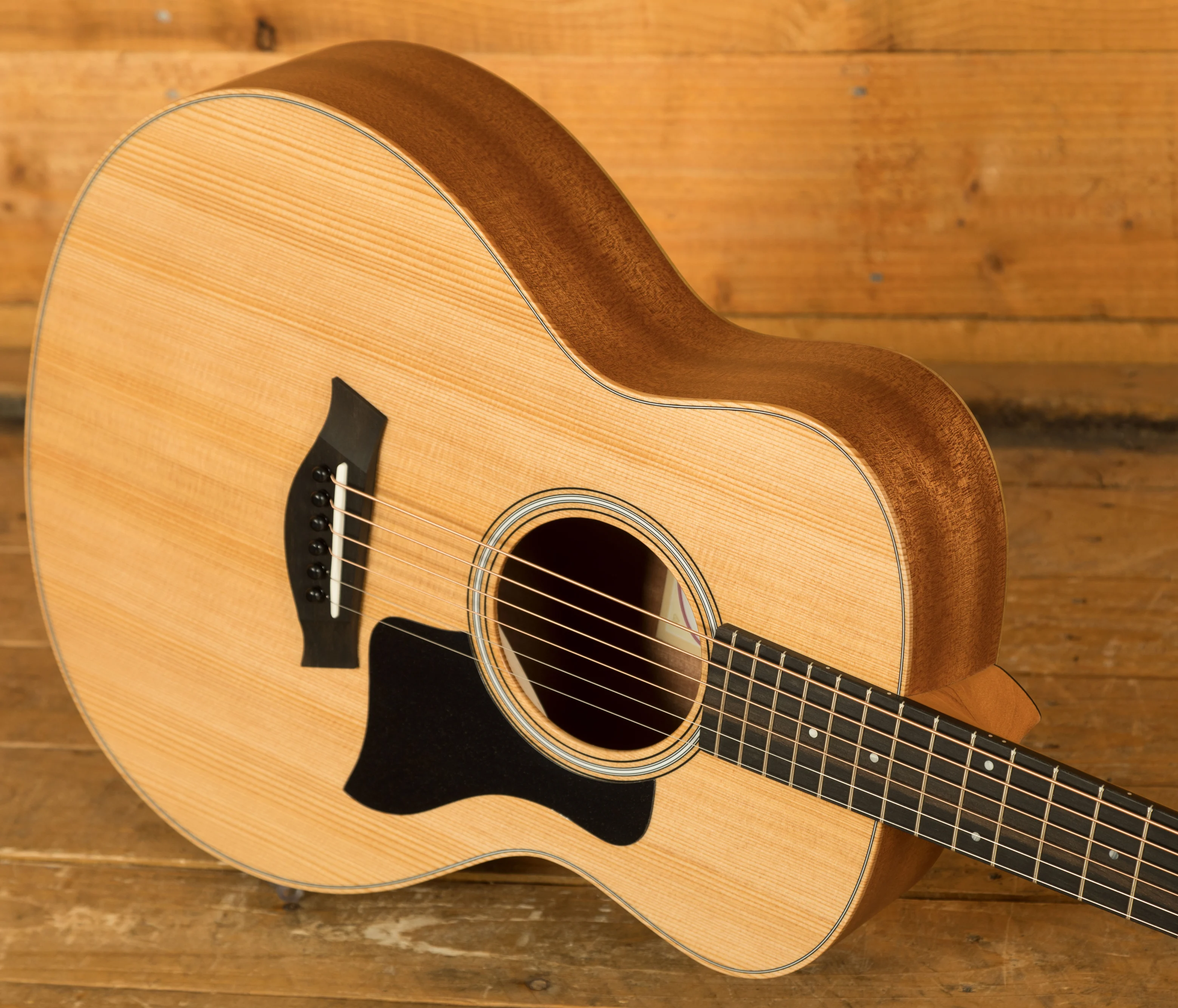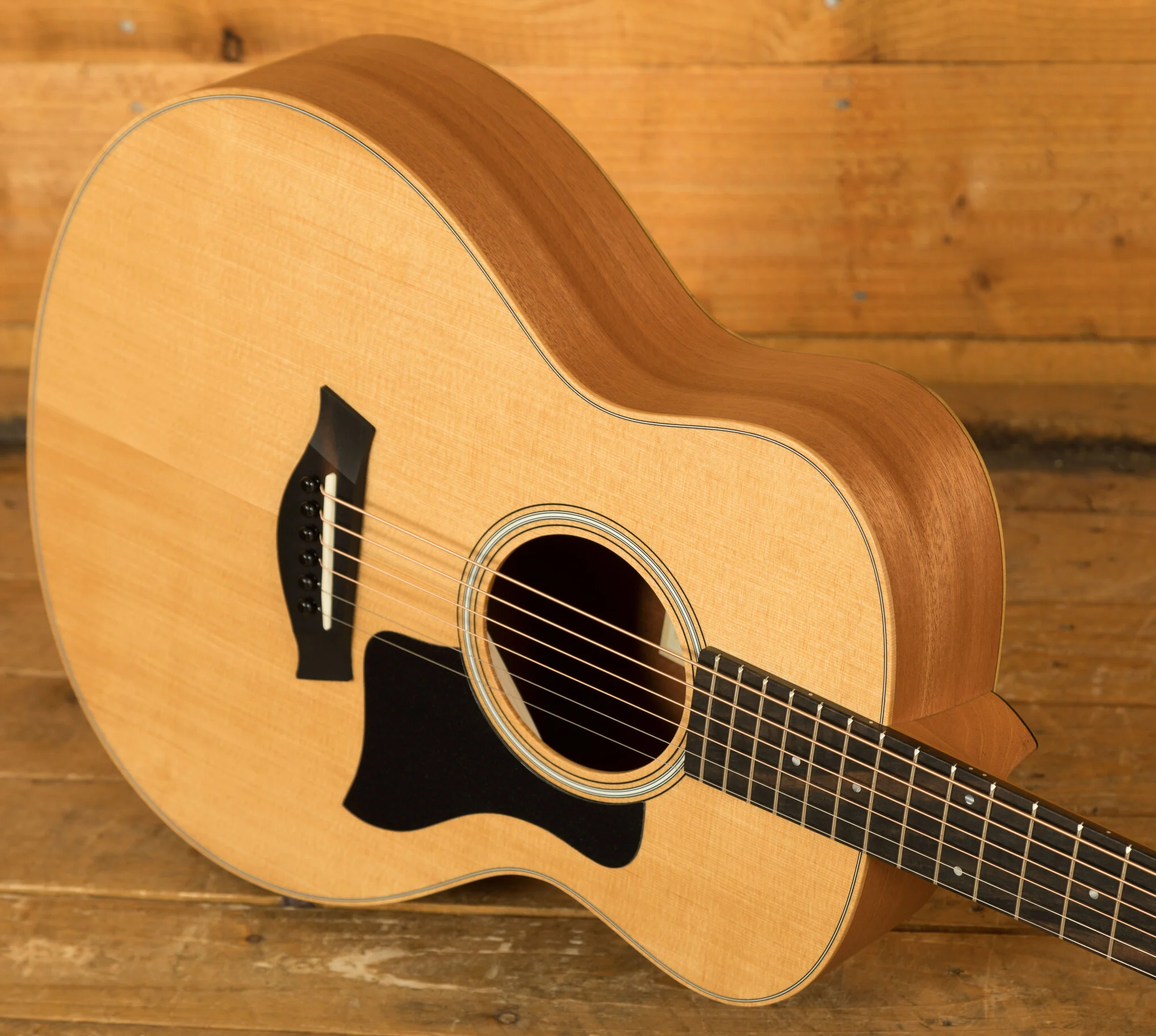 Whether you're a new player looking for a comfortable first guitar or an experienced guitarist seeking a travel companion, the GS Mini offers the ideal combination of portability and rich tone. This model features a solid torrefied spruce top paired with layered sapele back and sides, yielding a bold, clear response that punches far above its weight as a shorter-scale guitar. Taylor's special roasting process for the top adds a touch of extra warmth and sweetness that you'd normally only expect in a more mature, played-in guitar. Players will appreciate the slender neck profile and low action, providing a relaxed feel that's accommodating to players of all skill levels. And with the included gig bag, you're all set to take the GS Mini on the road for any occasion.