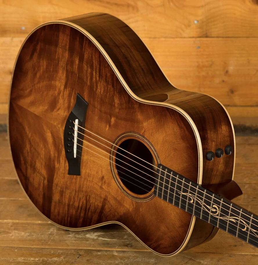 The first of Taylor's GT acoustic guitars to feature Hawaiian koa, the GT K21e is a treat in both sound and style for players seeking a fun, spontaneous guitar that can go anywhere. The GT is sized between the GS Mini and the Grand Concert body, and with all-solid Hawaiian koa back, sides, and top, this model boasts a vibrant tone with clear highs, a punchy midrange and surprising low-end power thanks to the C-Class bracing inside. The shorter scale makes for an inviting feel and a relaxed fretting experience, and the built-in ES2 electronics mean the GT K21e is ready to plug in and play. Stunning wood-centric appointments such as the Island Vine inlay highlight koa's visual character. This model ships with a lightweight, durable AeroCase.