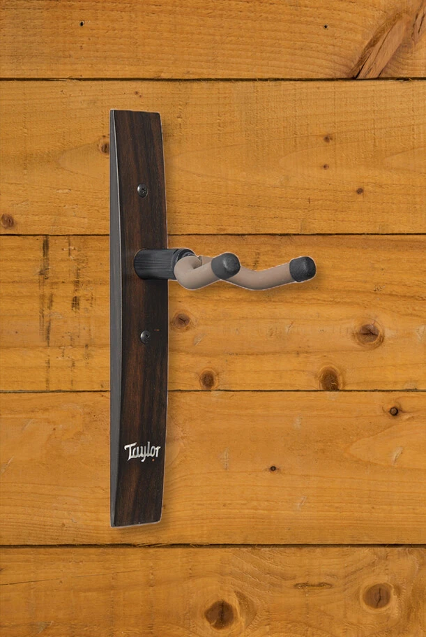 This finely crafted guitar wall hanger is made from genuine West African Crelicam ebony, the same ebony that Taylor use in the fretboards and bridges of their acoustic guitars. A cushioned yoke provides a secure hanging spot for your guitar without damaging the finish or neck, and each wall hanger features a unique organic visual character thanks to ebony's natural variegation. Purchases support Taylor's tree-planting projects and other environmental initiatives. Each wall hanger features a 1-7/8" x 11-3/8" wood mount. Screws included.