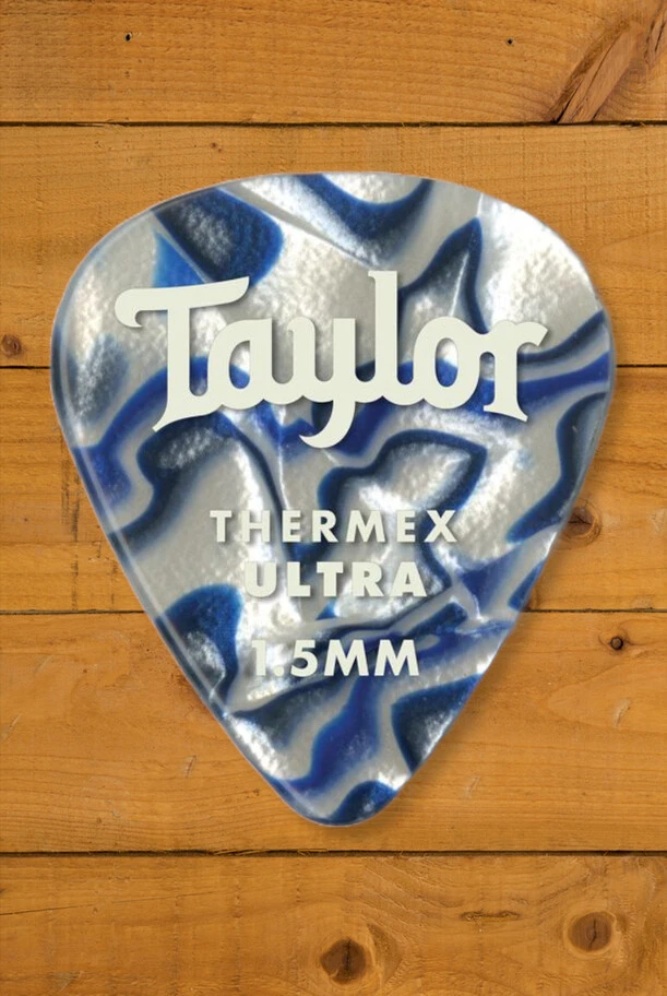 Taylor picks, crafted in the USA.Taylor Premium Thermex Blue Swirl Picks are the most popular guitar picks from the Taylor DarkTone Series, made with an exclusive thermo-bonding process that helps them produce a warmer, more articulate guitar tone. These picks are available in the classic 351 shape and are precision-cut in 1.0mm, 1.25mm and 1.5mm sizes. Made in the USA.