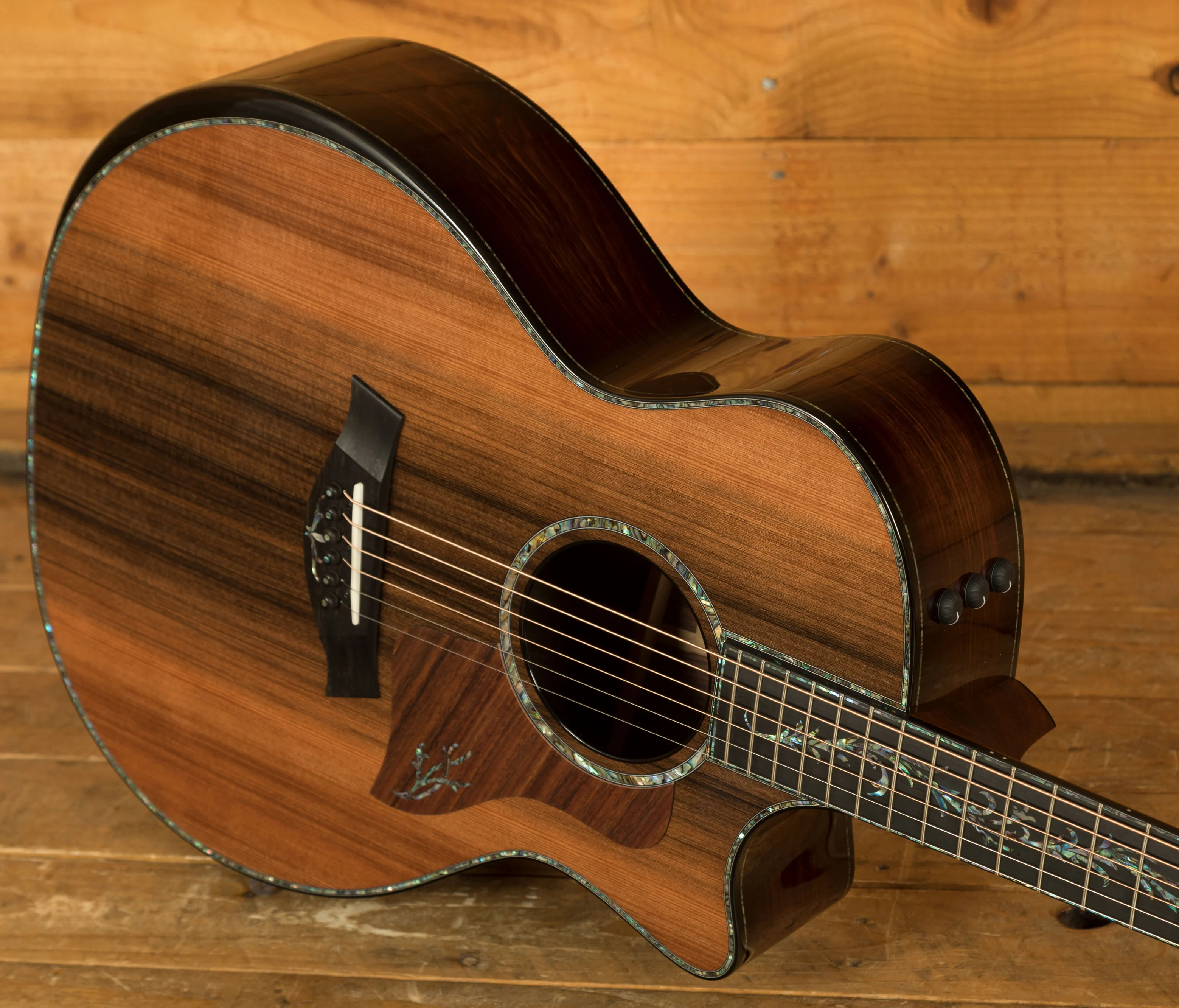 The PS14ce's premium appointments reflect its elevated status. Gotoh 510 tuners ensure precise and stable tuning, while the paua/mother-of-pearl inlays and ebony binding add a touch of understated elegance. The Expression System 2 electronics capture the guitar's natural tone with exceptional clarity, making it ideal for both stage and studio use. Taylor's V-Class bracing further enhances the guitar's sonic performance, increasing volume, sustain, and improving intonation.